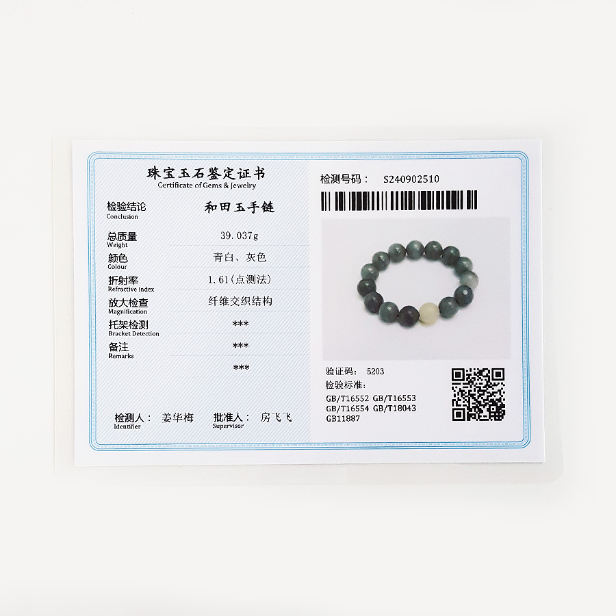名称 | 天然无杂裂约11.8MM新疆青花料圆珠和田玉手串 |