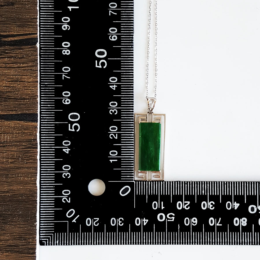 【天然正品】A货翡翠AU750白金镶福纹天然细腻细豆种满绿平安无事牌翡翠吊坠项链35.3*12.8*3.2MM(皆取最大值)181125AH39