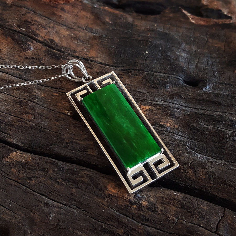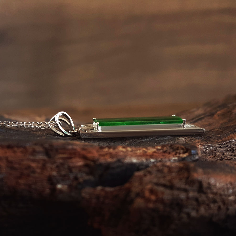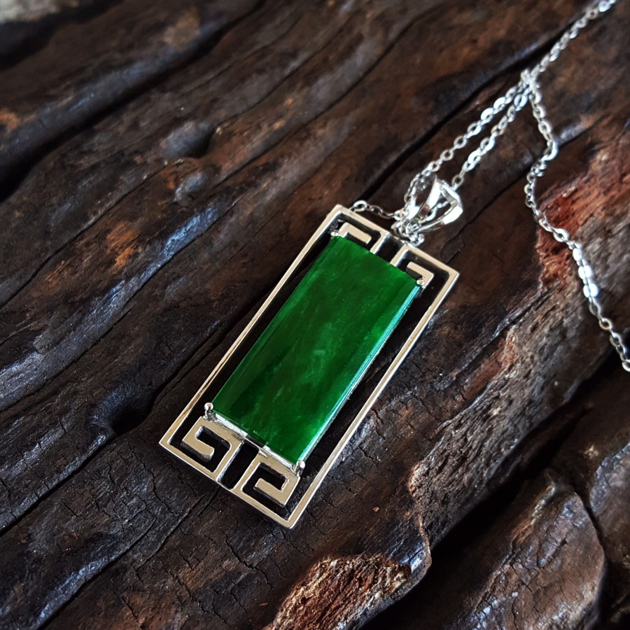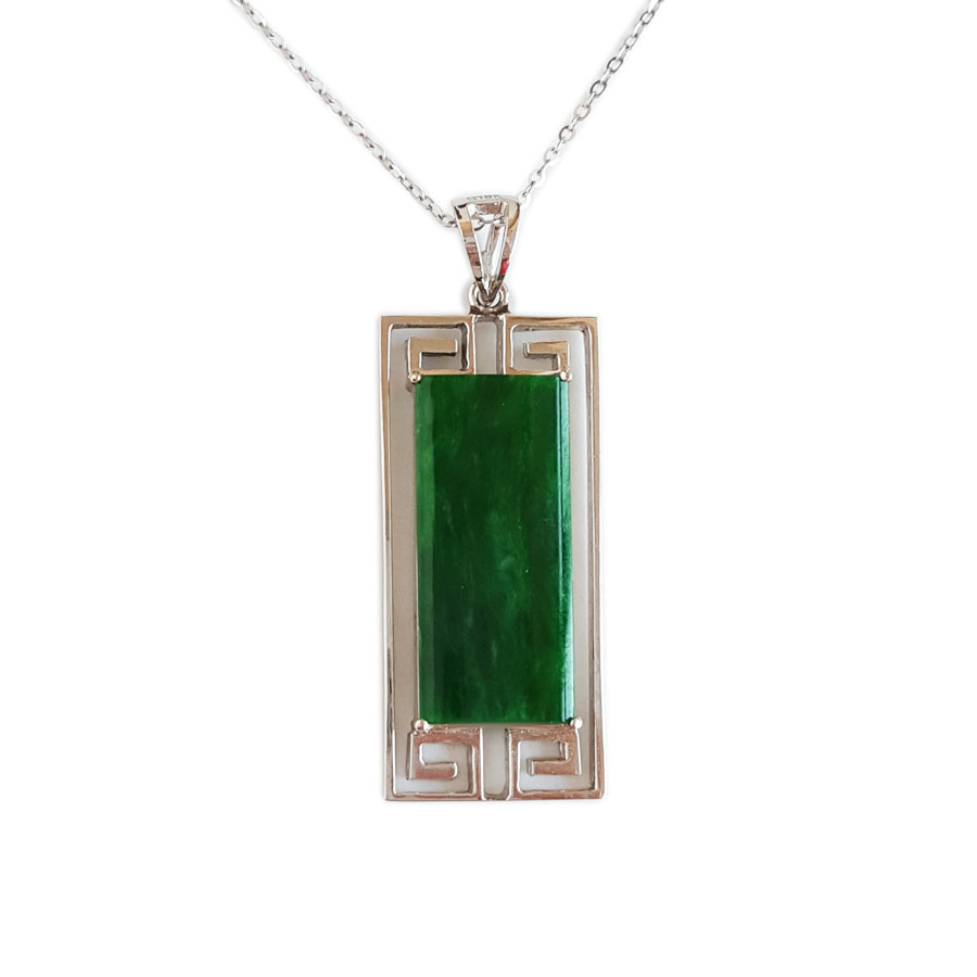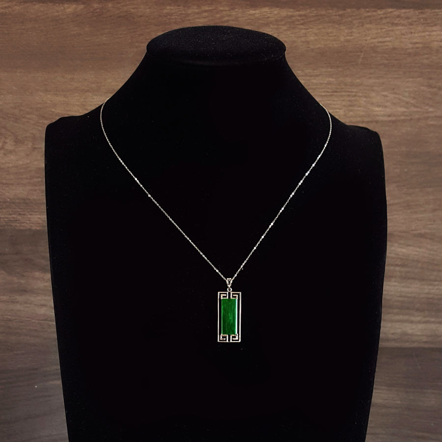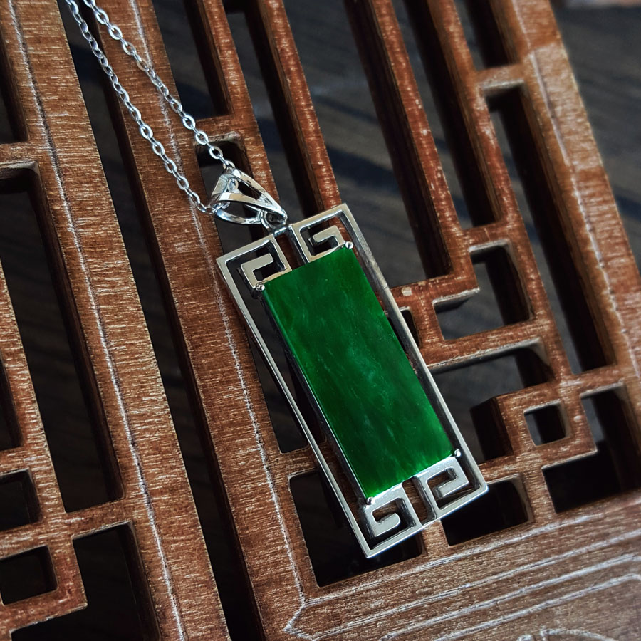 名称 | AU750白金镶福纹天然细腻细豆种满绿平安无事牌翡翠吊坠项链 |