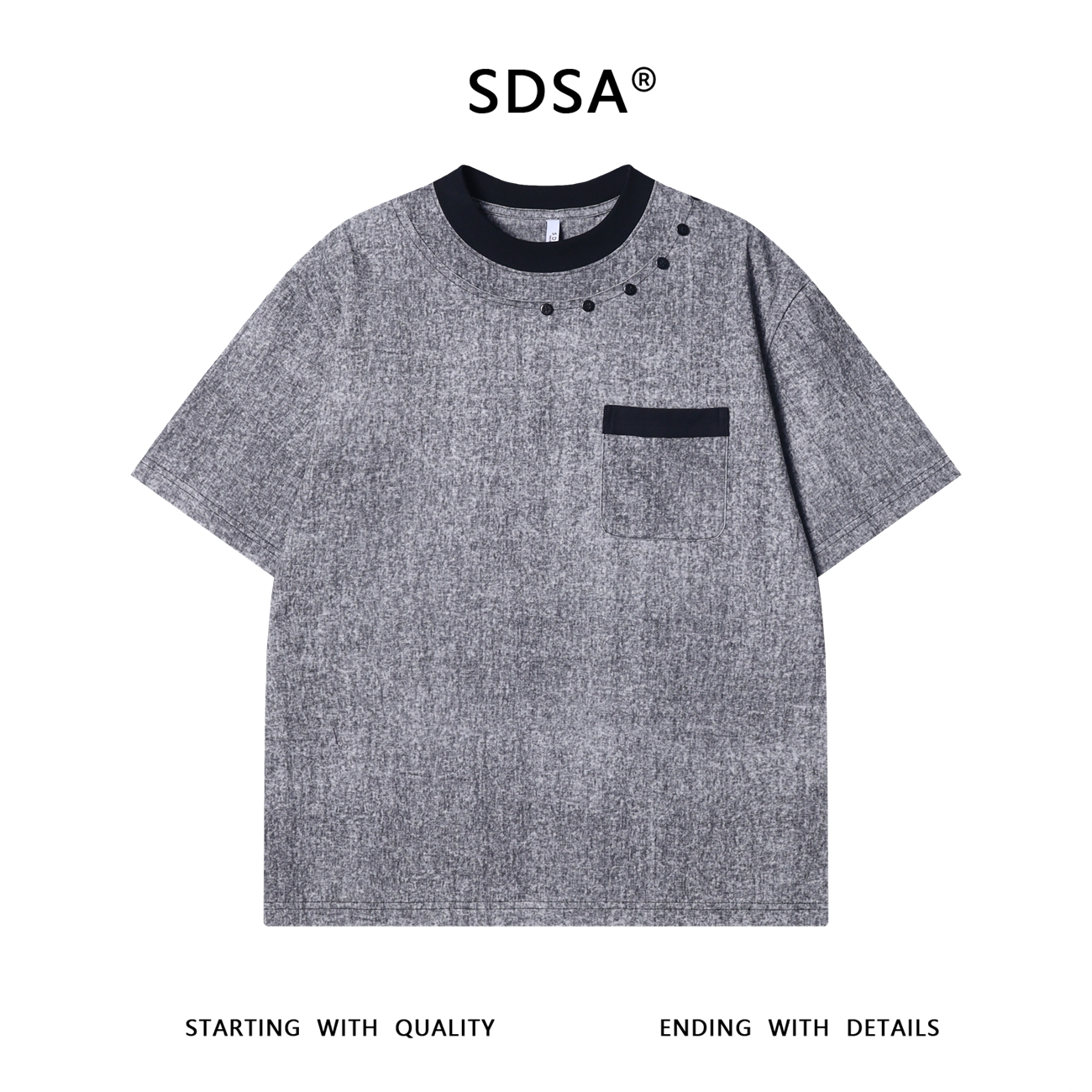 T3312夏季高级感新款撞色扎染裁剪短袖T恤领口纽扣设计百搭宽松上衣