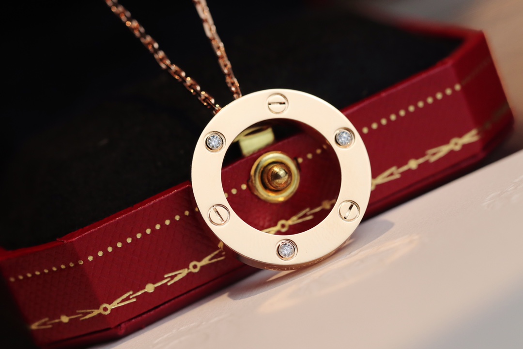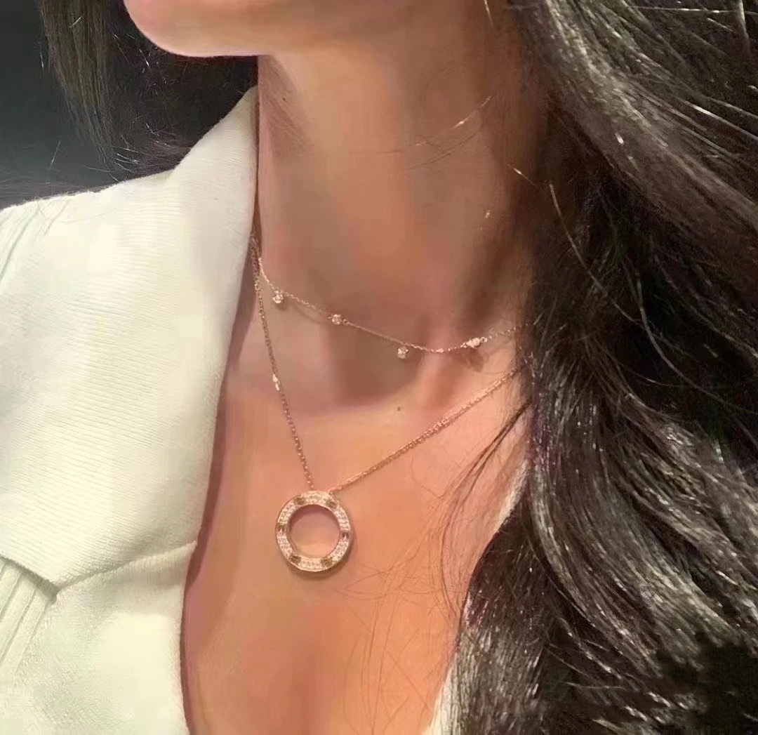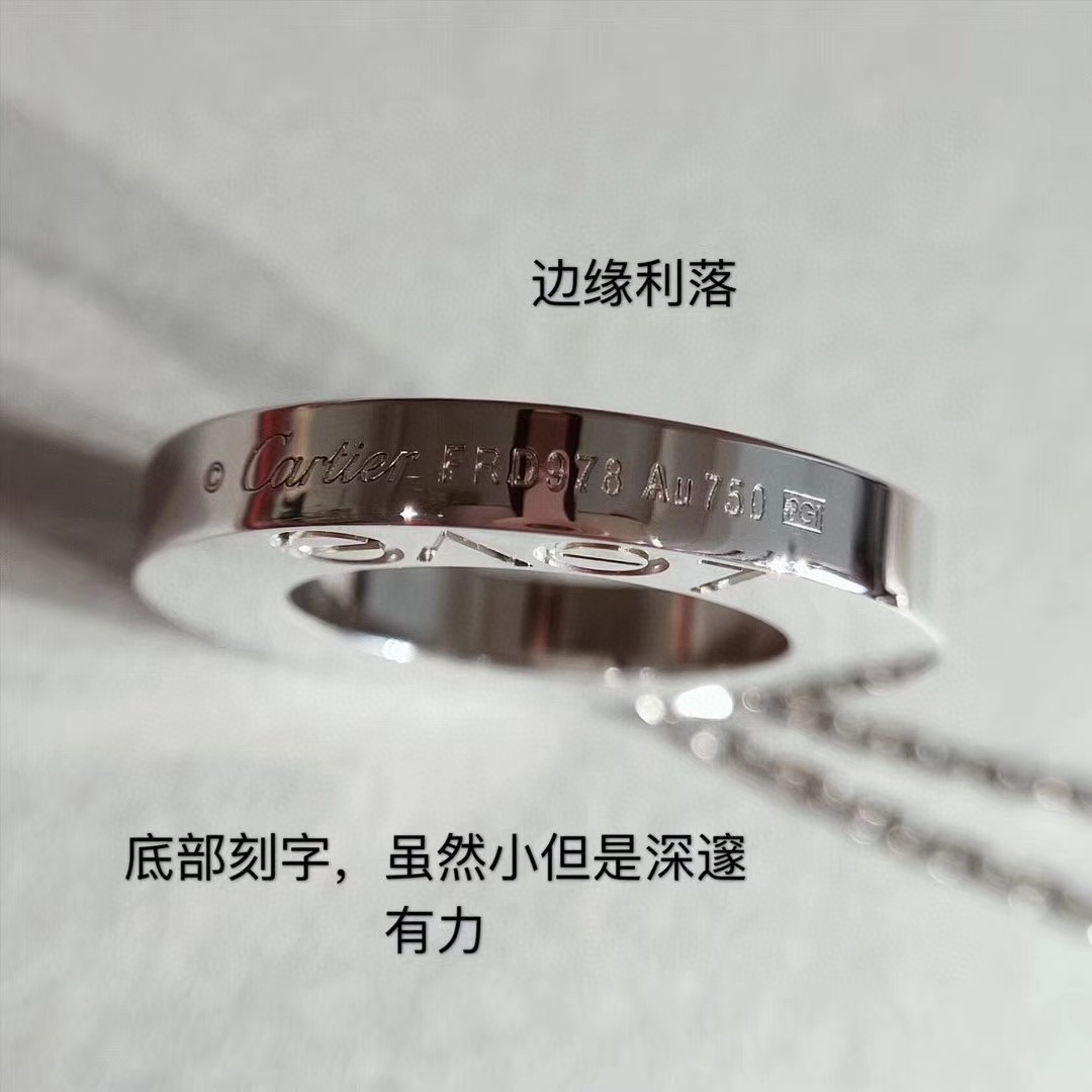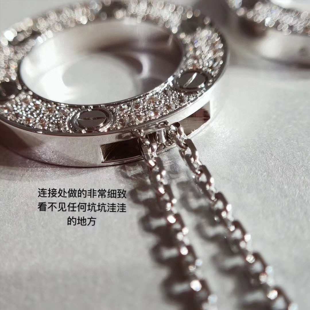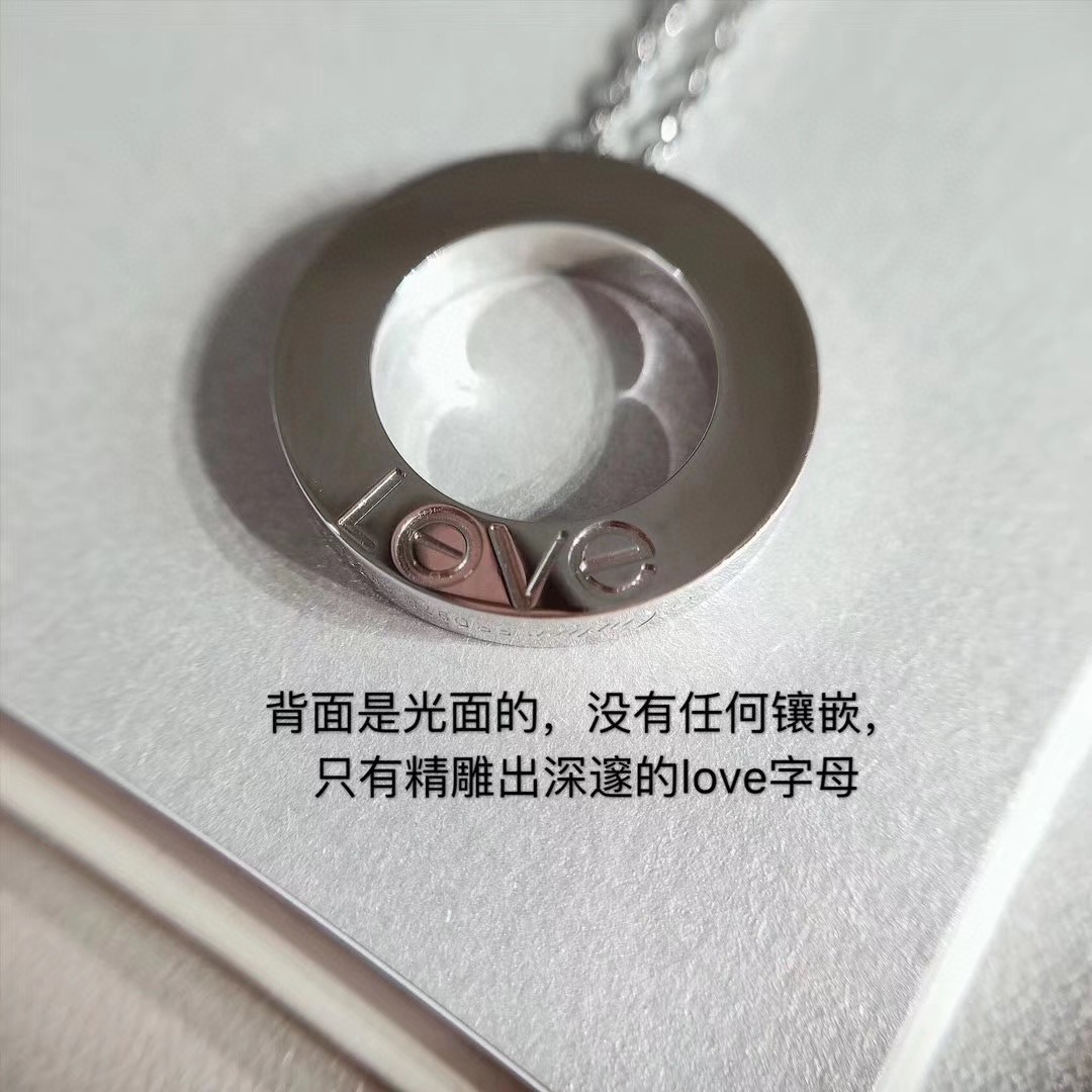 卡家LOVE大圆饼项链重磅出炉!独家定制!zp开发!3钻项链,经典的螺丝设计意味着爱情的永恒,专柜4W+,非常奢华大牌!一面镶钻,一面刻有LOVE字母,有厚度有分量!我们采用V金2代材质 ,厚金1咪,love系列不管是手镯戒指还是项链,边缘的棱角一定是分明的不得了,甚至用手去摩擦会有一丢丢锋利感!项链的螺丝面刻痕非常多而且深邃,很难拿捏,只有采用CNC精雕出来的效果才是最对版的