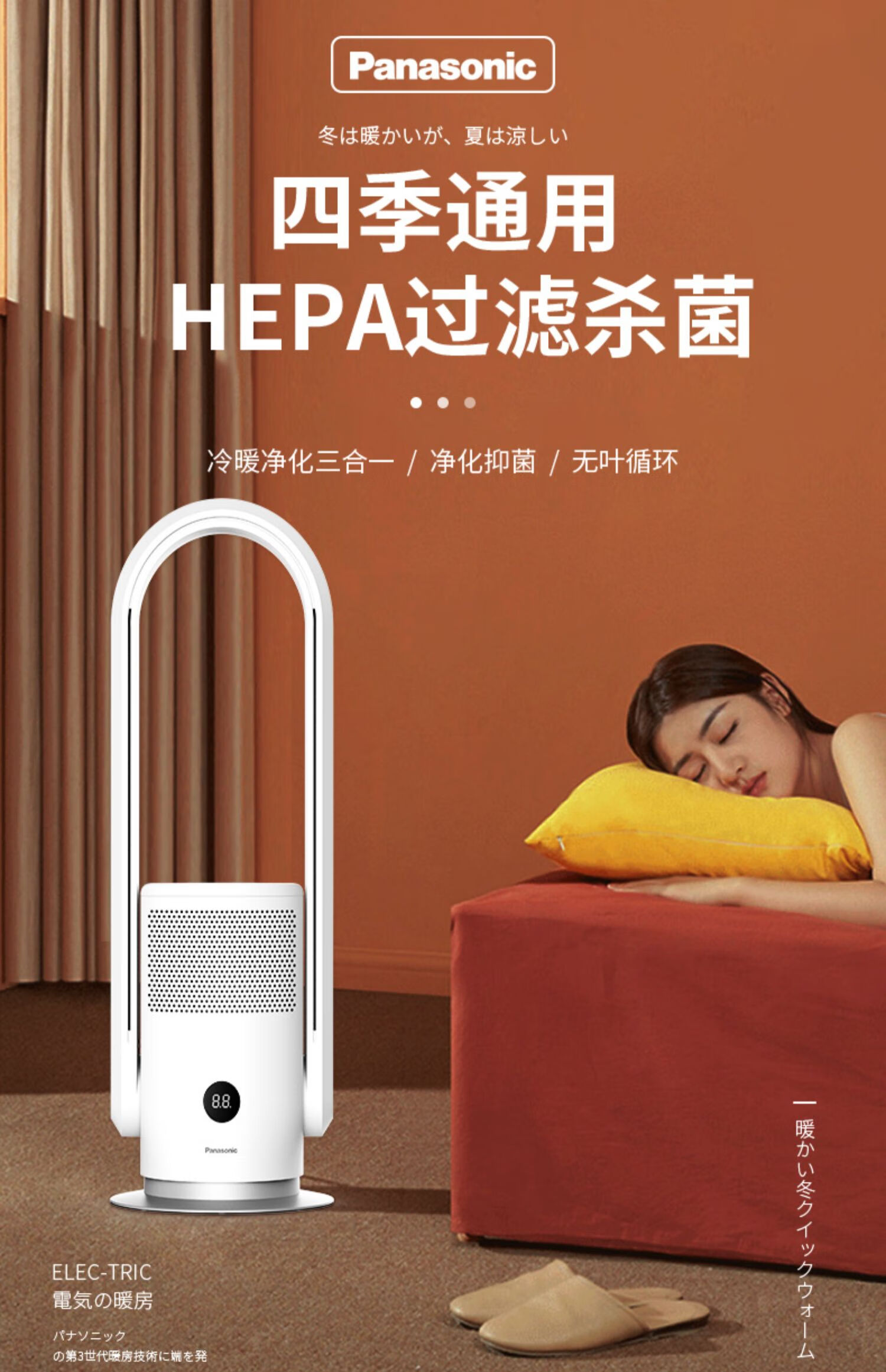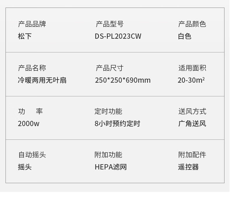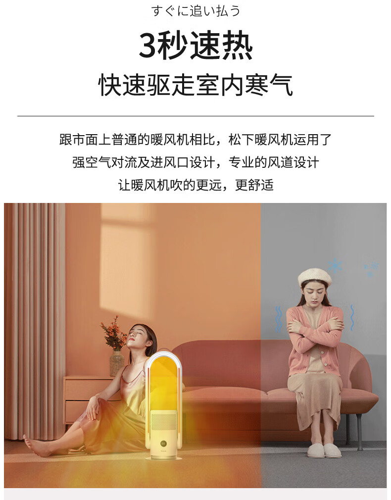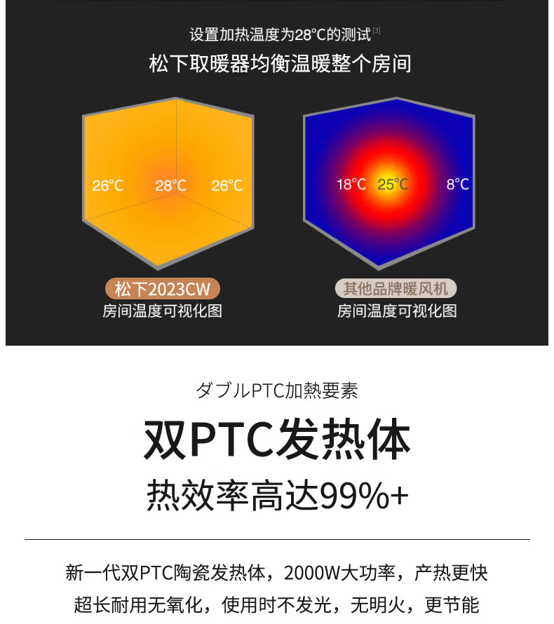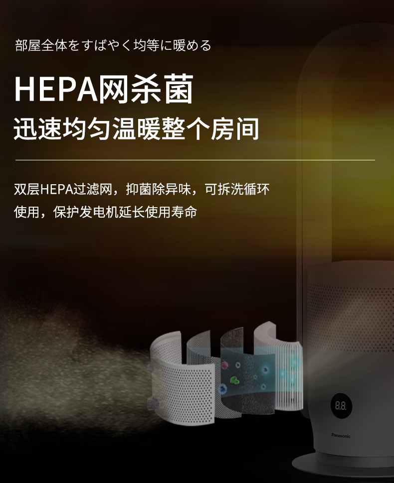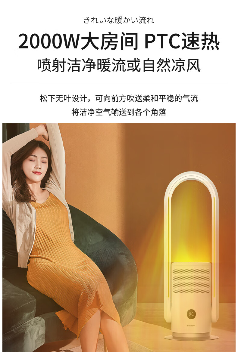 松下(Panasonic)暖风机取暖器家用电暖器浴室电暖风冷暖节能暖气机办公室取暖暖风扇速热电暖气 DS-PL2023CW(HEPA滤除异味)