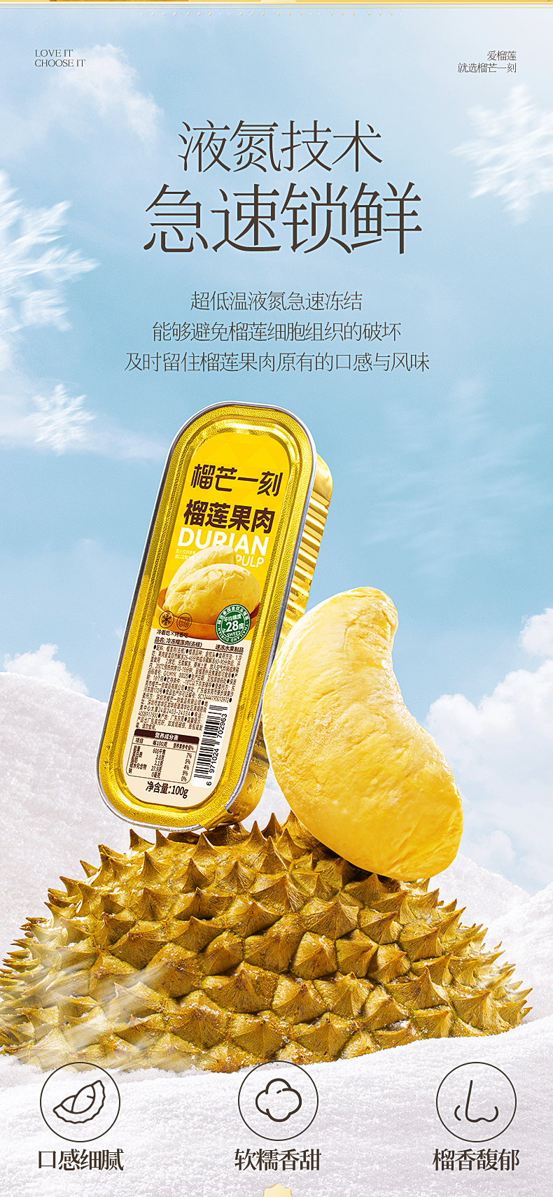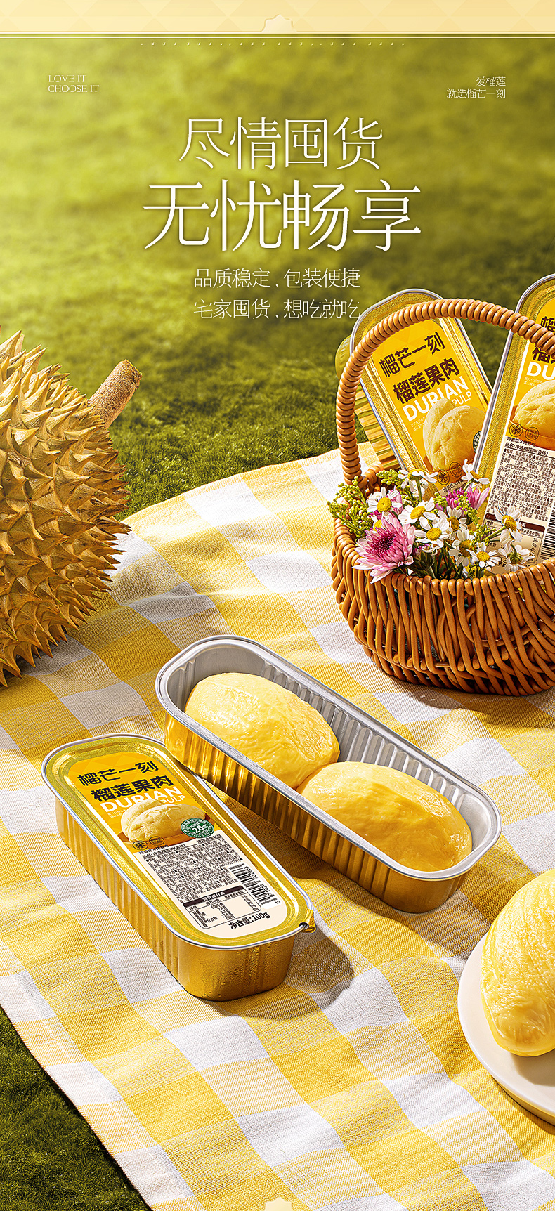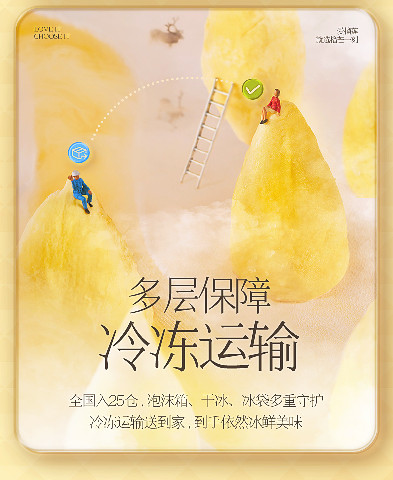 榴芒一刻 优选泰国金枕榴莲无核果肉100g*5盒/8盒