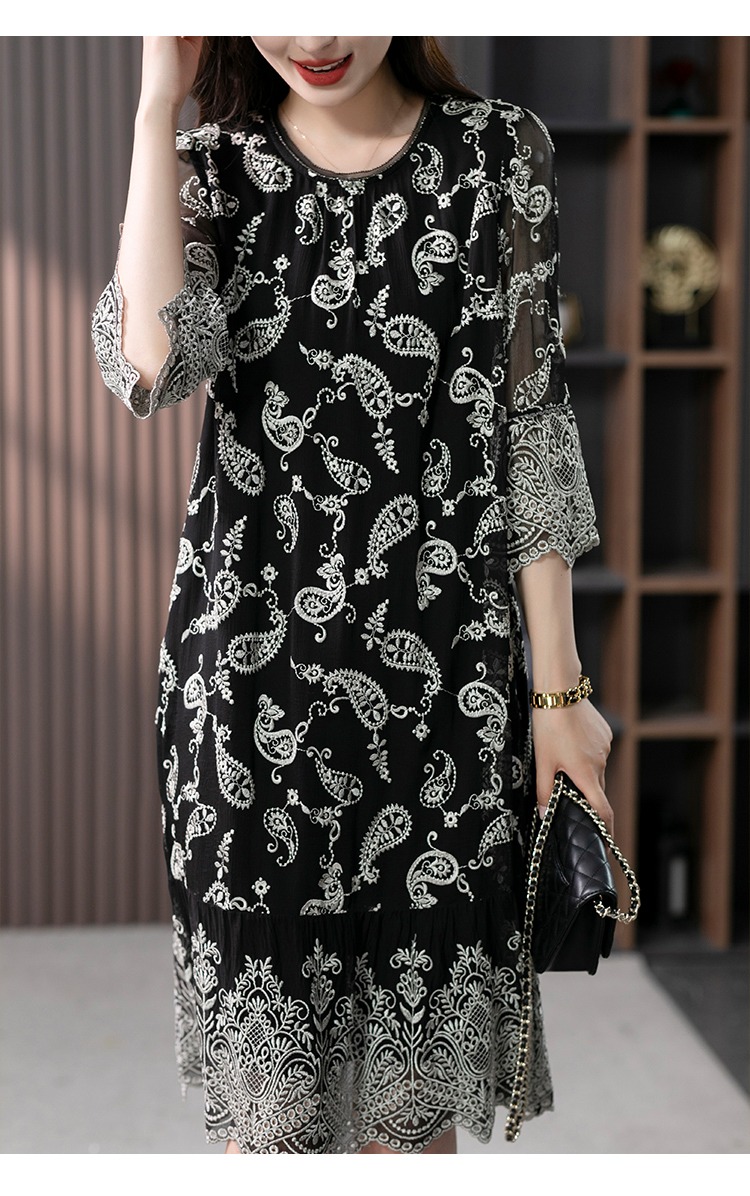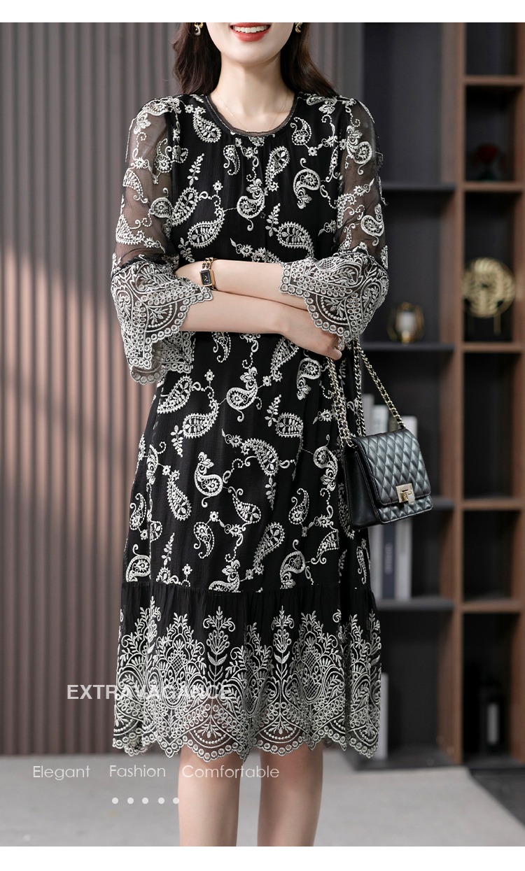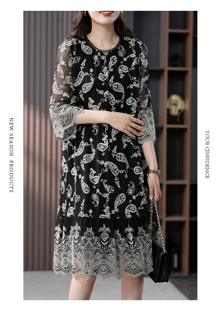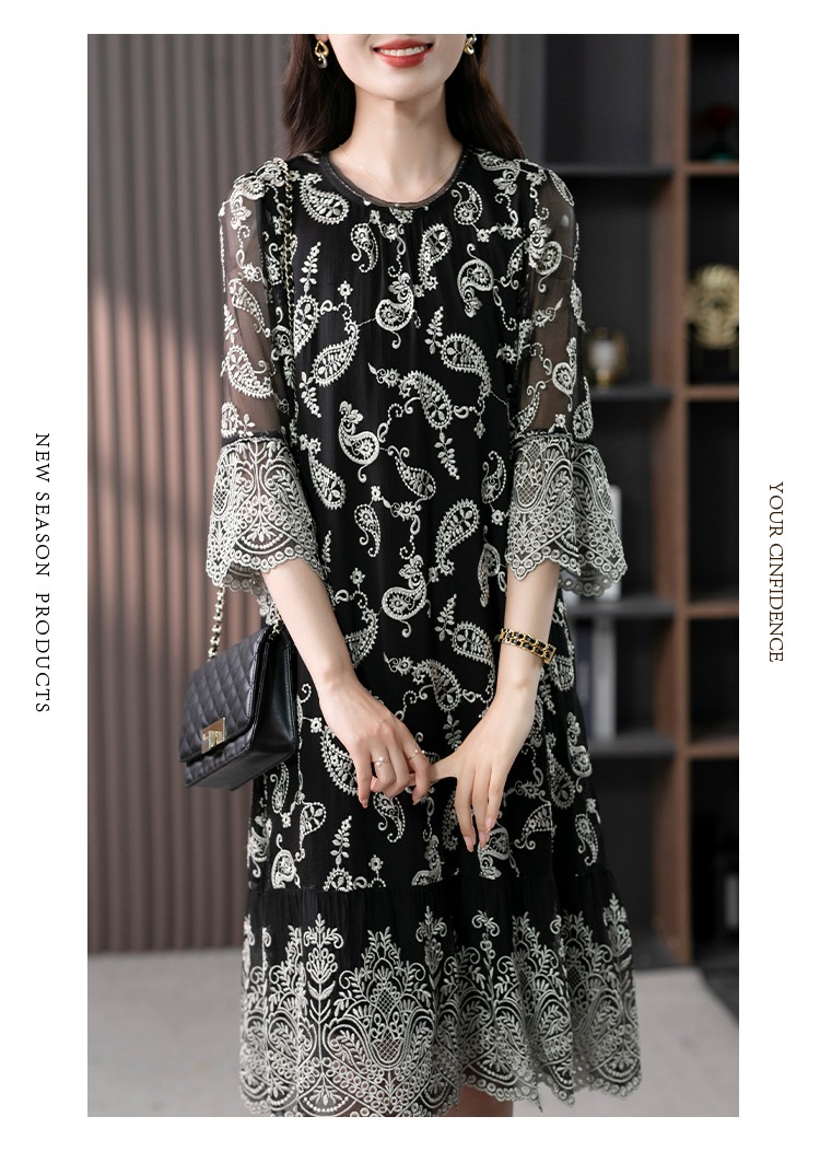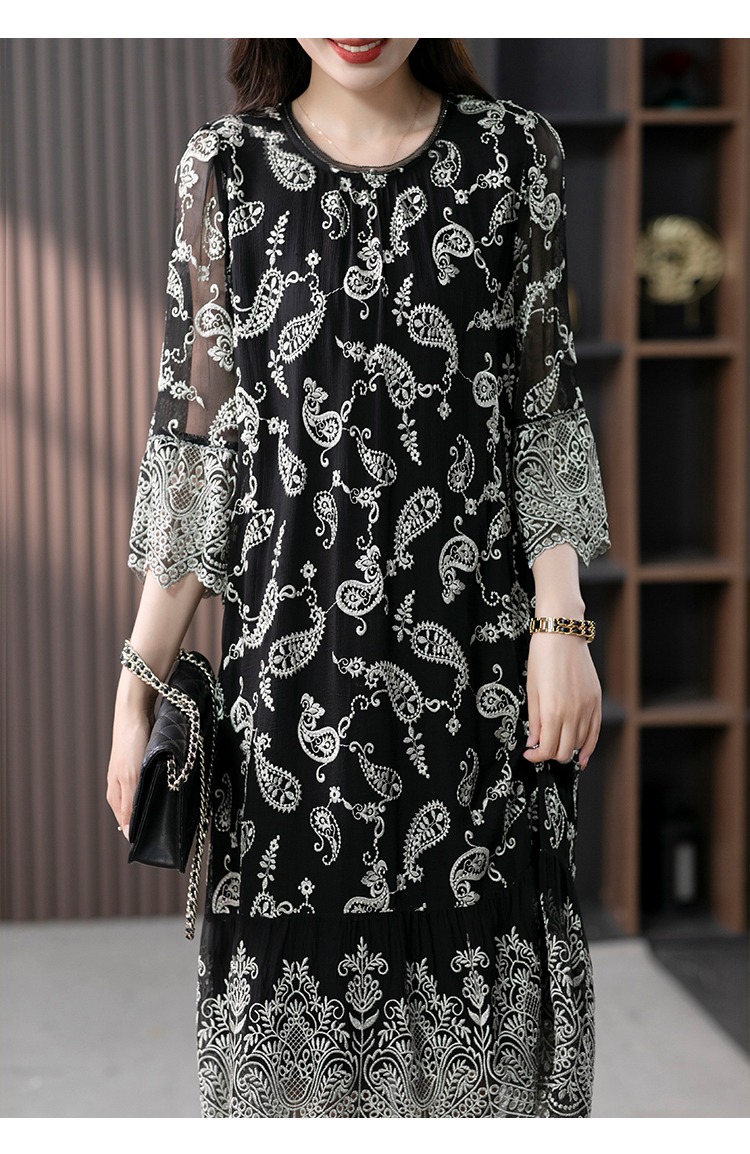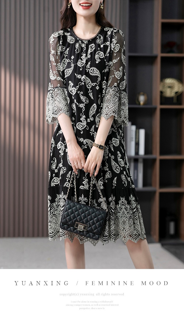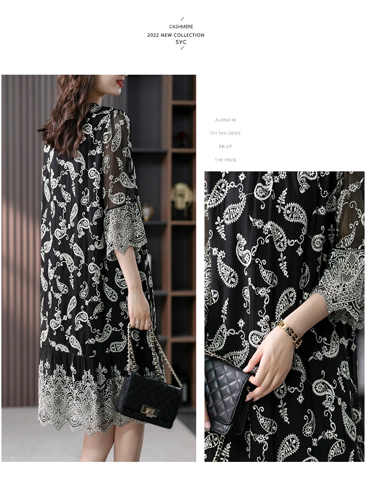 YX【定制15天】轻奢刺绣真丝连衣裙女2024夏季新款韩版宽松桑蚕丝中长款裙子