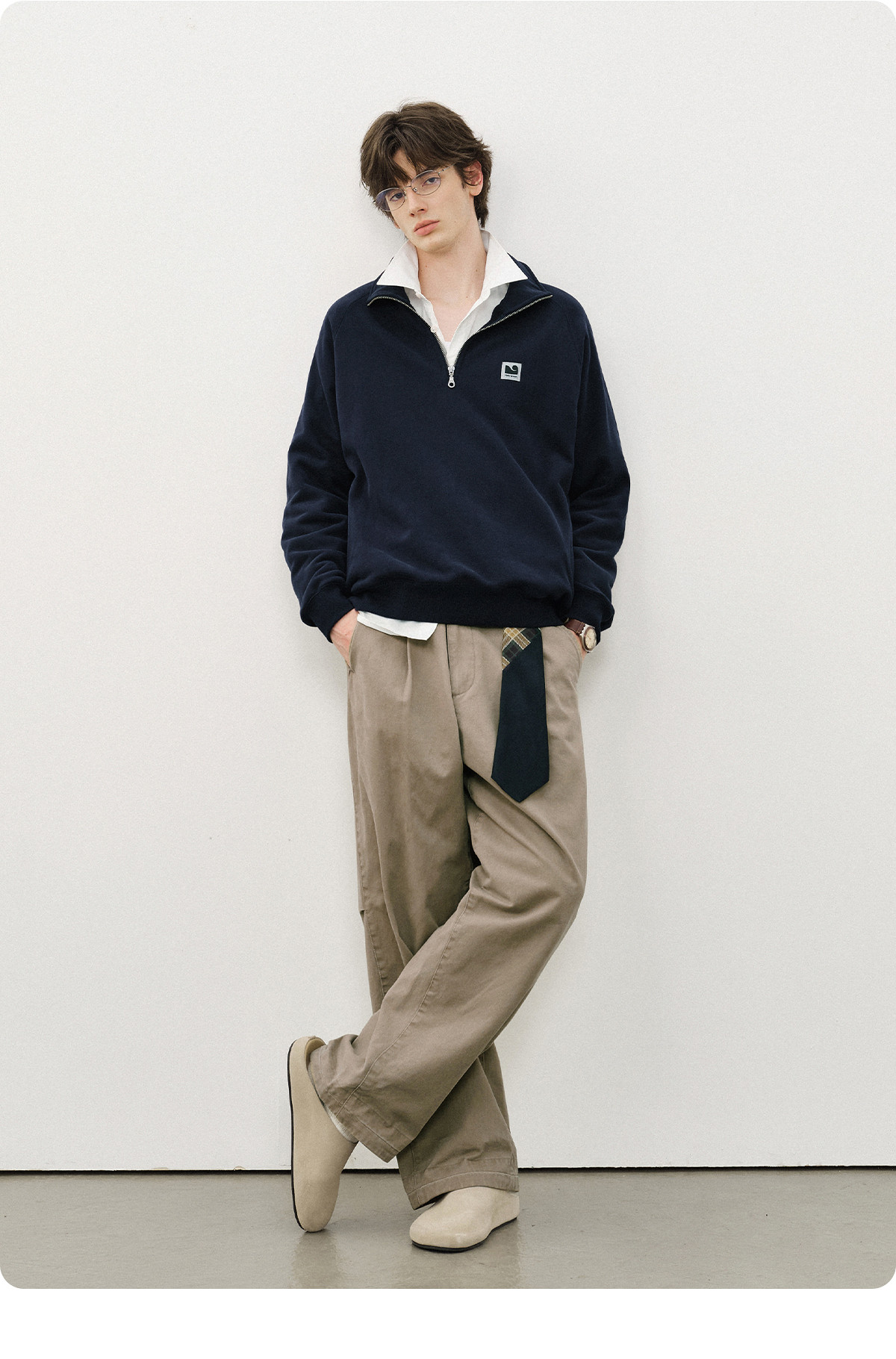 714street仿羊绒毛呢立领夹克男秋冬新款卫衣外套老钱风穿搭
