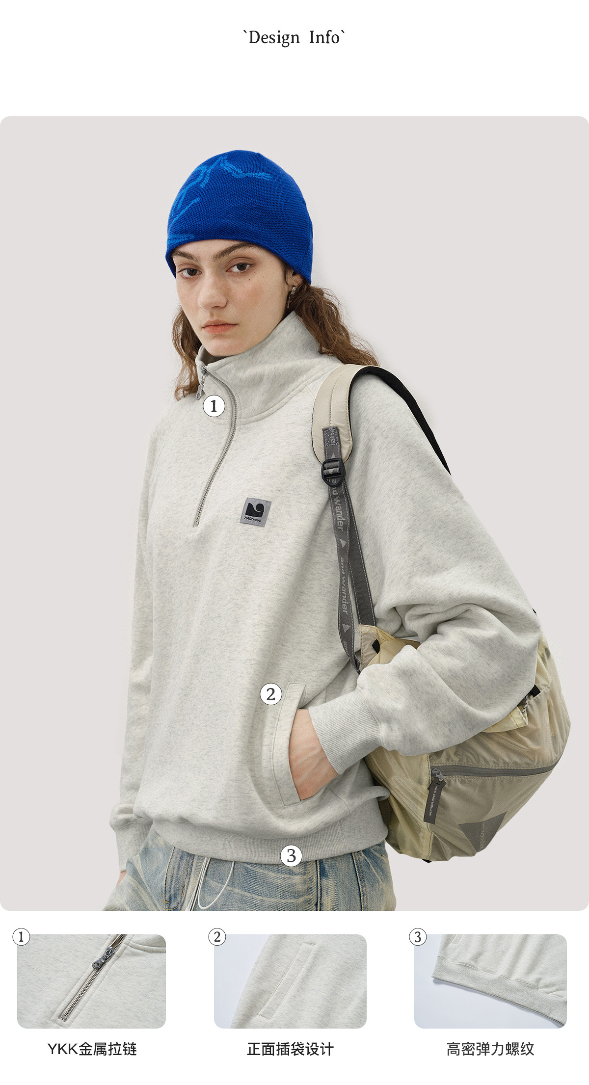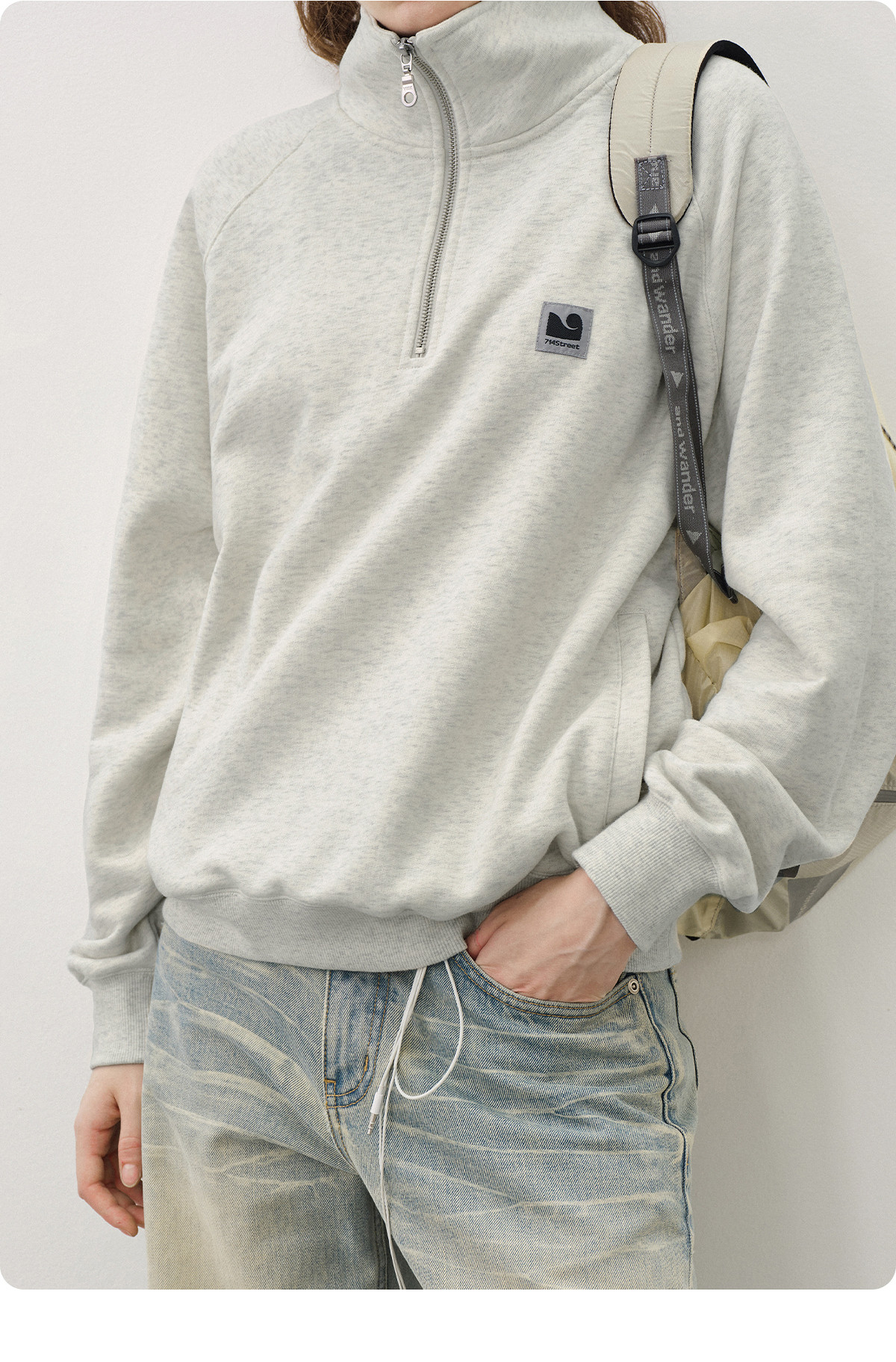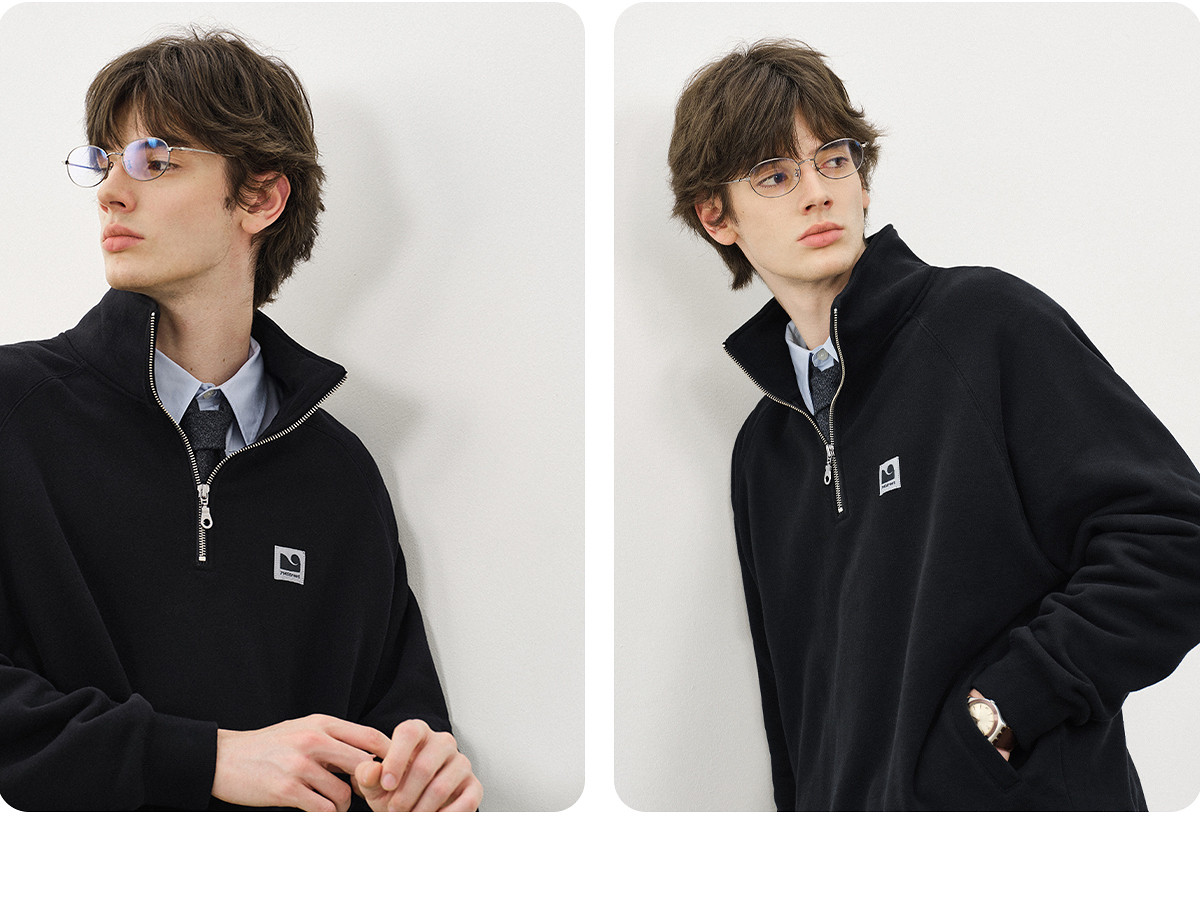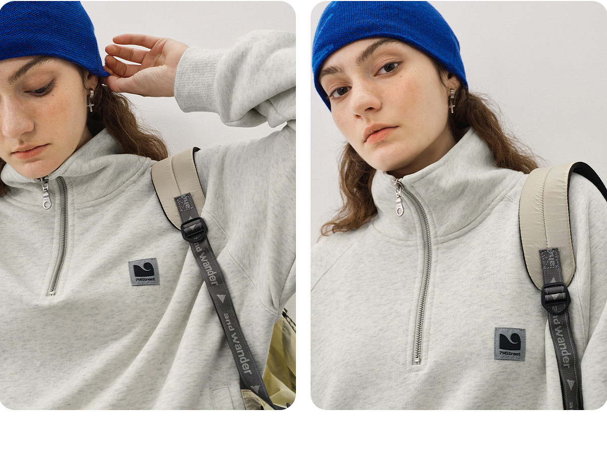 714street美式宽松落肩半拉链卫衣男2025秋冬国潮抓绒情侣款上衣