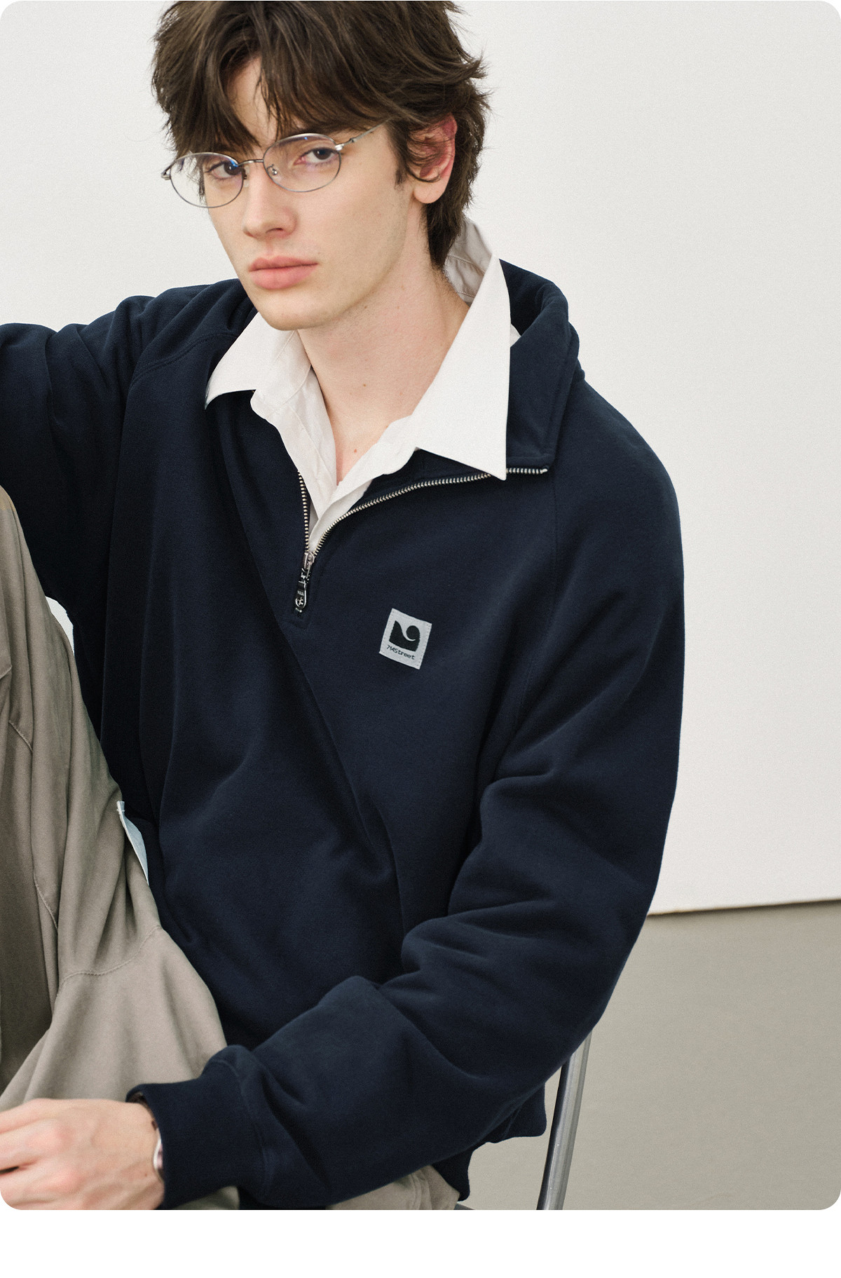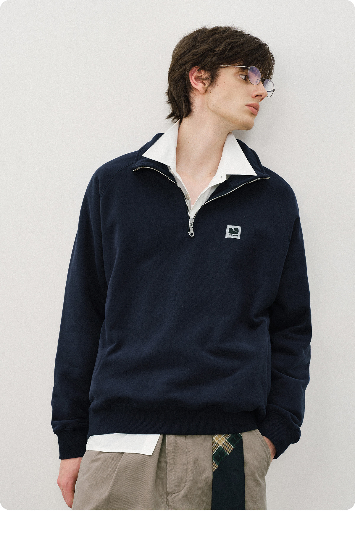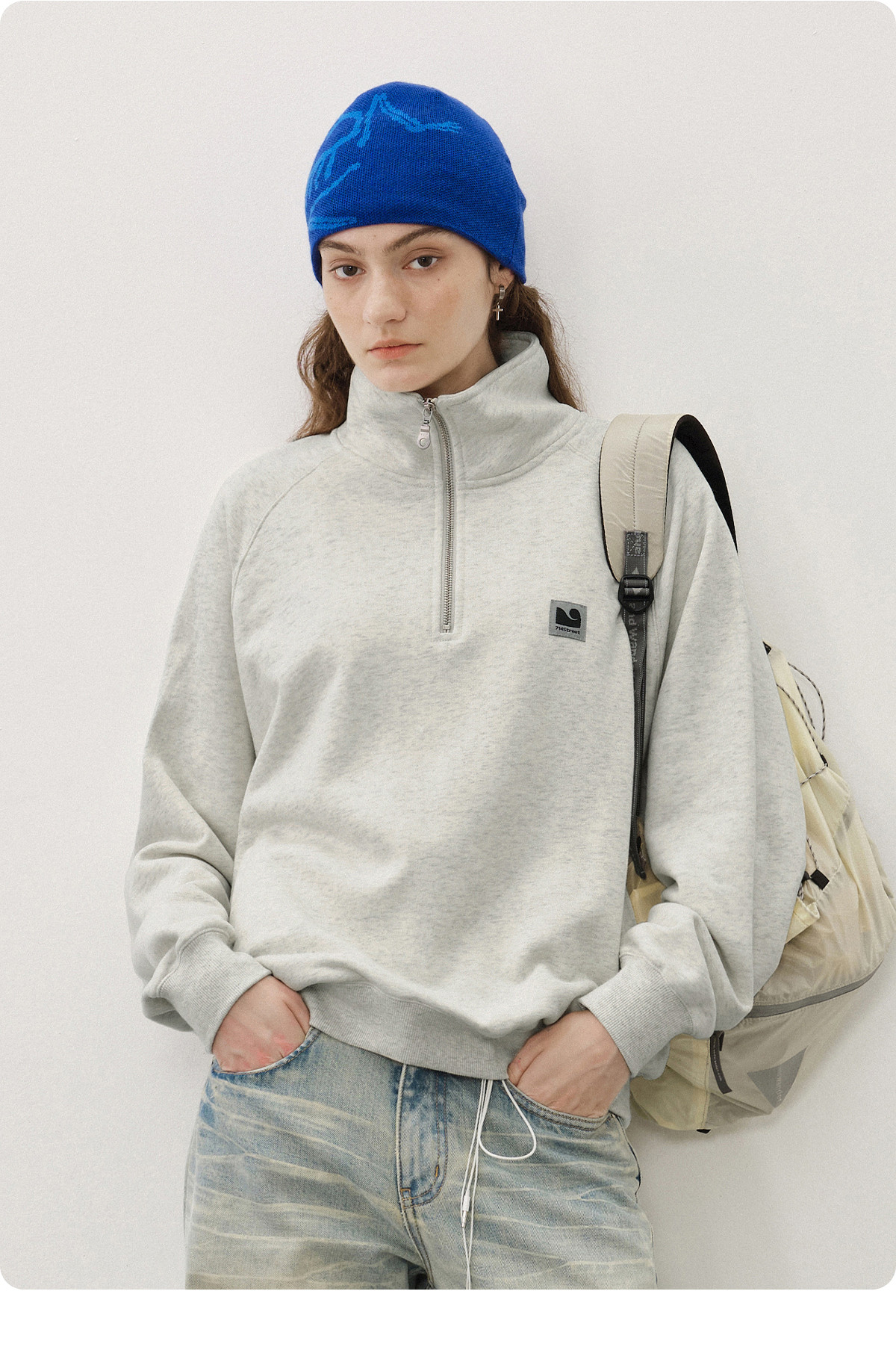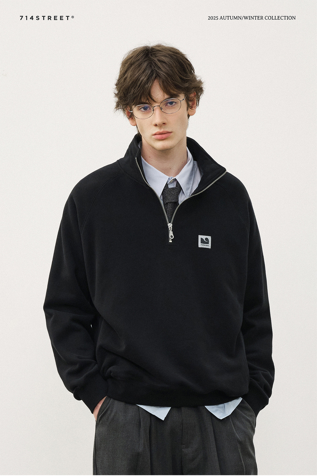 714street美式宽松落肩半拉链卫衣男2025秋冬国潮抓绒情侣款上衣