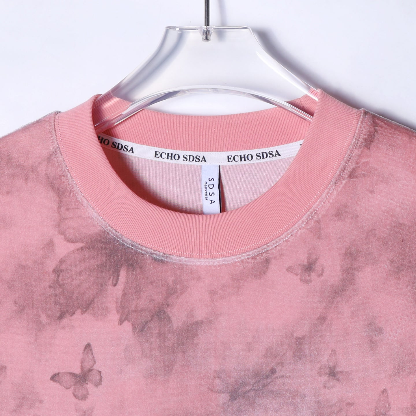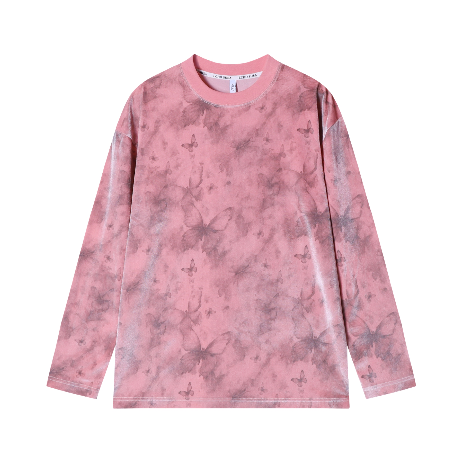 秋冬季新款美式个性扎染蝴蝶印花圆领长袖宽松户外时尚百搭上衣