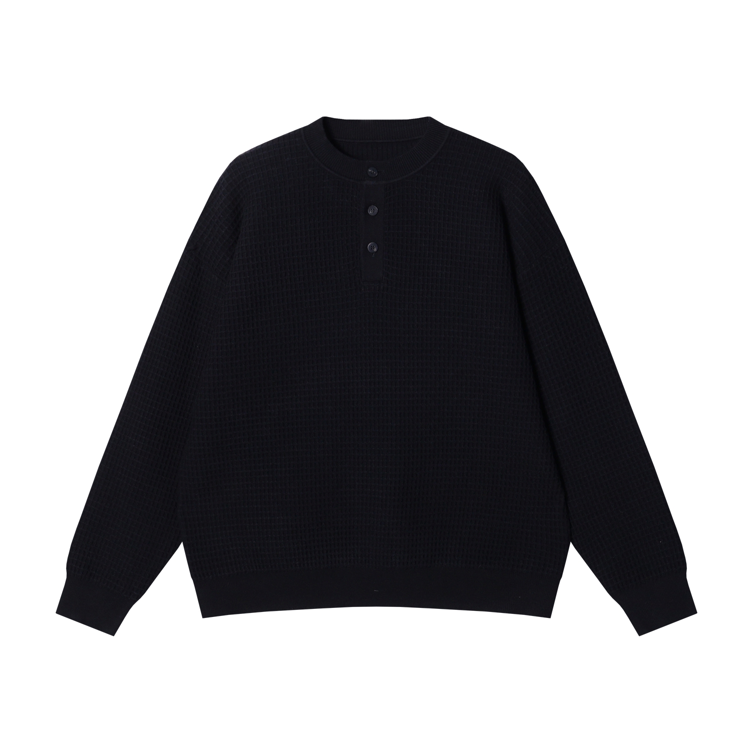2001SDSA男士秋冬新款痞帅男装复古纯色格子半纽扣针织衫百搭宽松毛衣