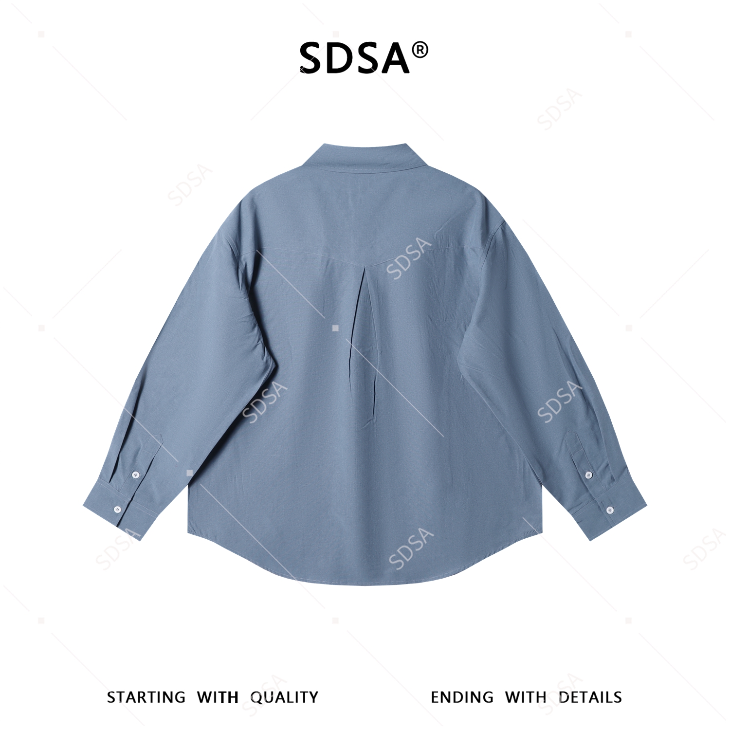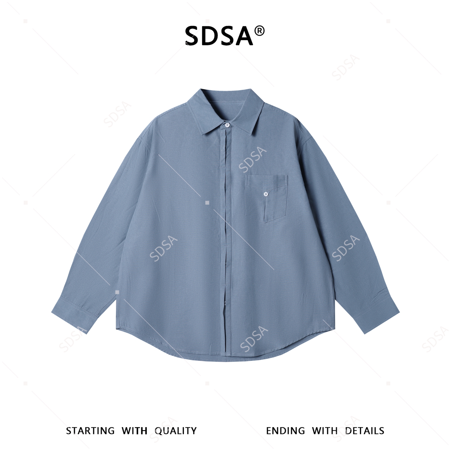61050SDSA男士春夏新款痞帅男装极简风纯色口袋拼接长袖衬衫百搭宽松