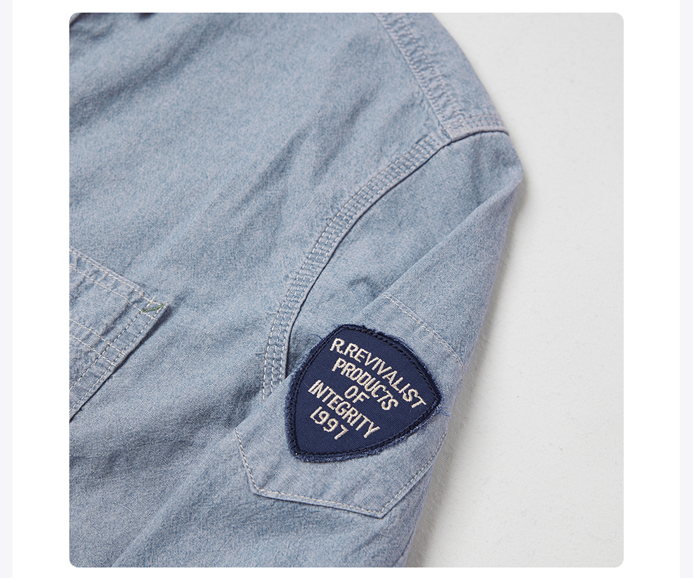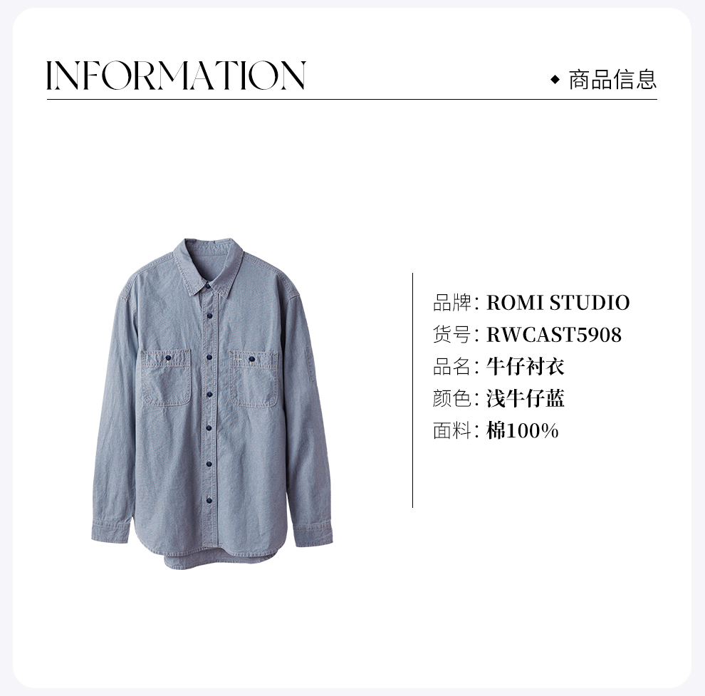 ROMI STUDIO"长期主义"复古做旧棉质绣标工装牛仔衬衣RWCAST5908