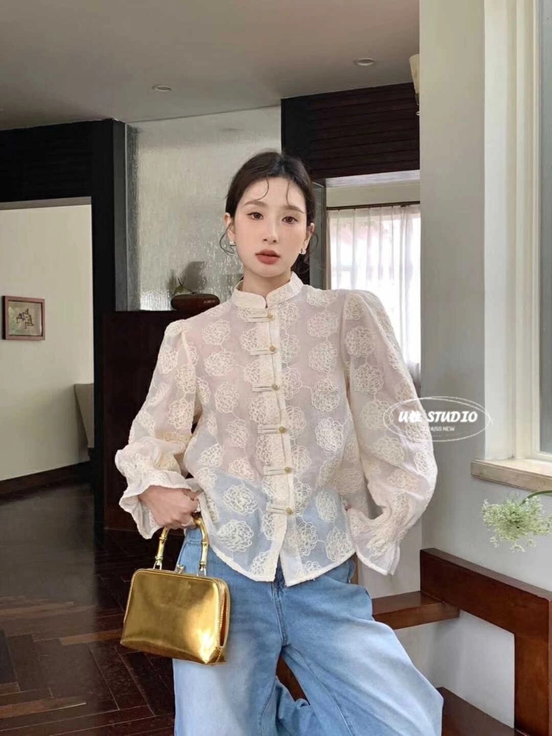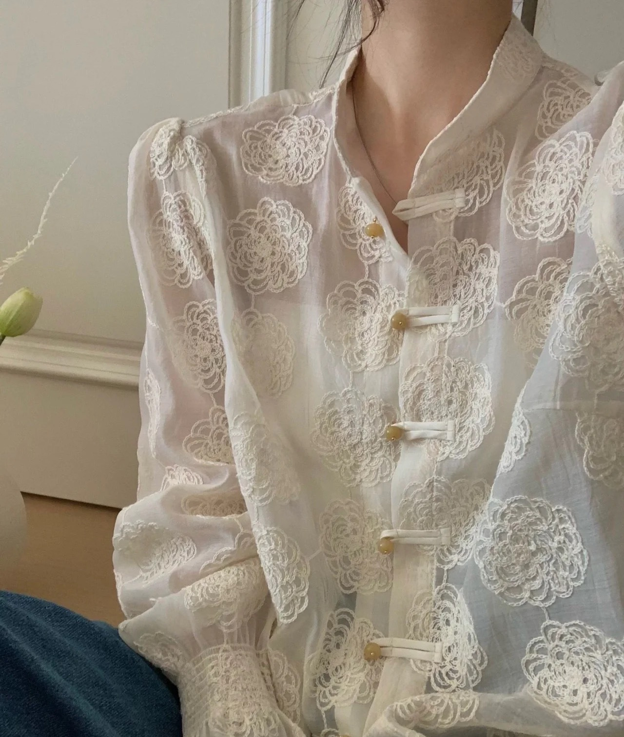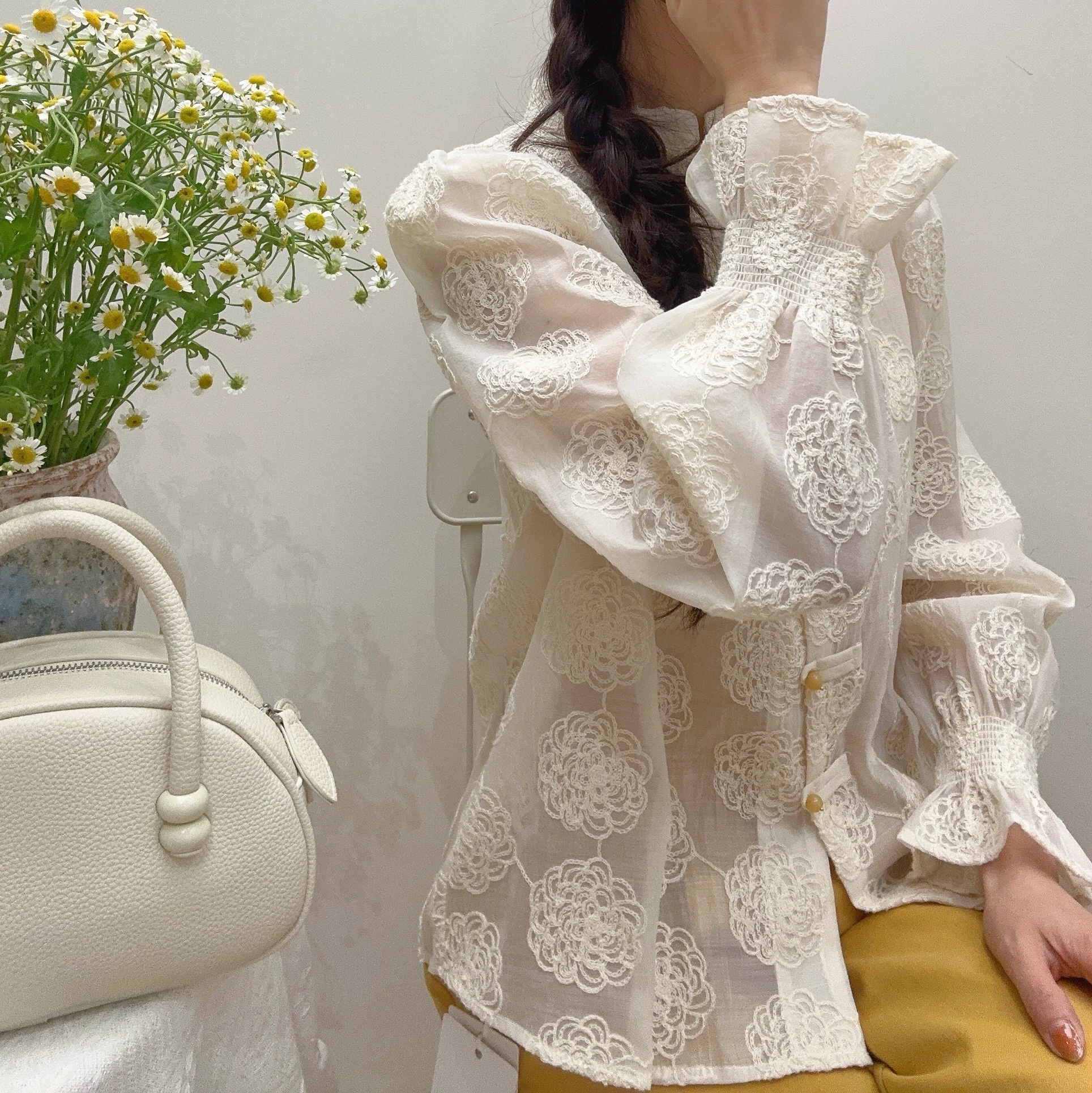 清冷感的刺绣蕾丝衬衫谁不爱呀