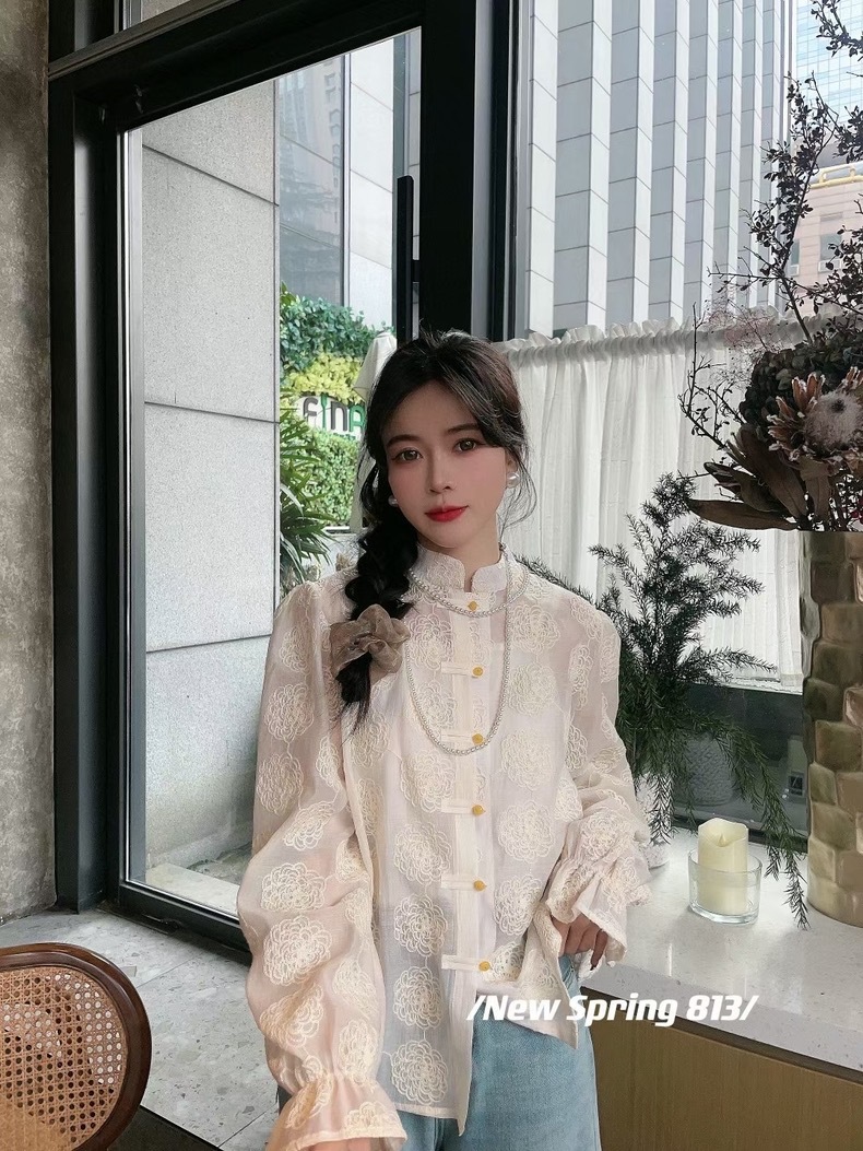 早春第一件入眼的山茶花衬衫❤️因为中国风的高级感一起来入坑吧😘😘😘 发现无论是什么风格都需要面料和做工衬 ❗️日本涤纶+刺绣,琥珀珠扣 ❗️每个细节都踩中我的小心灵👍