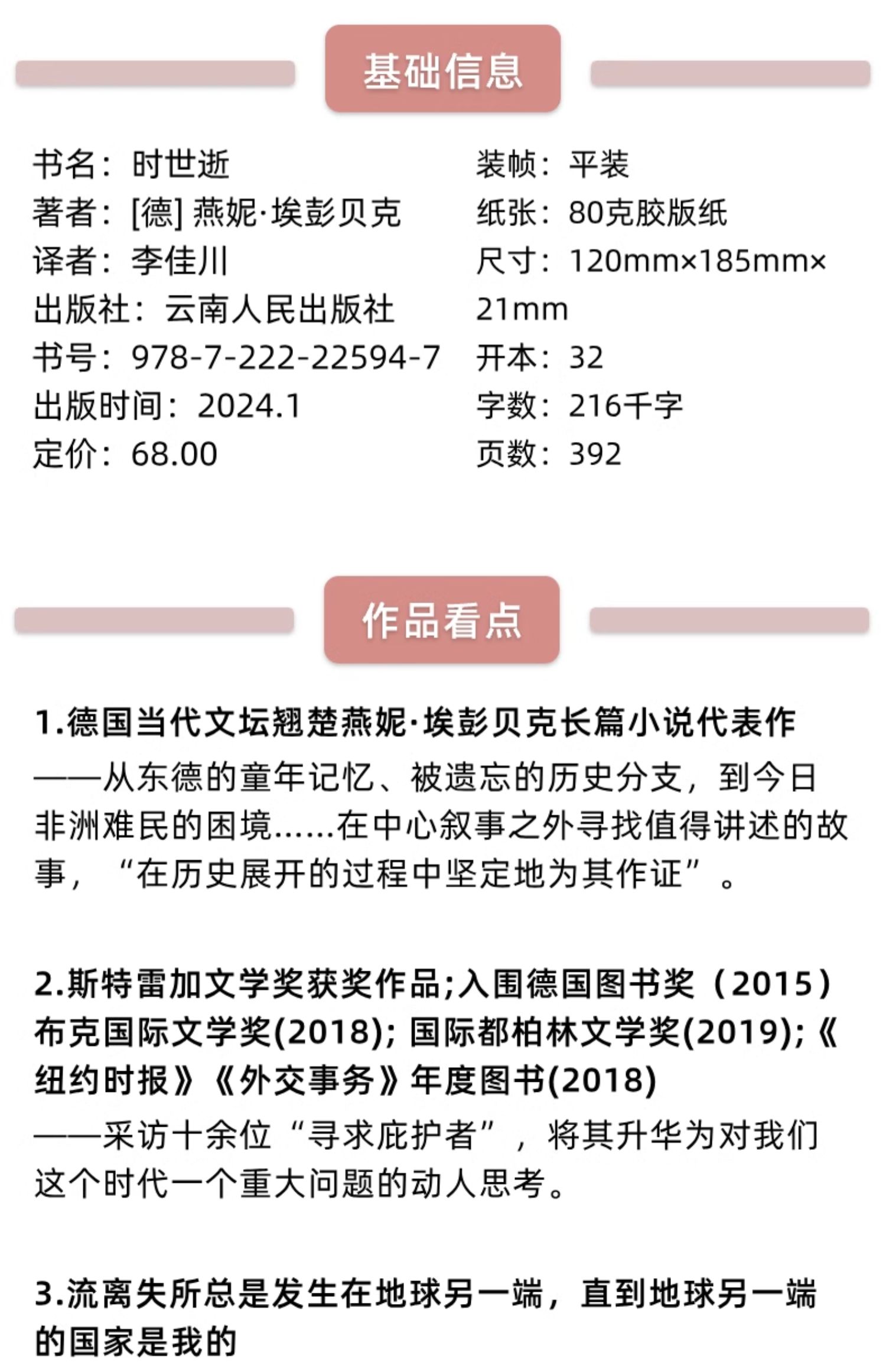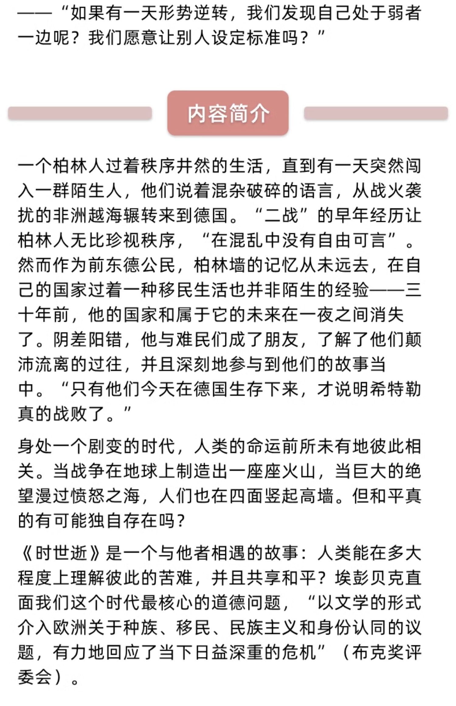 【微瑕】时世逝(德)燕妮·埃彭贝克 著 24年国际布克奖获奖作家