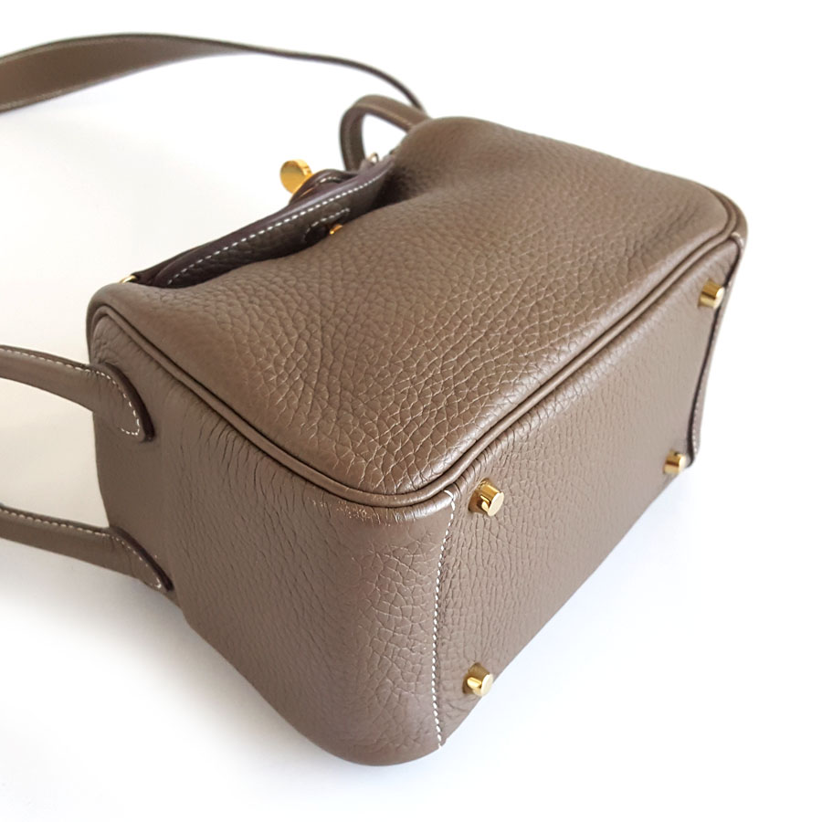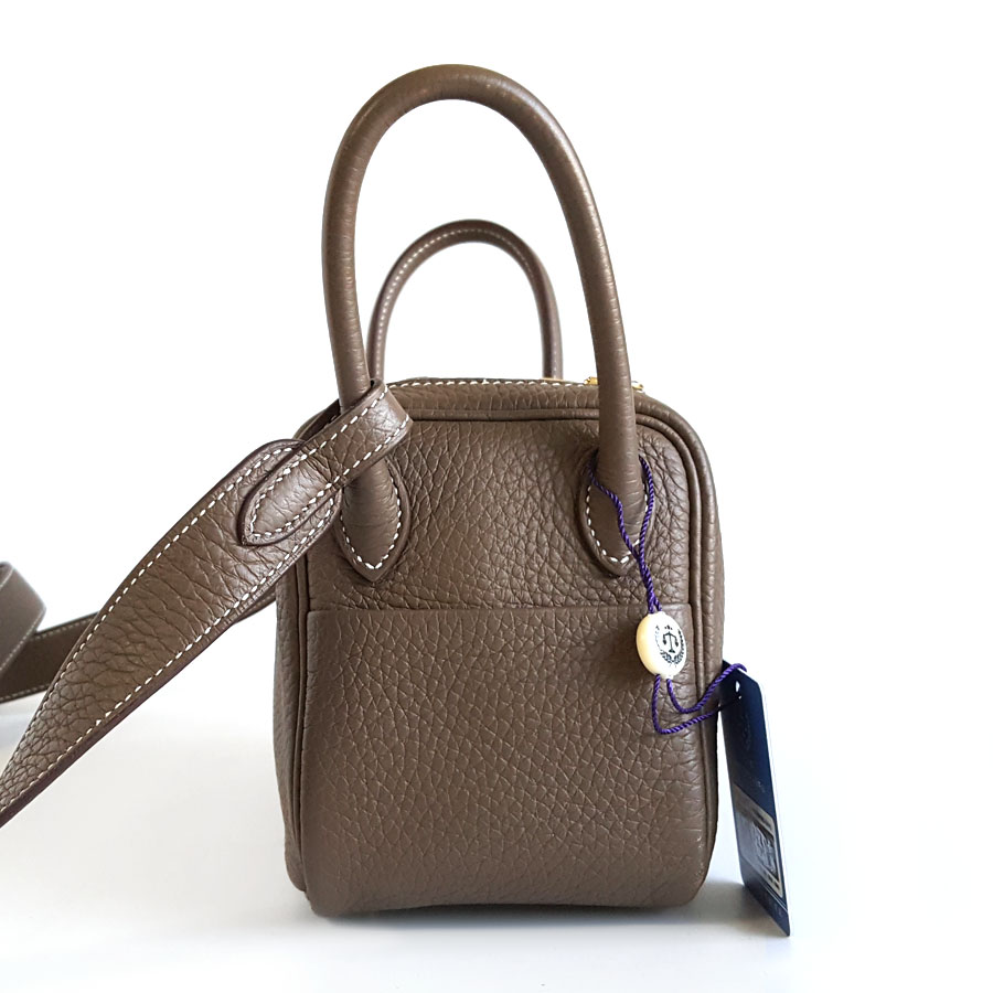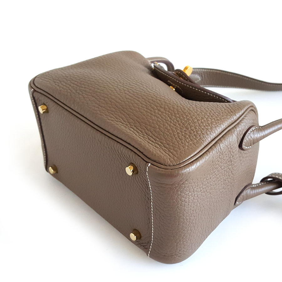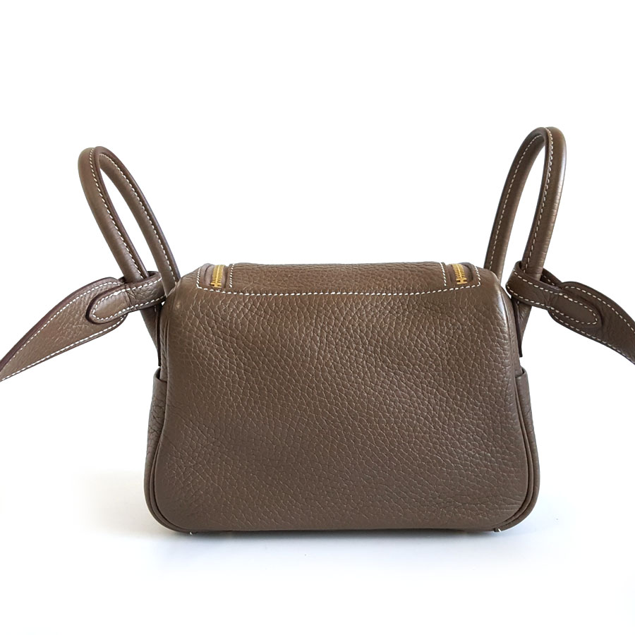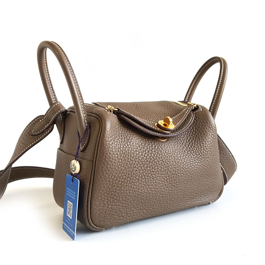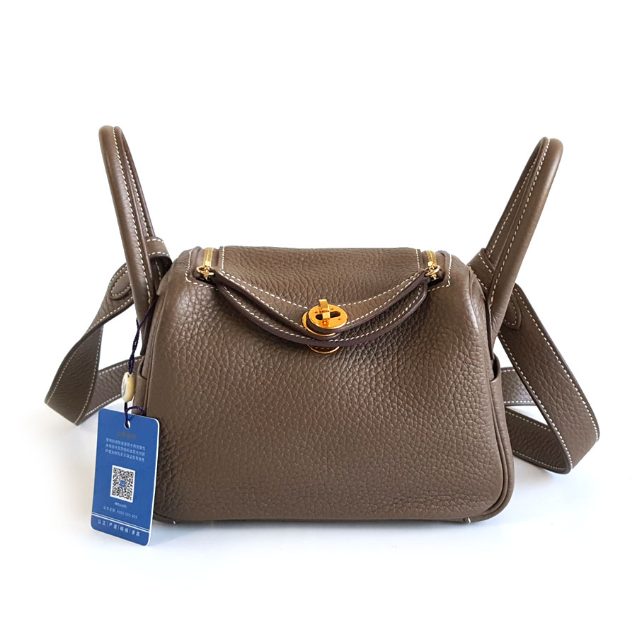 【95新】Hermes爱马仕Lindy大象灰金扣Mini Lindy单肩斜挎包女士261125TB09