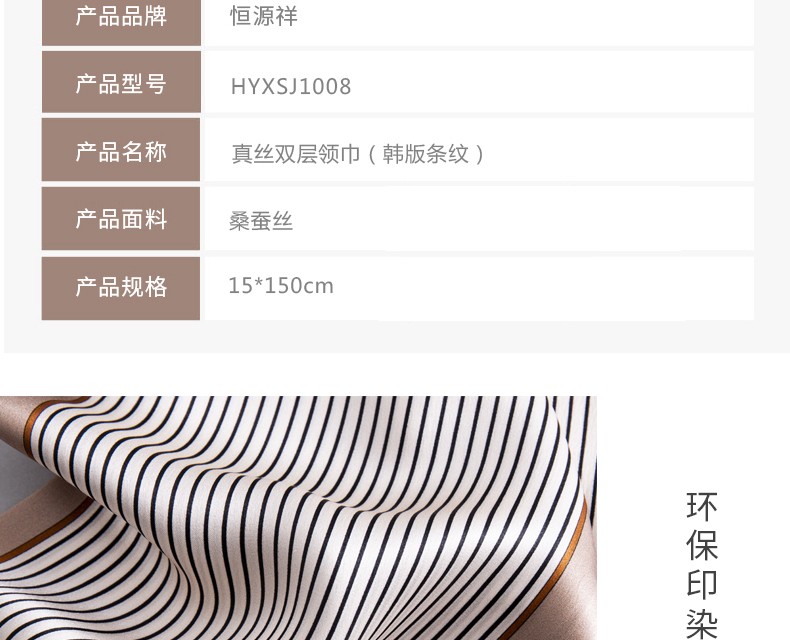 恒源祥(HYX) 恒源祥礼业HYXSJ1008真丝双层领巾韩版条纹 15*150