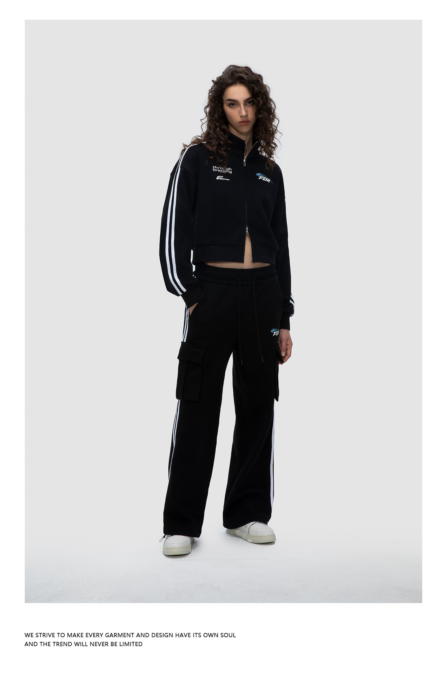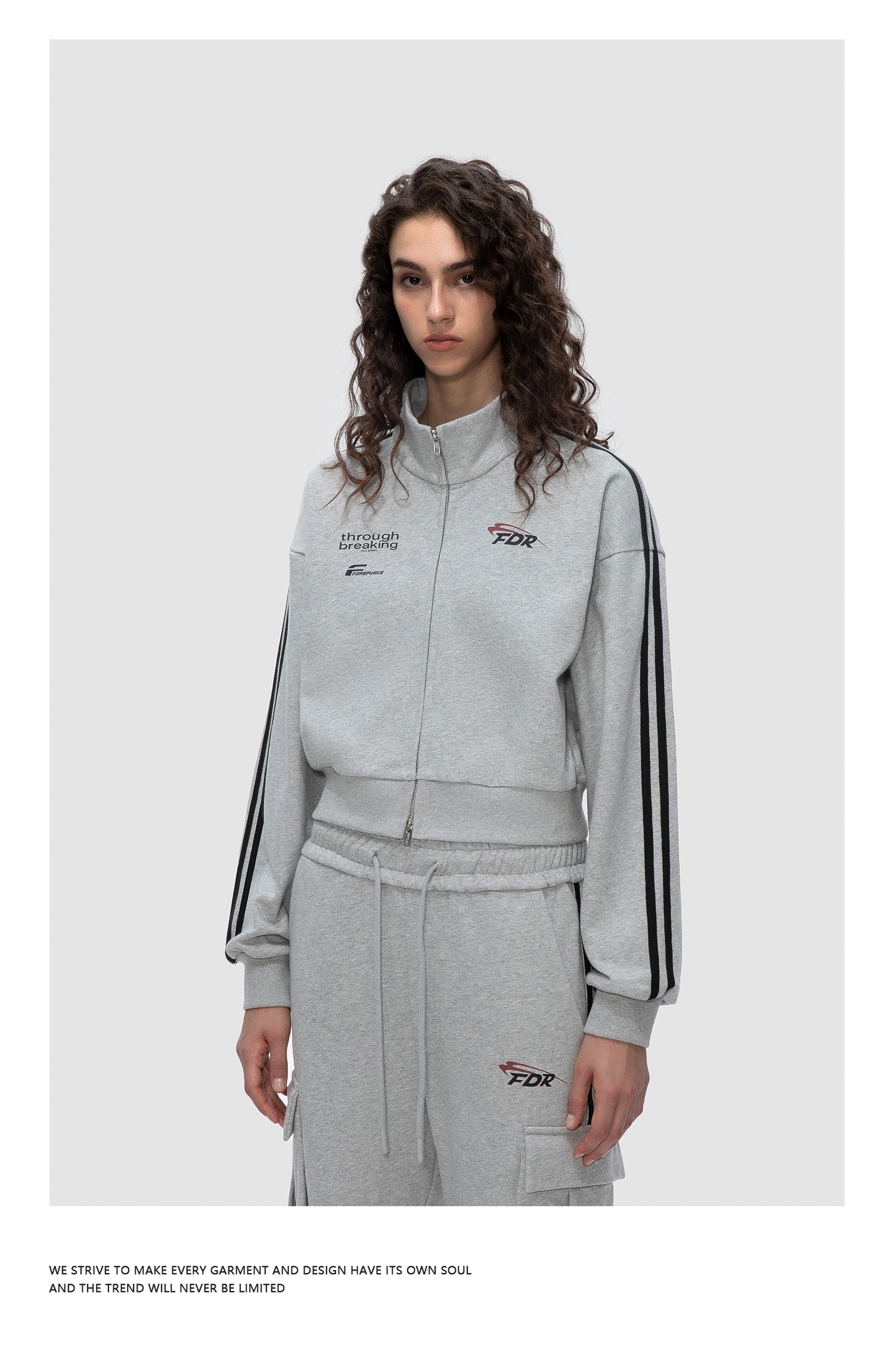 FDR 国潮美式运动短款夹克外套男女秋季高街宽松休闲长裤情侣套装