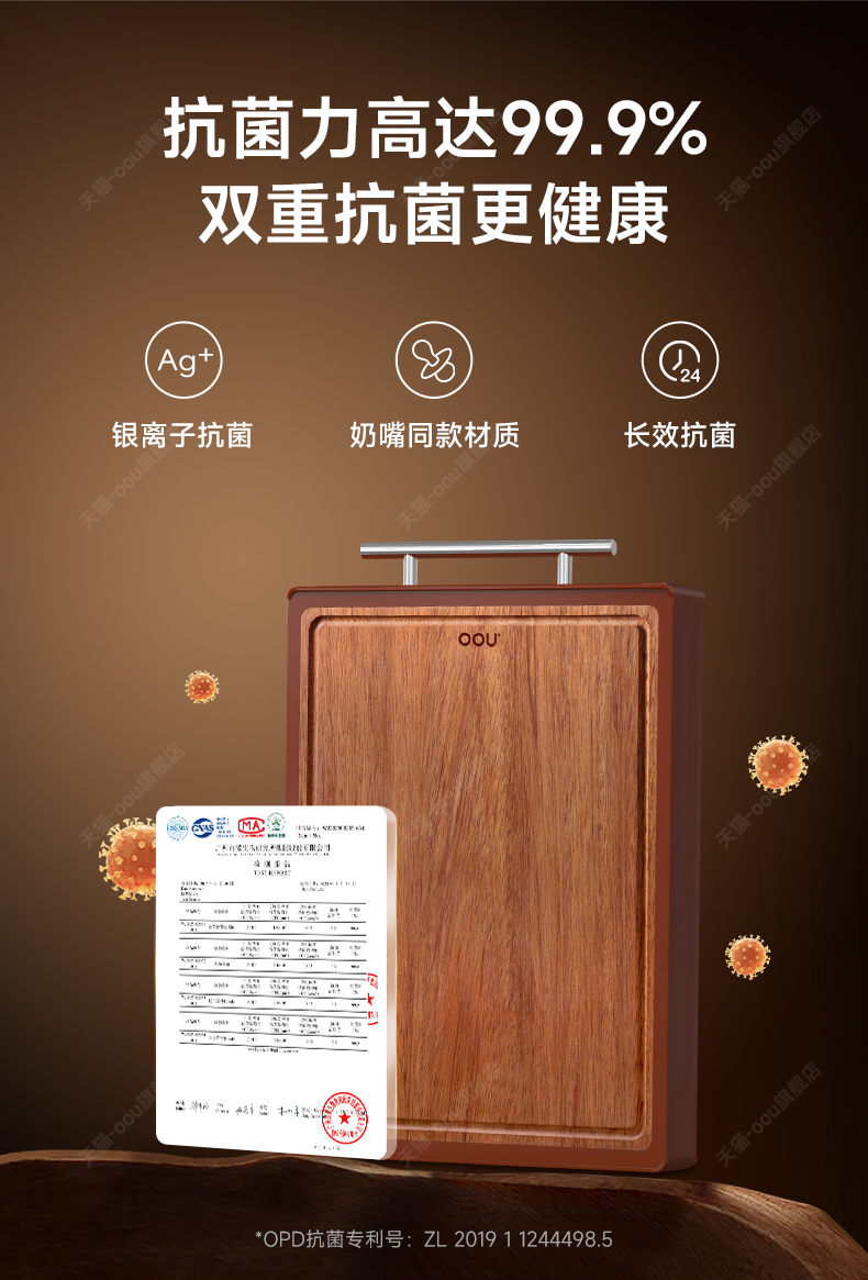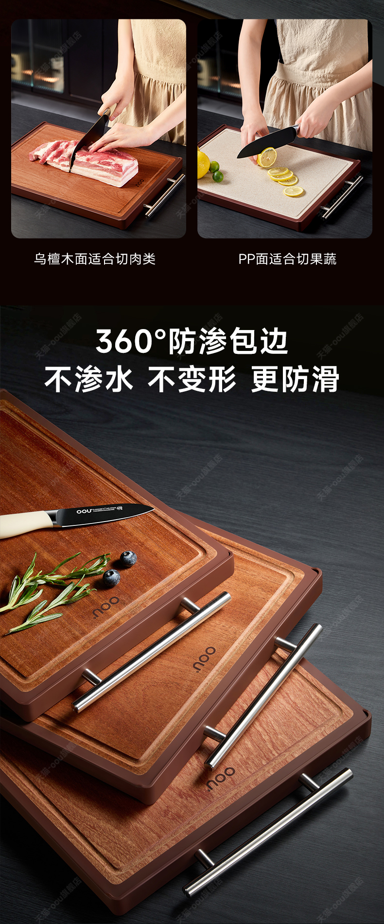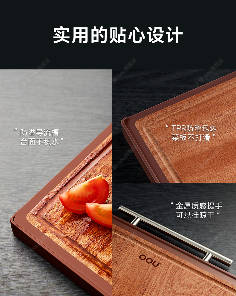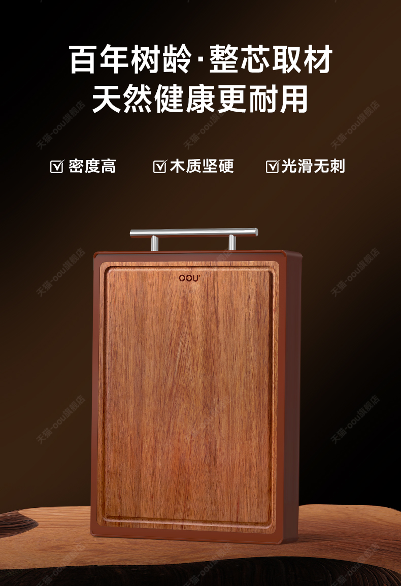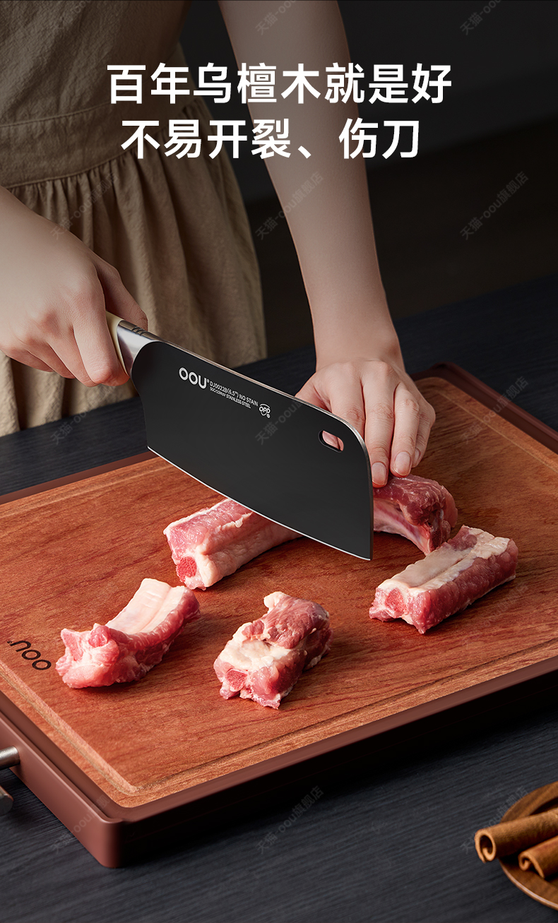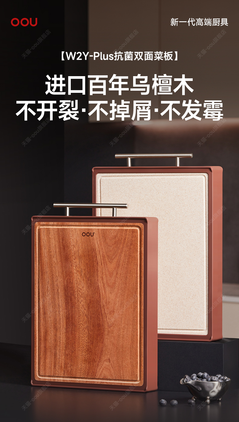OOU乌檀木菜板抗菌防霉家用双面案板实木厨房砧板切菜板水果粘板