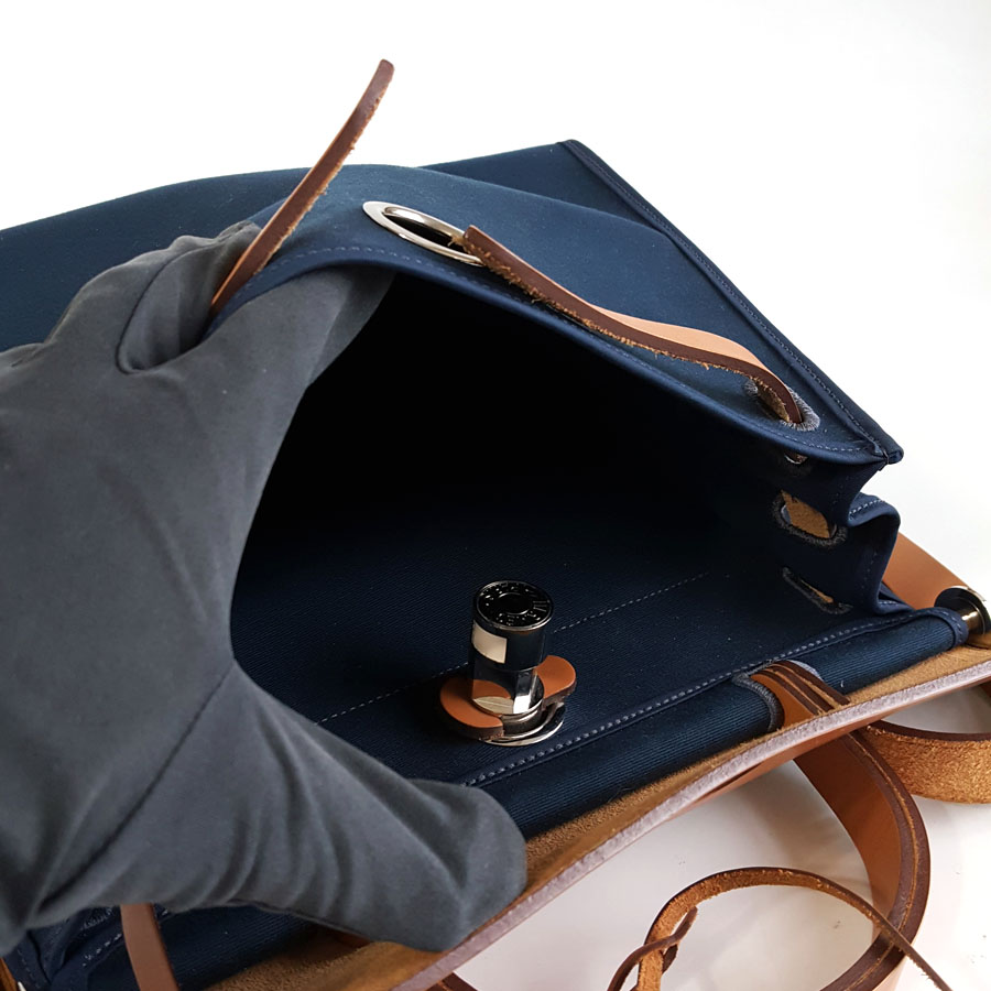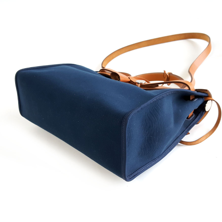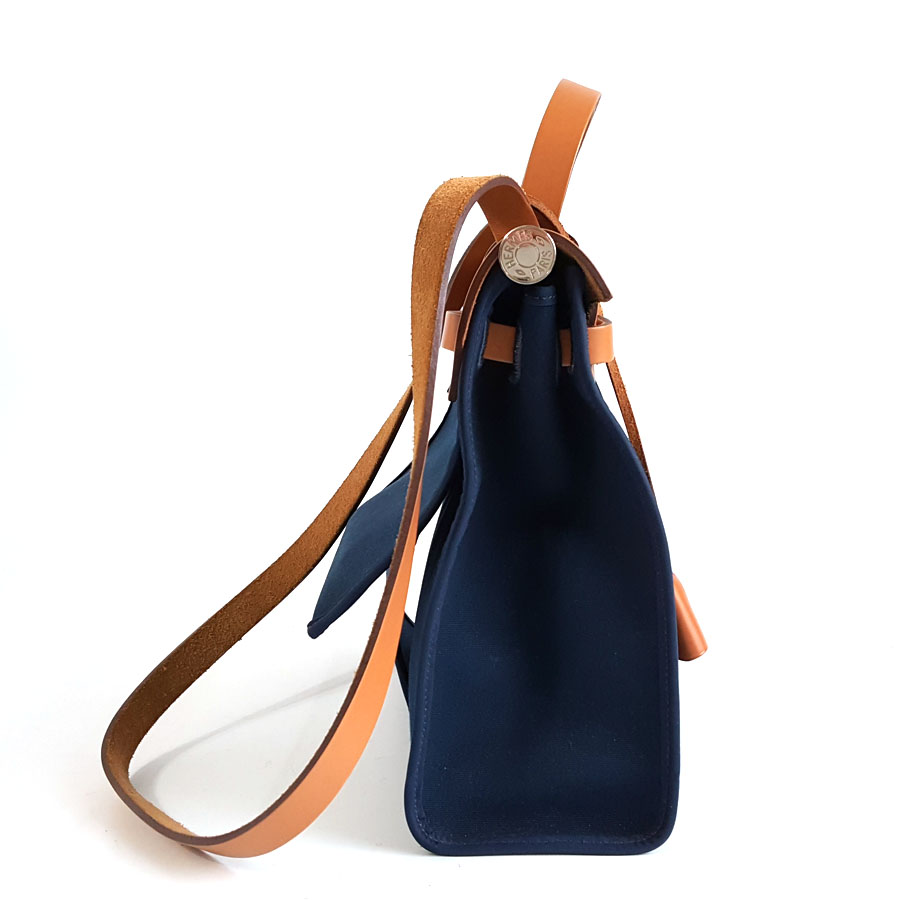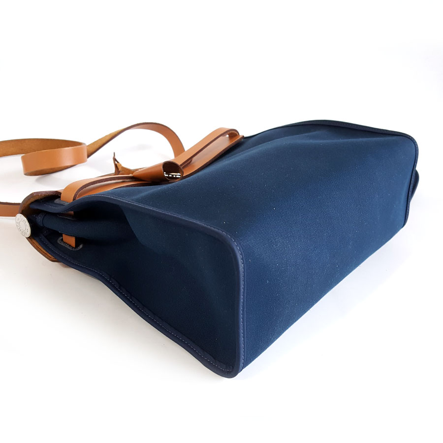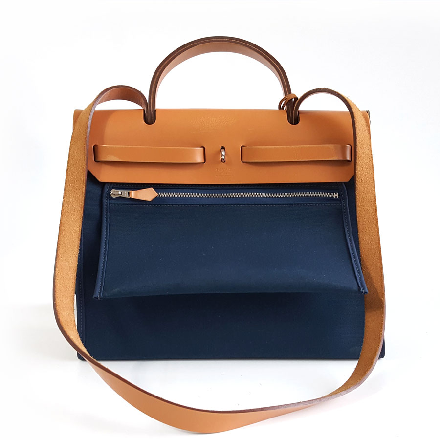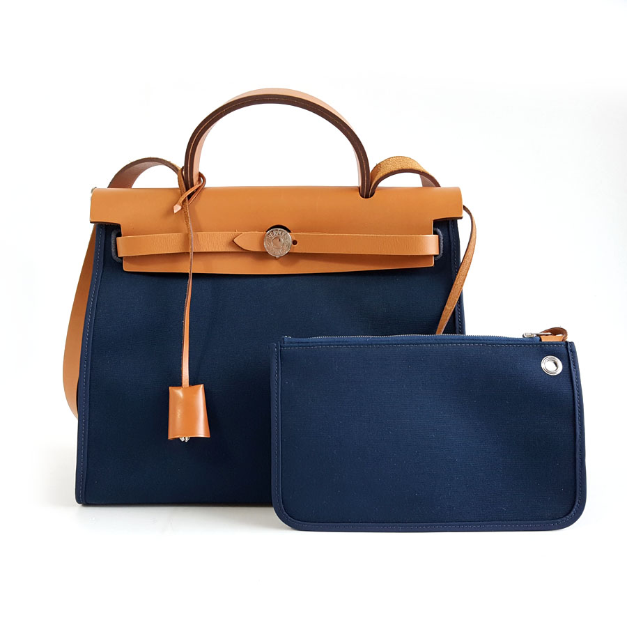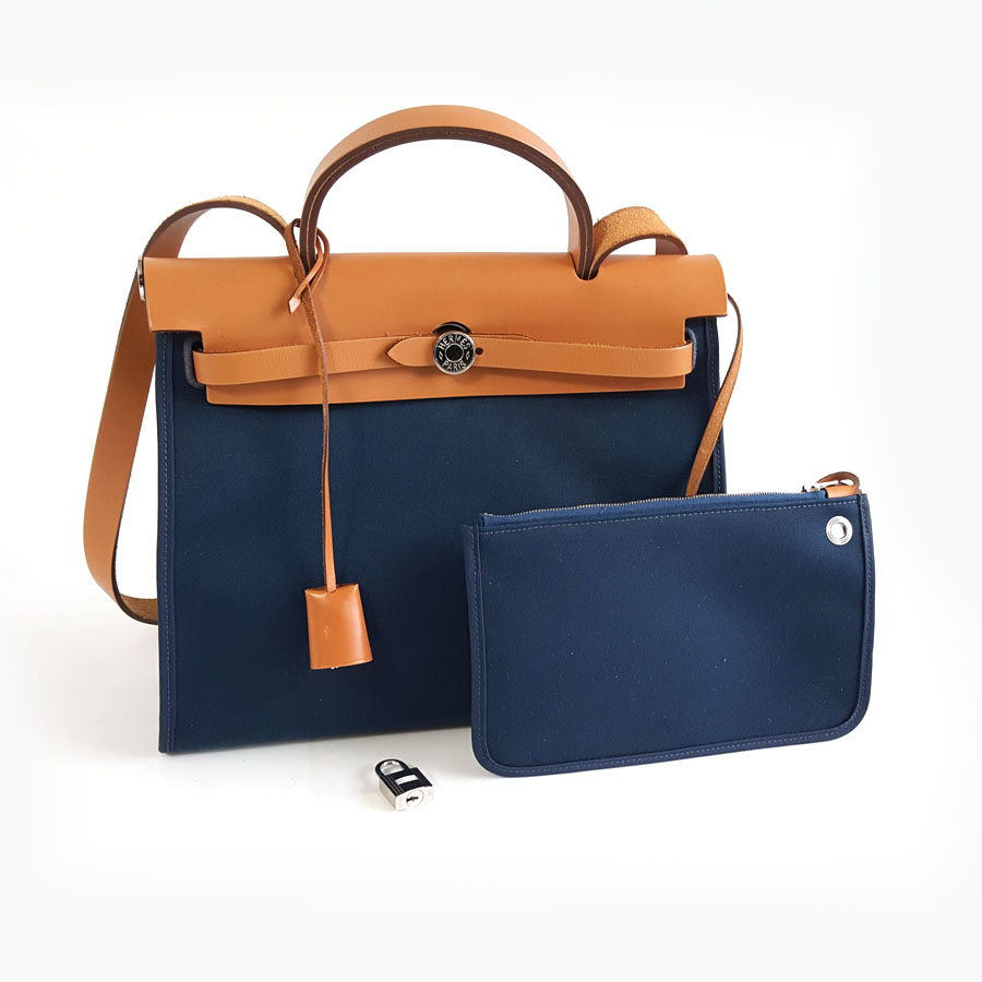 【95新】Hermes爱马仕Herbag系列蓝色帆布拼棕色herbag 31手提单肩包女士280226NJS71