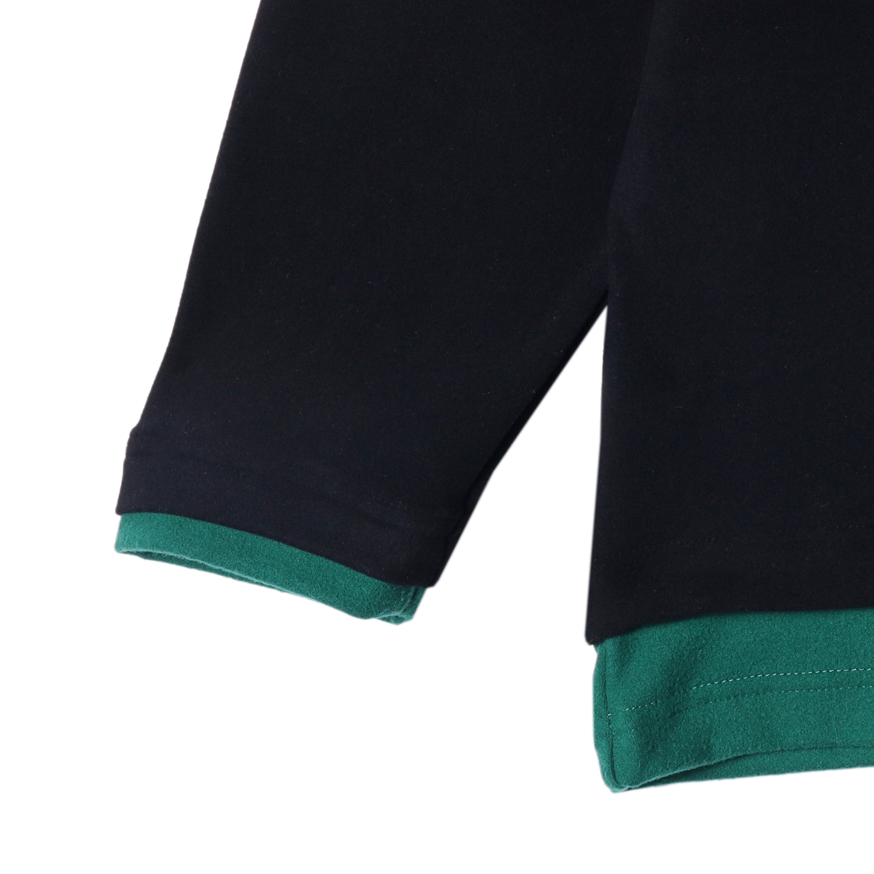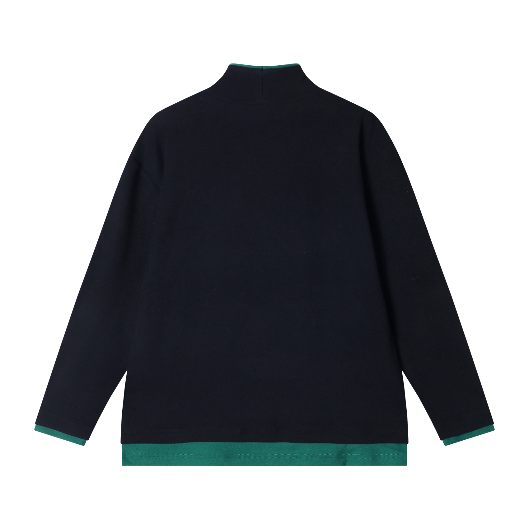 T2090秋冬季新款时尚个性韩版绒面撞色假两件立领长袖T恤情侣百搭上衣