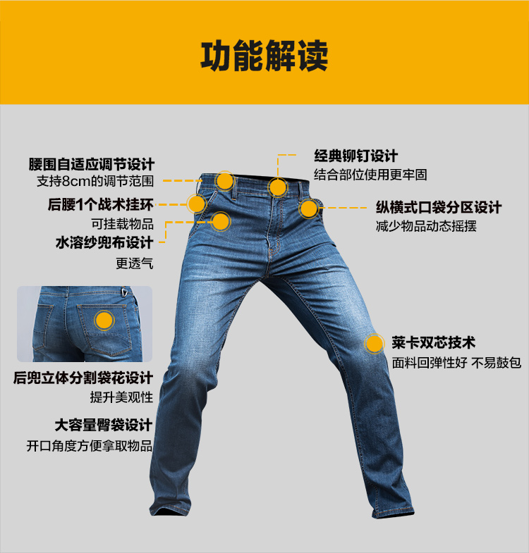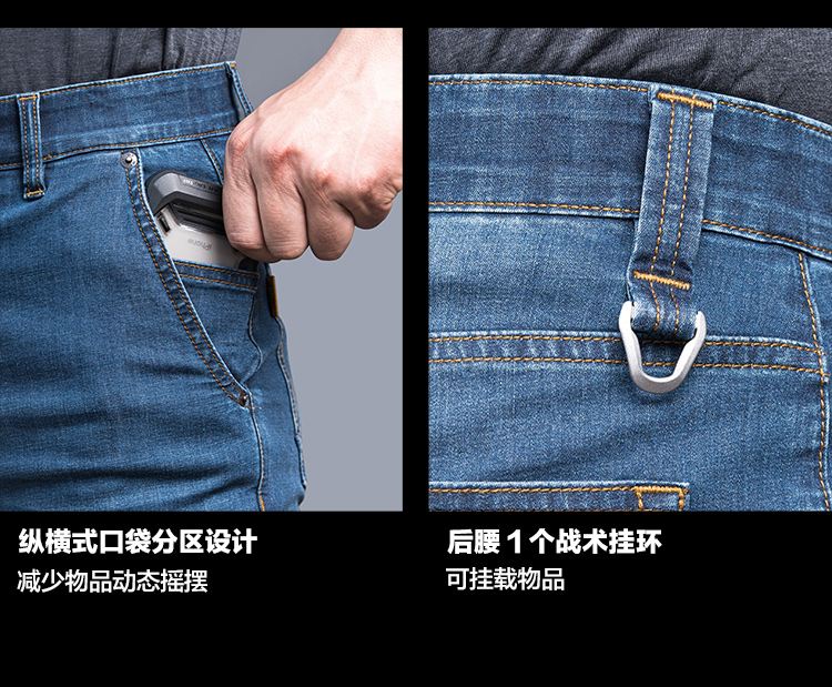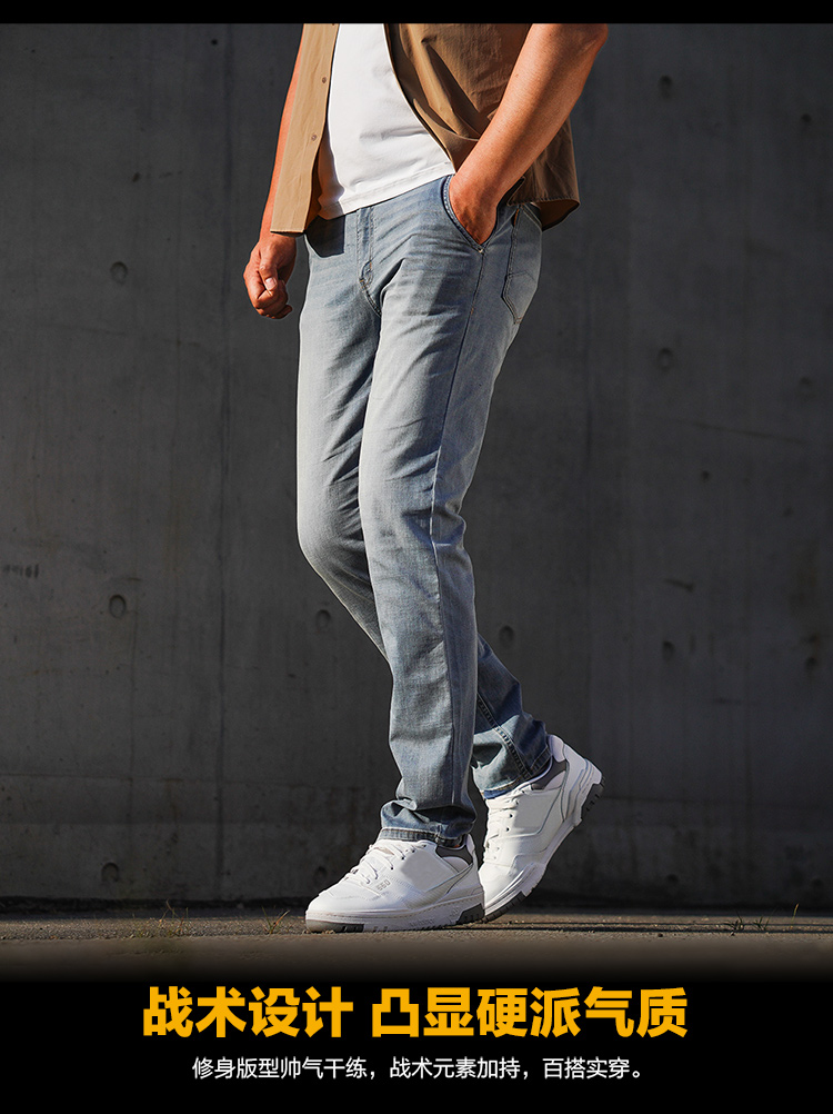 直筒隐霜轻量战术通勤牛仔裤百搭经典牛仔裤男户外休闲直筒长裤