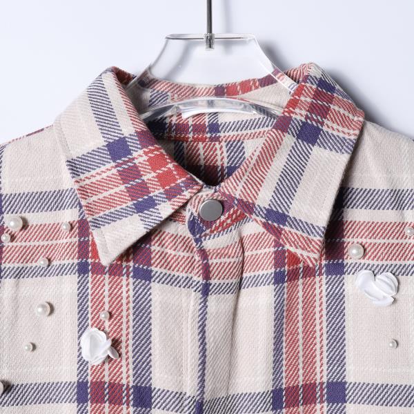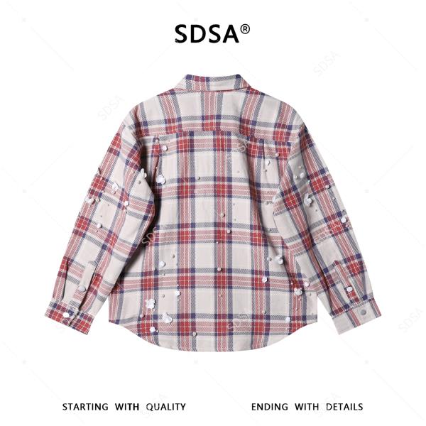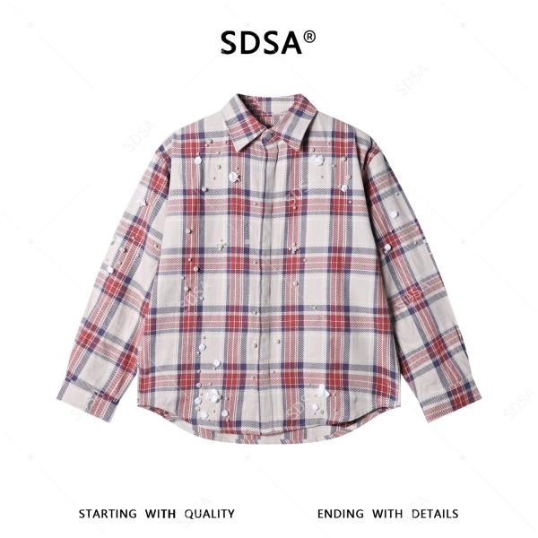 SDSA男装2026新款高贵轻奢韩系格纹立体花钉珠衬衫百搭时尚上衣