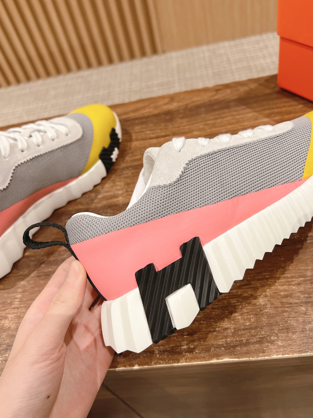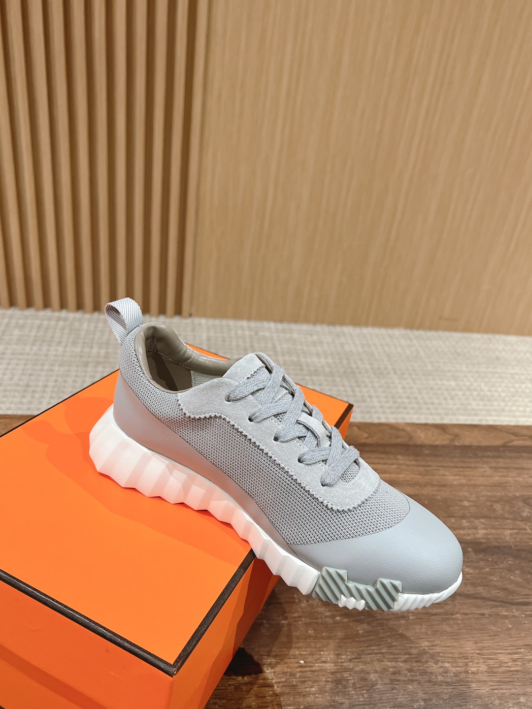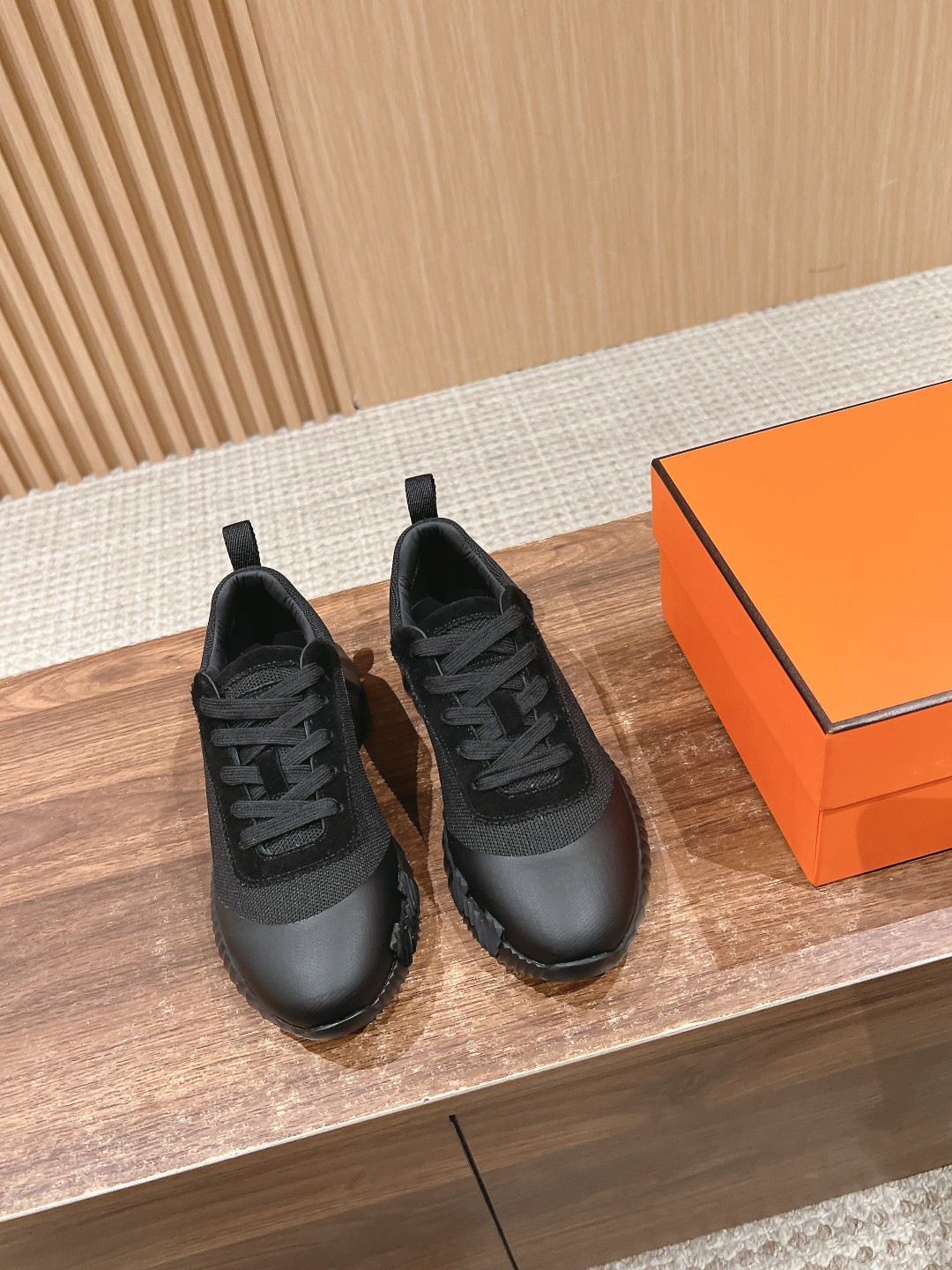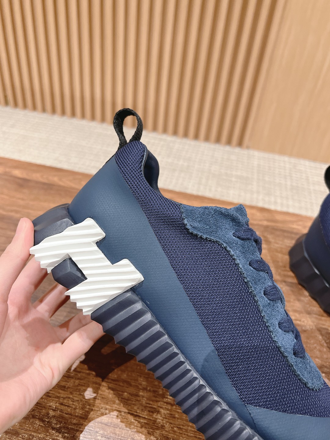爱马*情侣款休闲鞋 麂皮搭拼接网布运动鞋。