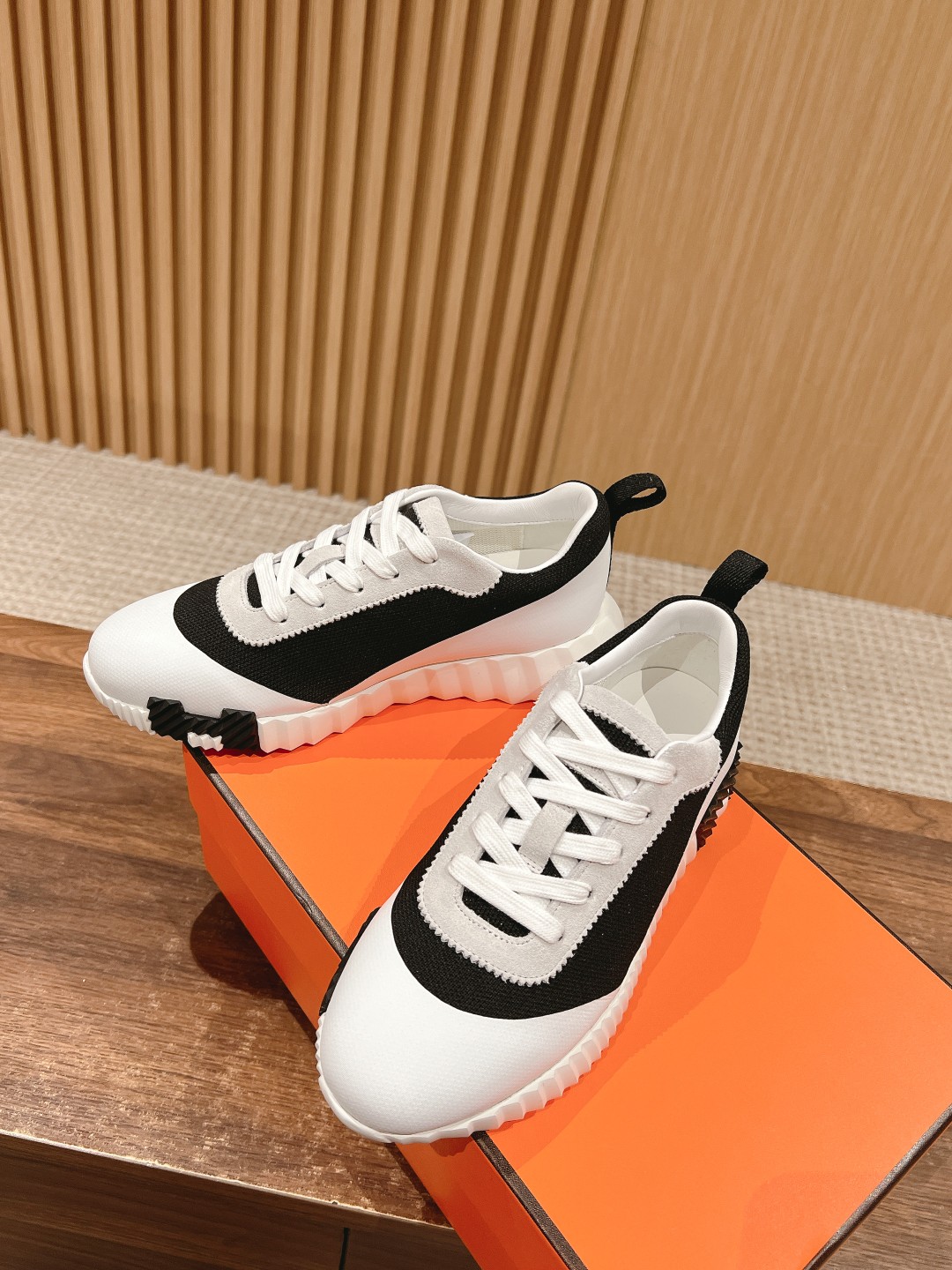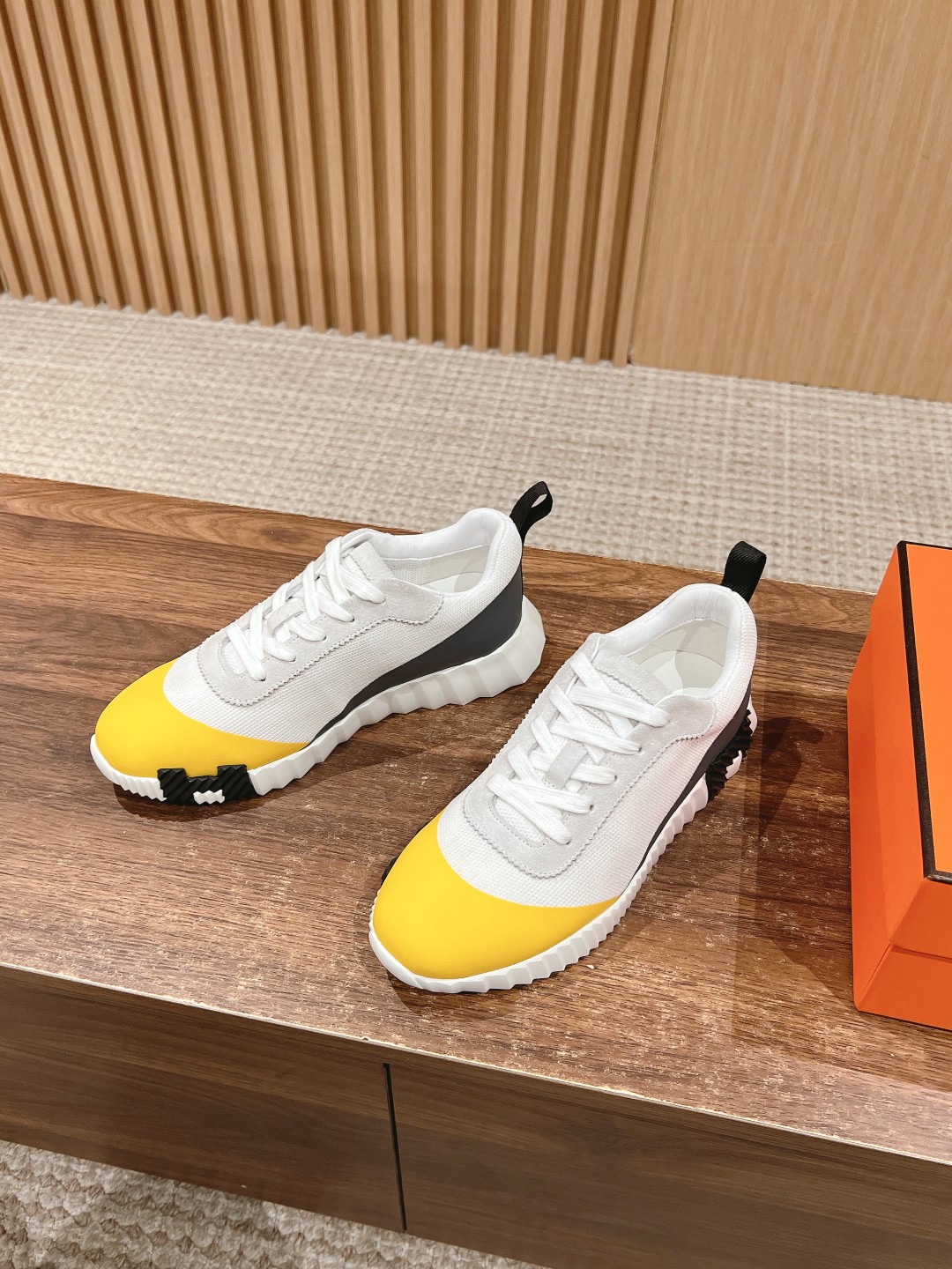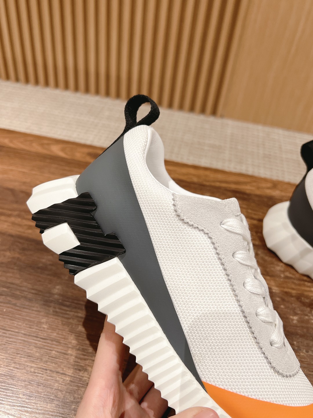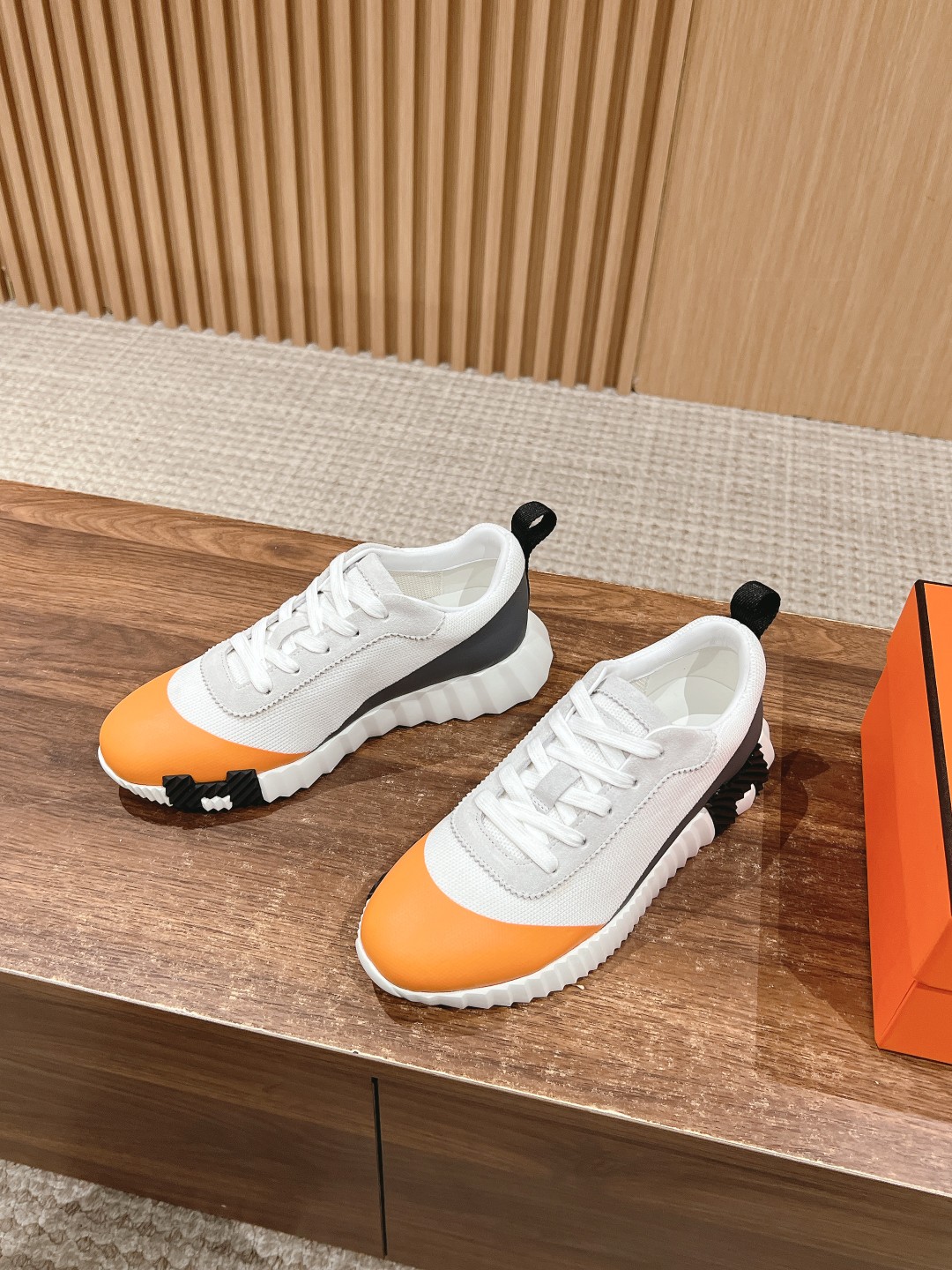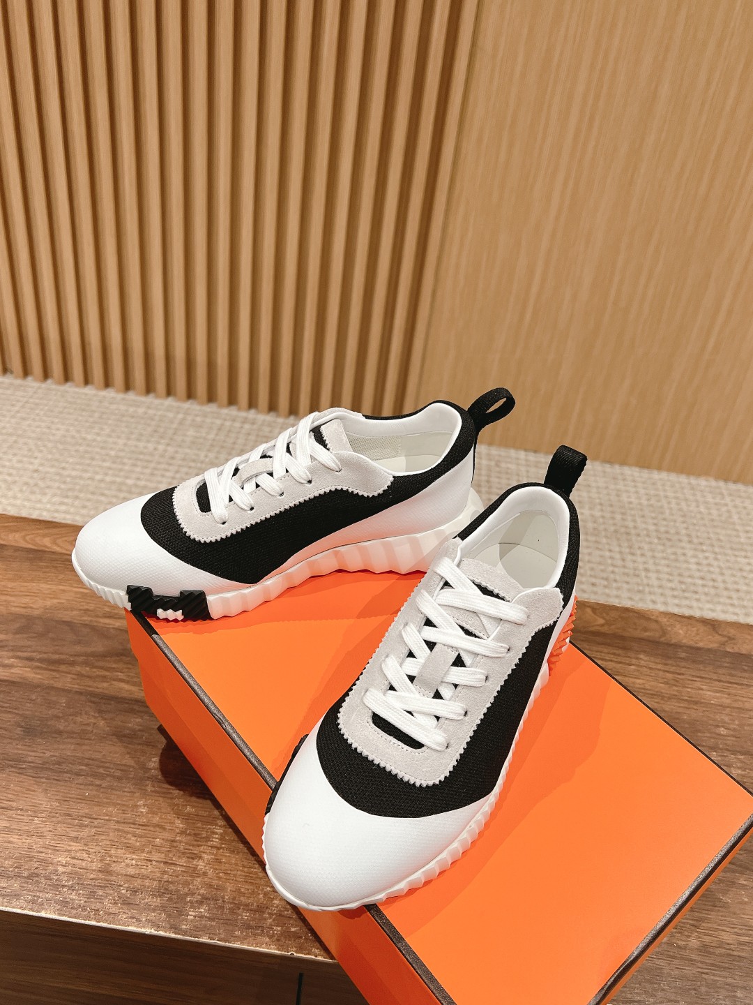 爱马*情侣款休闲鞋 麂皮搭拼接网布运动鞋。