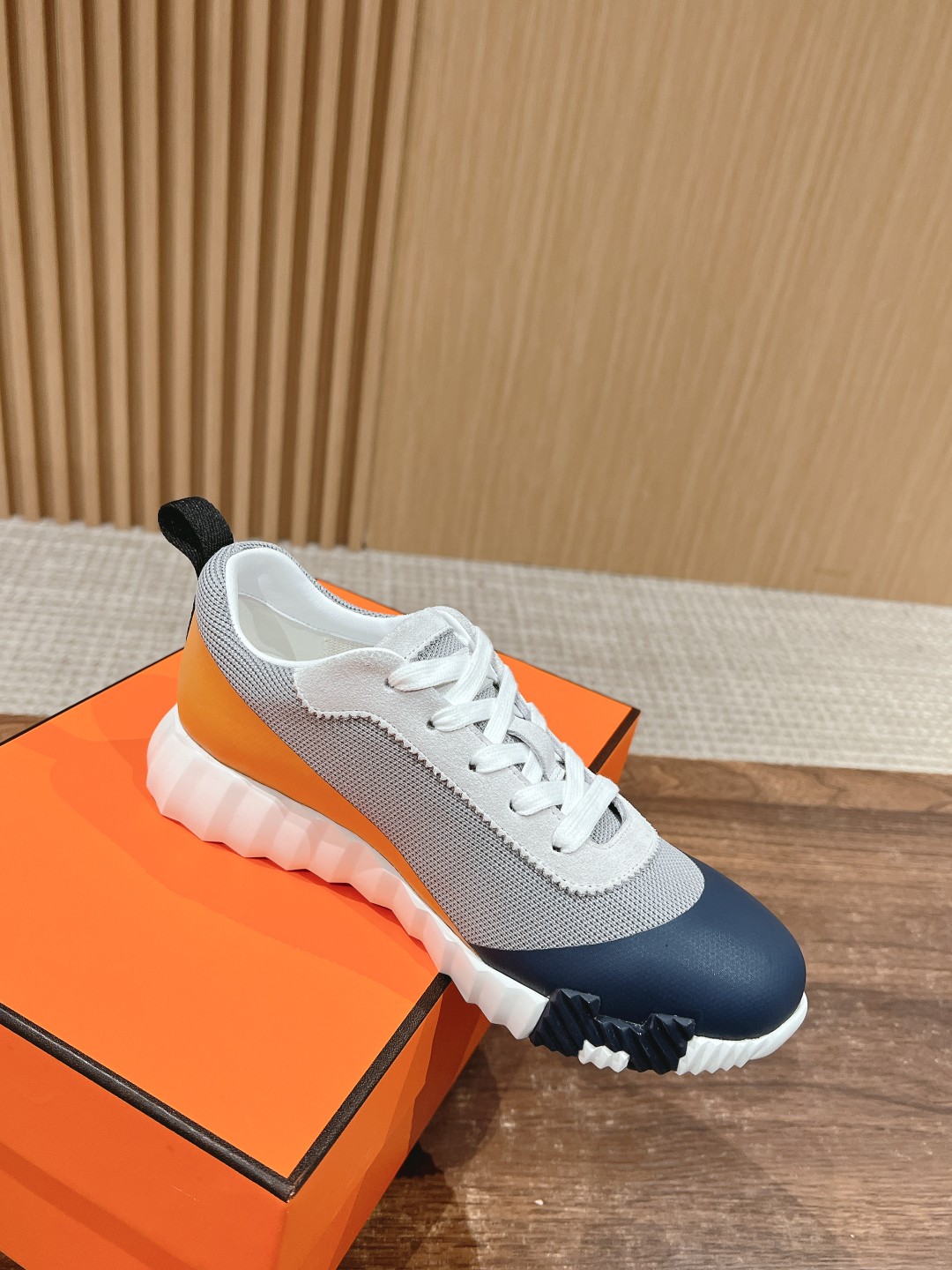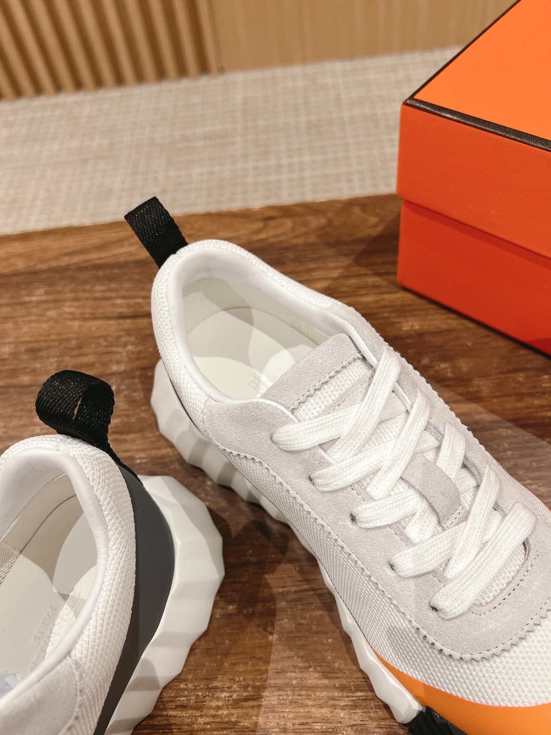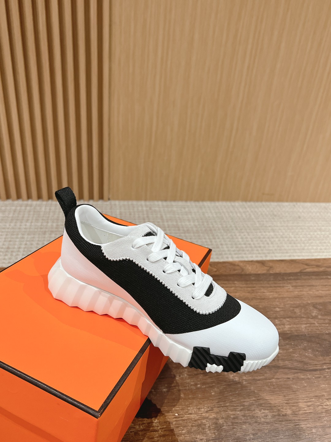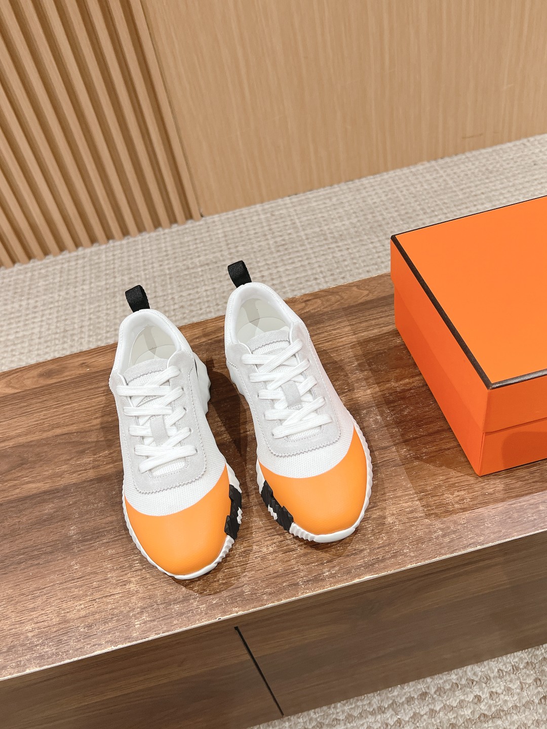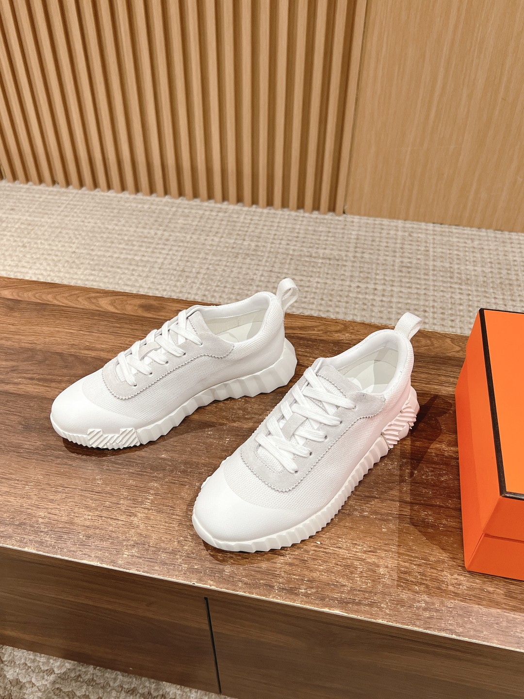 爱马*情侣款休闲鞋 麂皮搭拼接网布运动鞋。