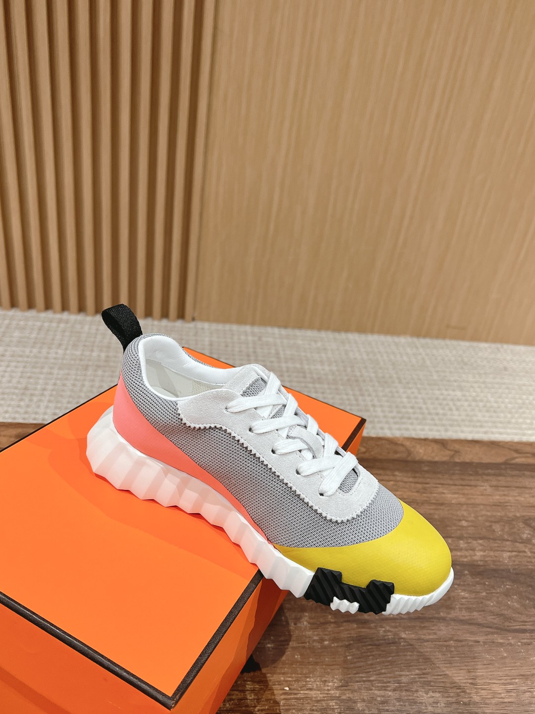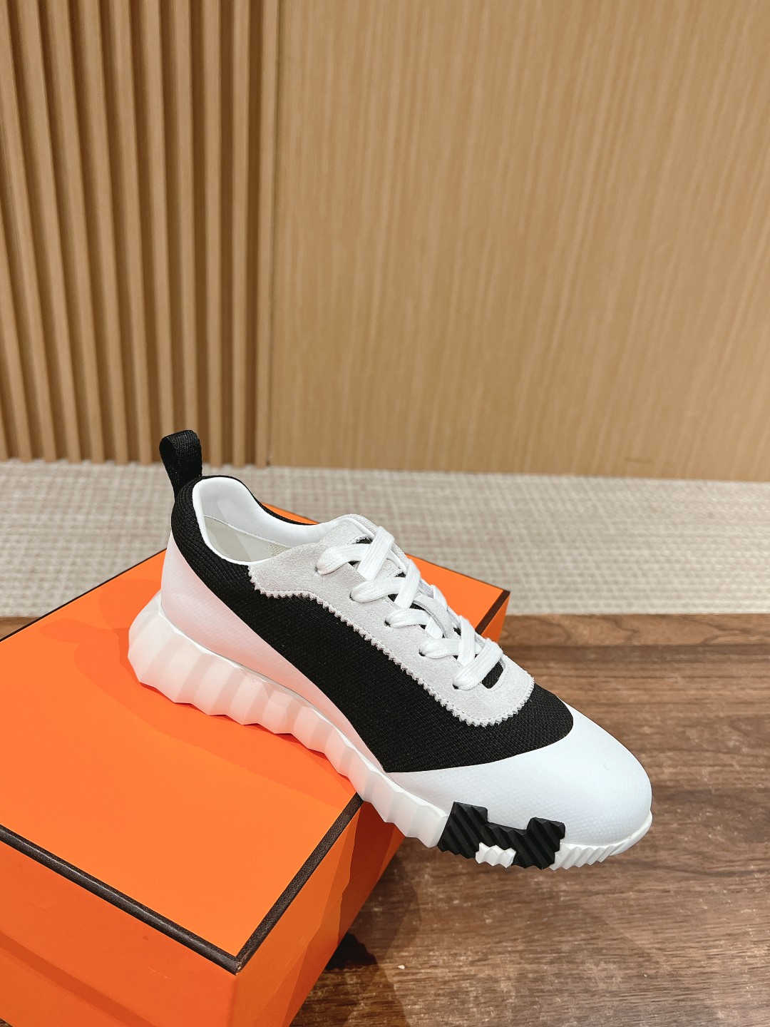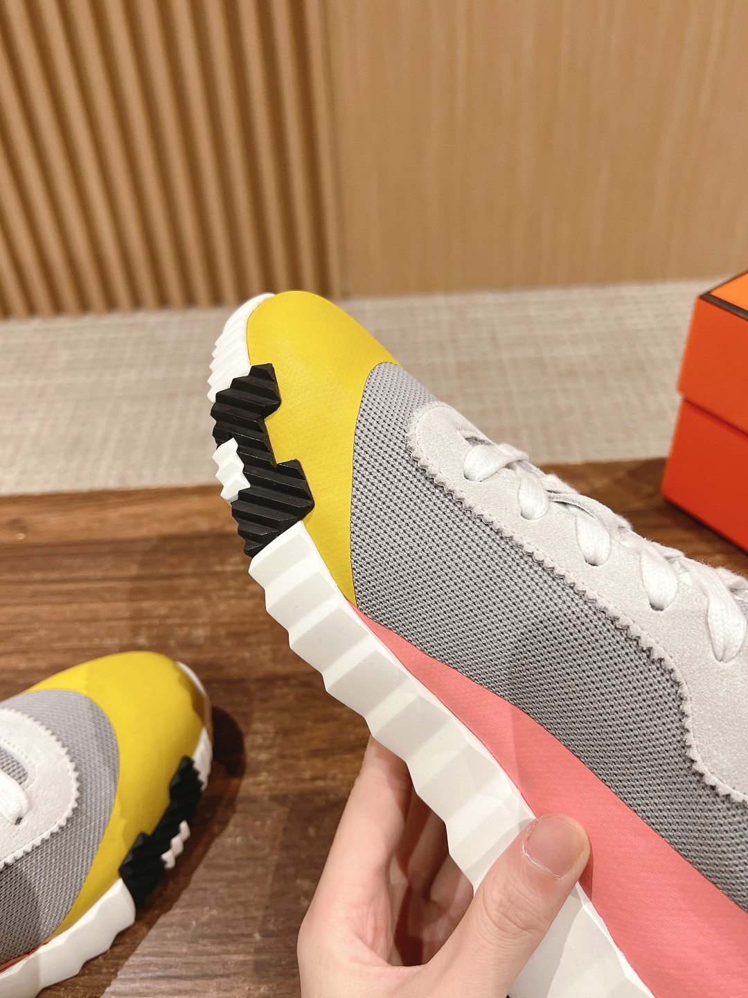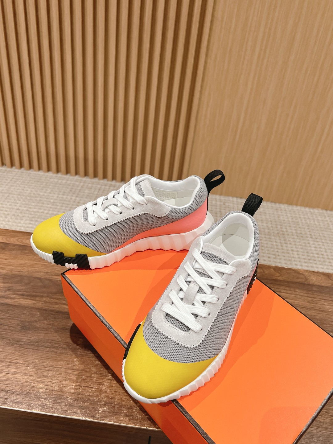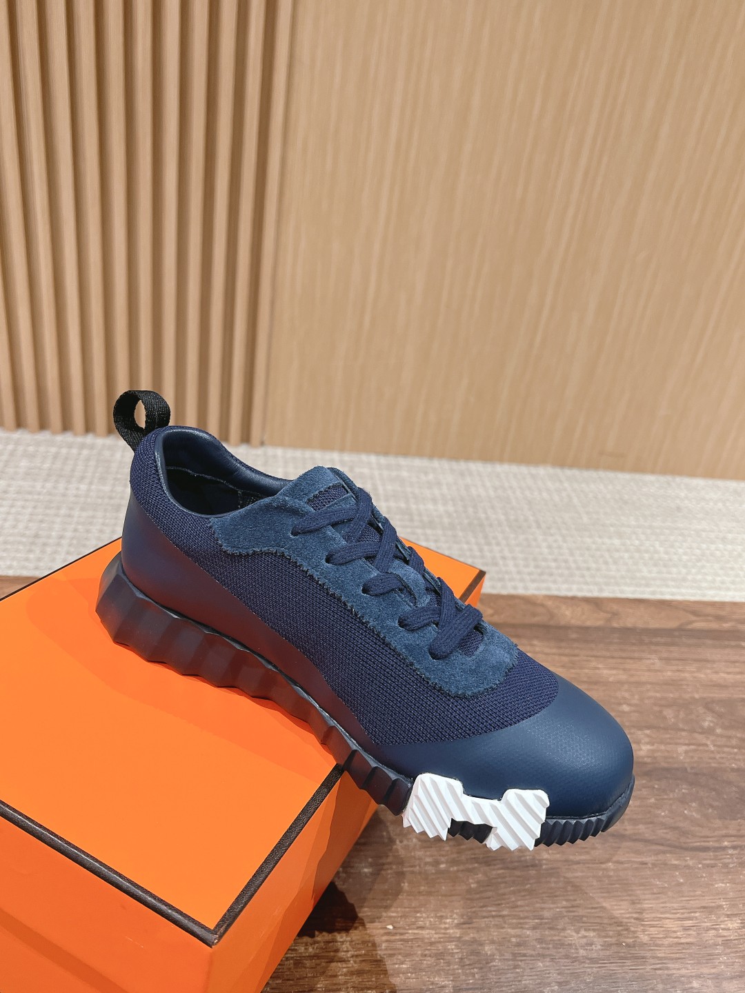 爱马*情侣款休闲鞋 麂皮搭拼接网布运动鞋。