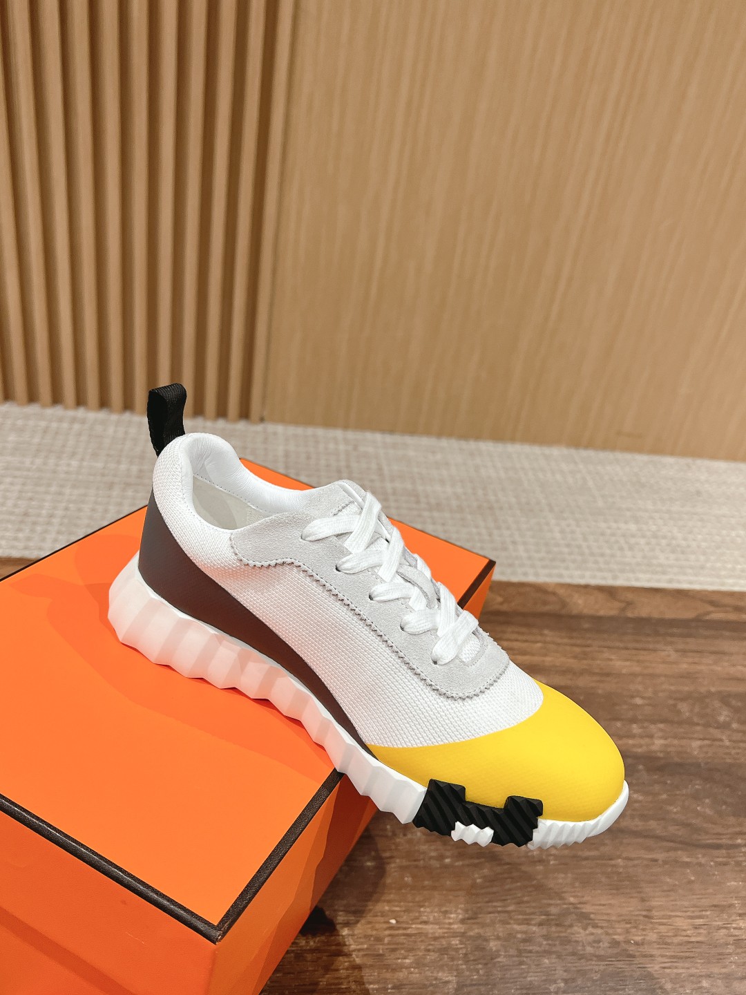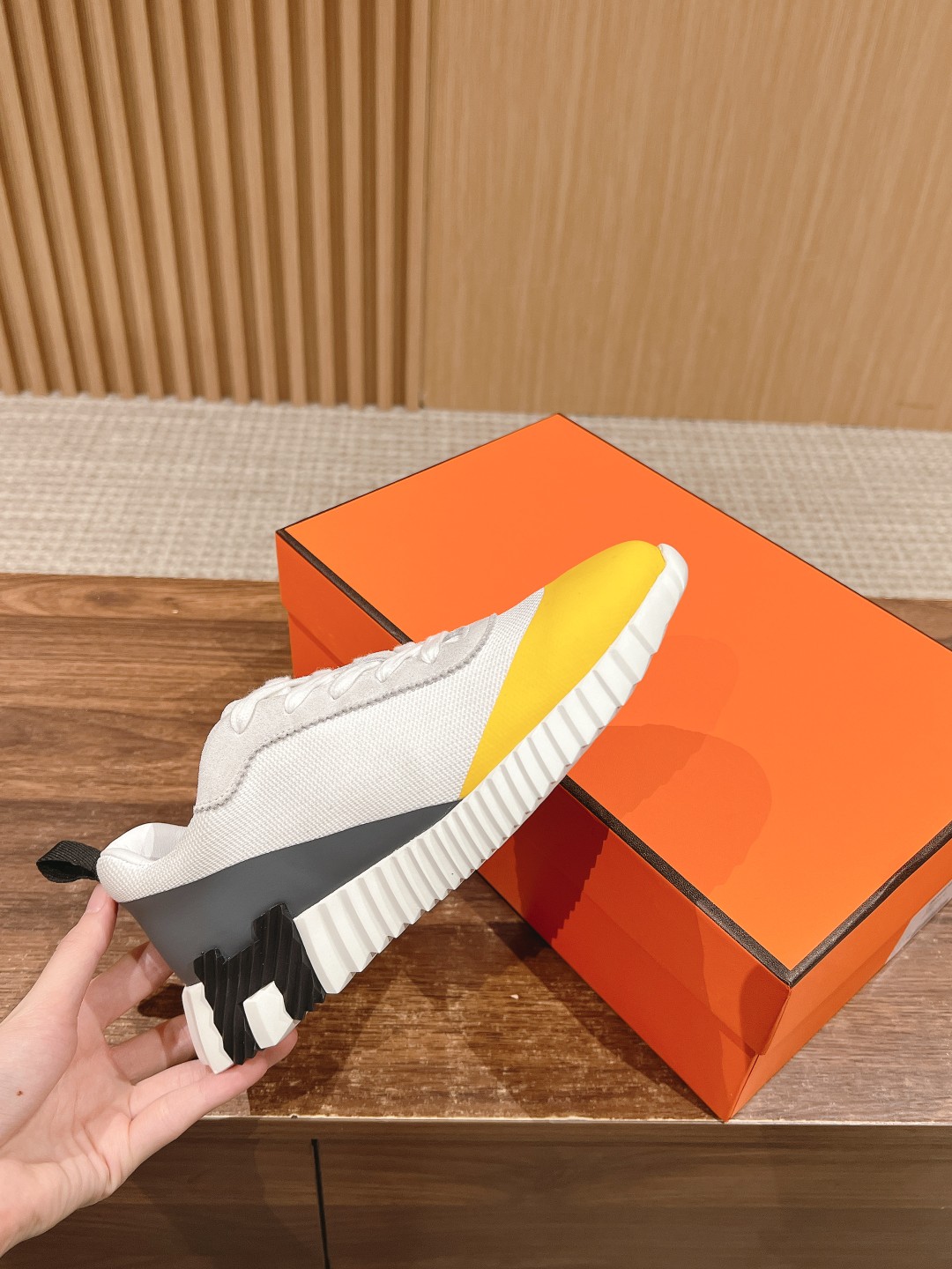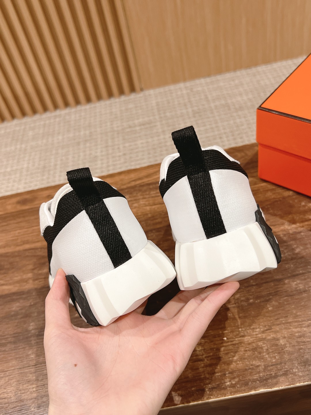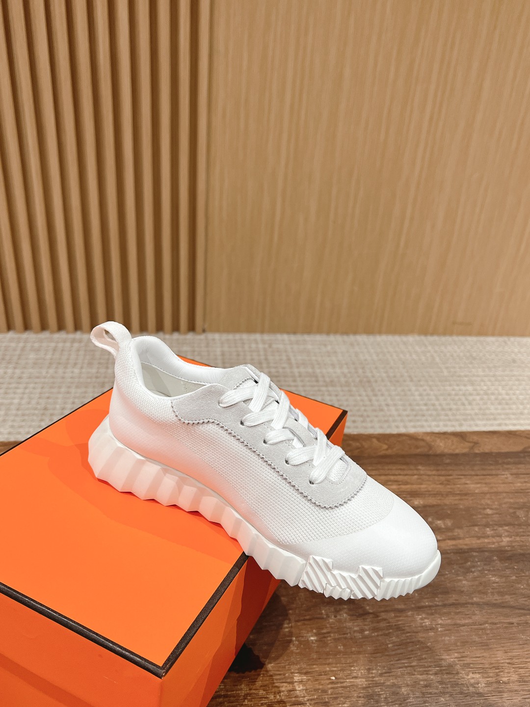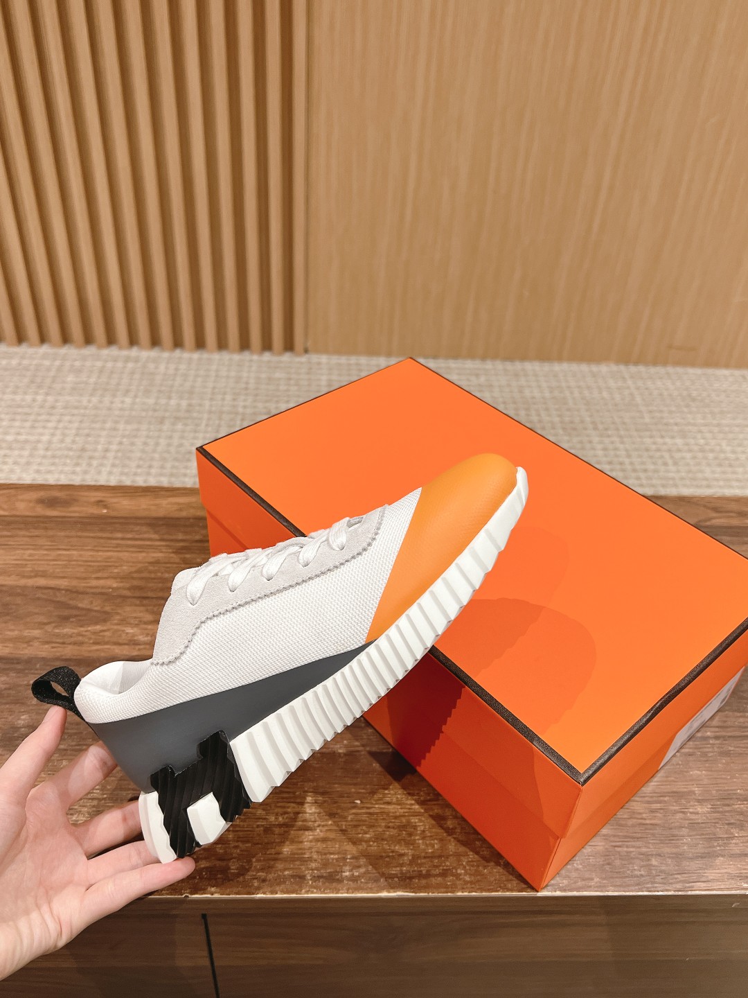 爱马*情侣款休闲鞋 麂皮搭拼接网布运动鞋。