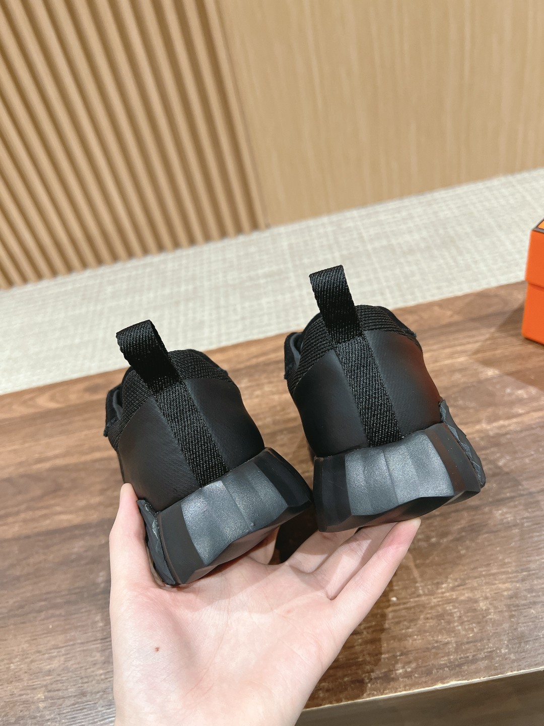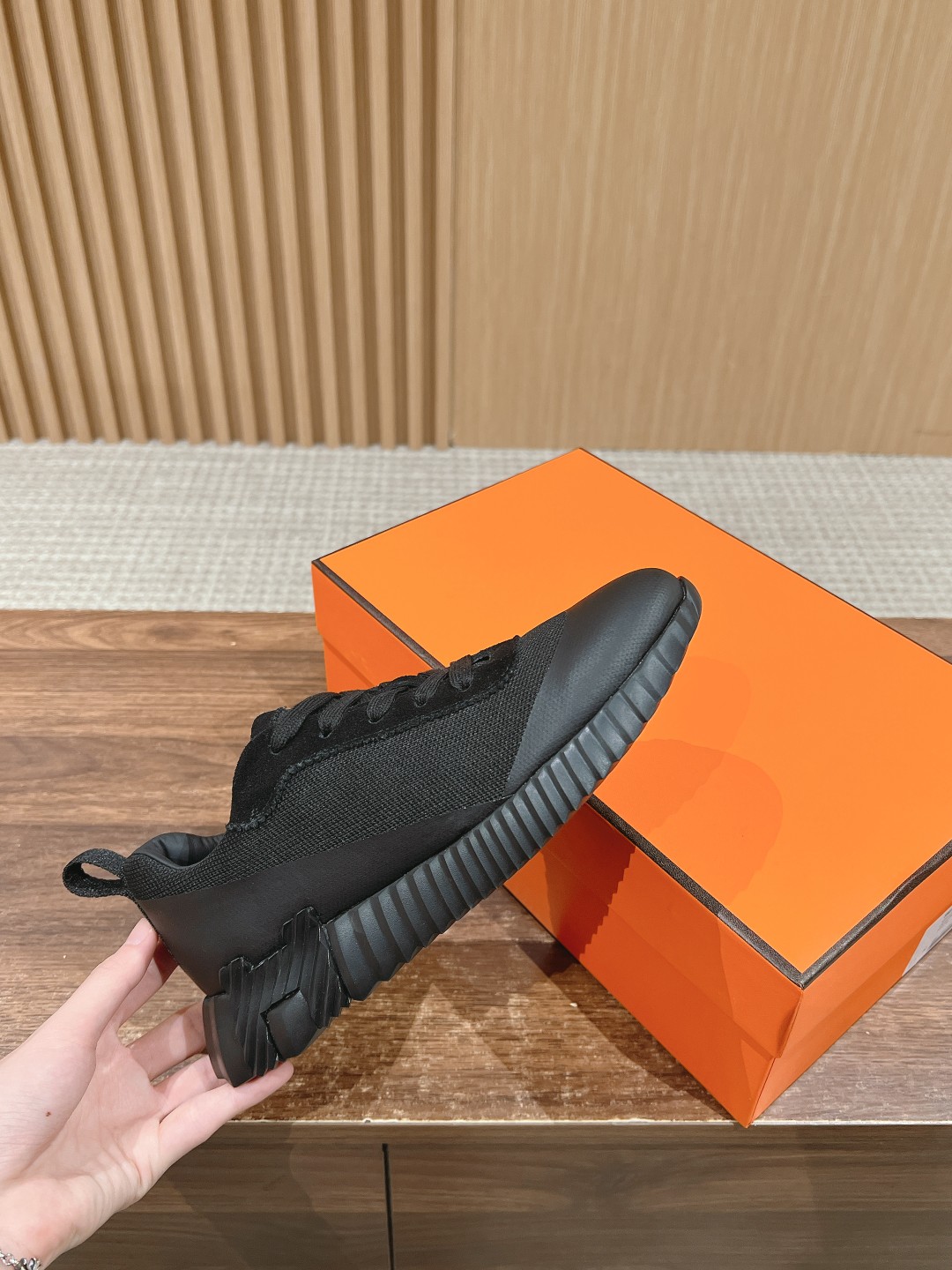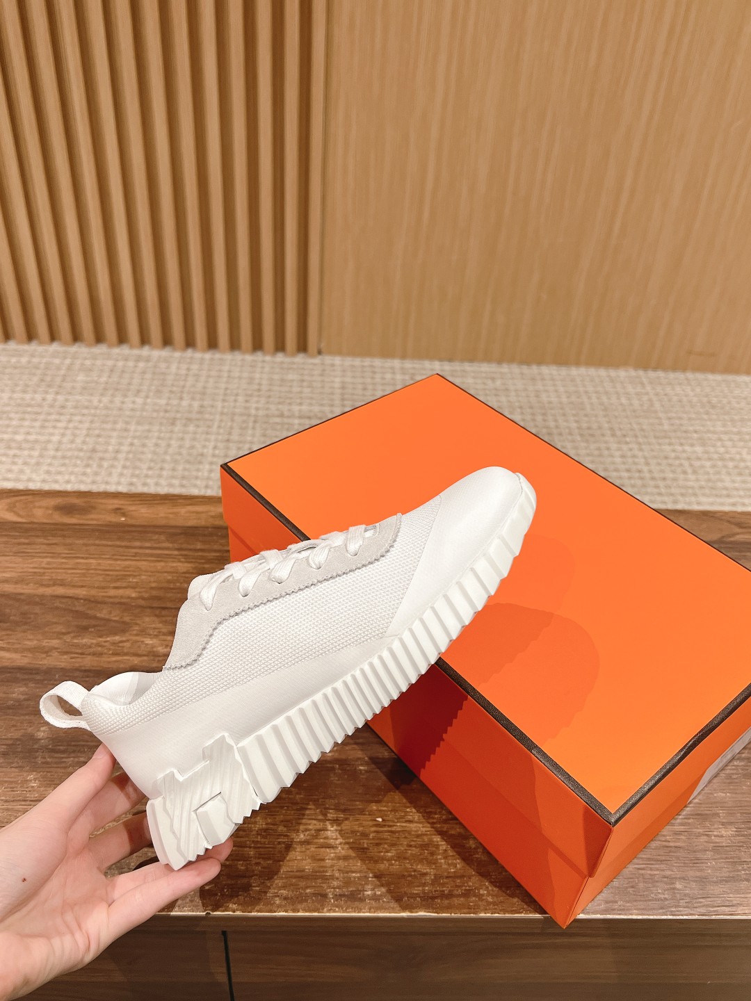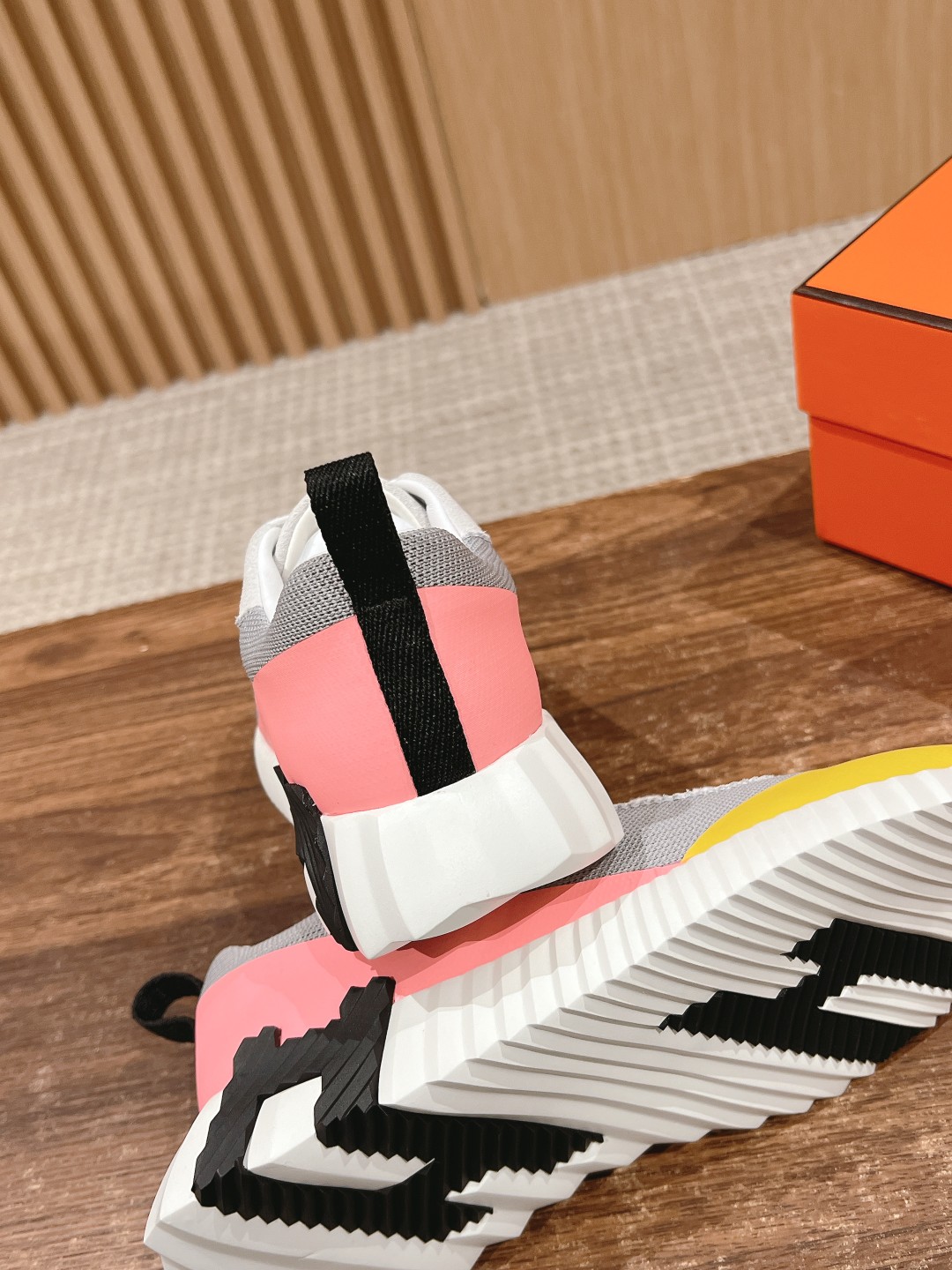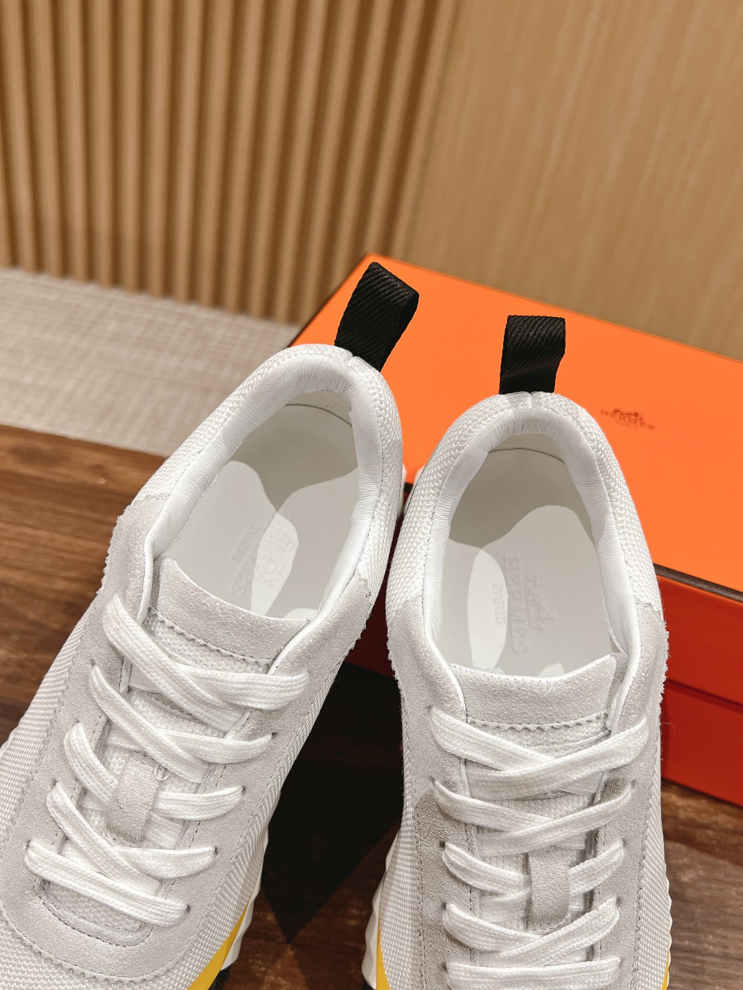 爱马*情侣款休闲鞋 麂皮搭拼接网布运动鞋。