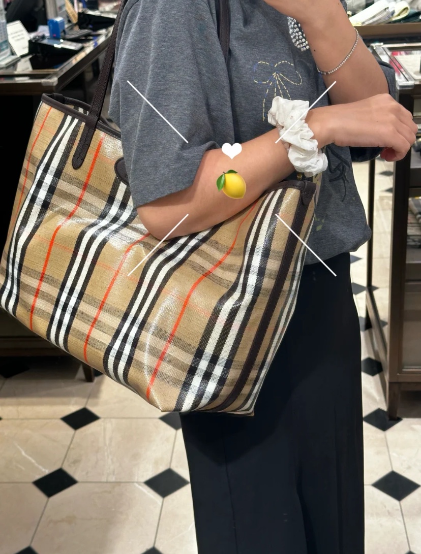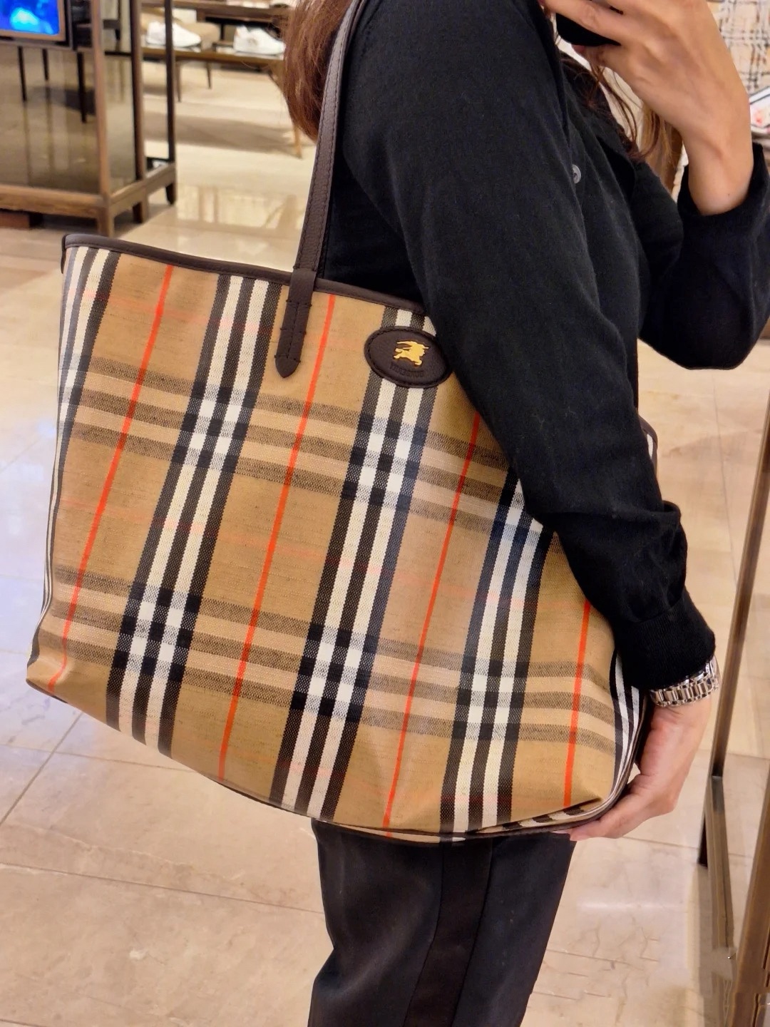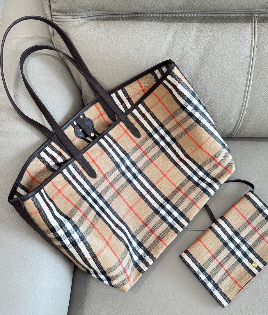 亚麻涂层材料 防水防脏耐磨,新款托特包,汲取户外设计理念打造。选用棉质亚麻混纺面料制成,融入光滑小牛皮装饰。装饰提花精纺的 Burberry格纹,设有风衣灵感涂层饰面。无内衬款式点缀骑士印章,源自1980 年代品牌包款的典藏图案。正面饰有马术骑士徽标(EKD) 尺寸38× 16.5 x 28cm.