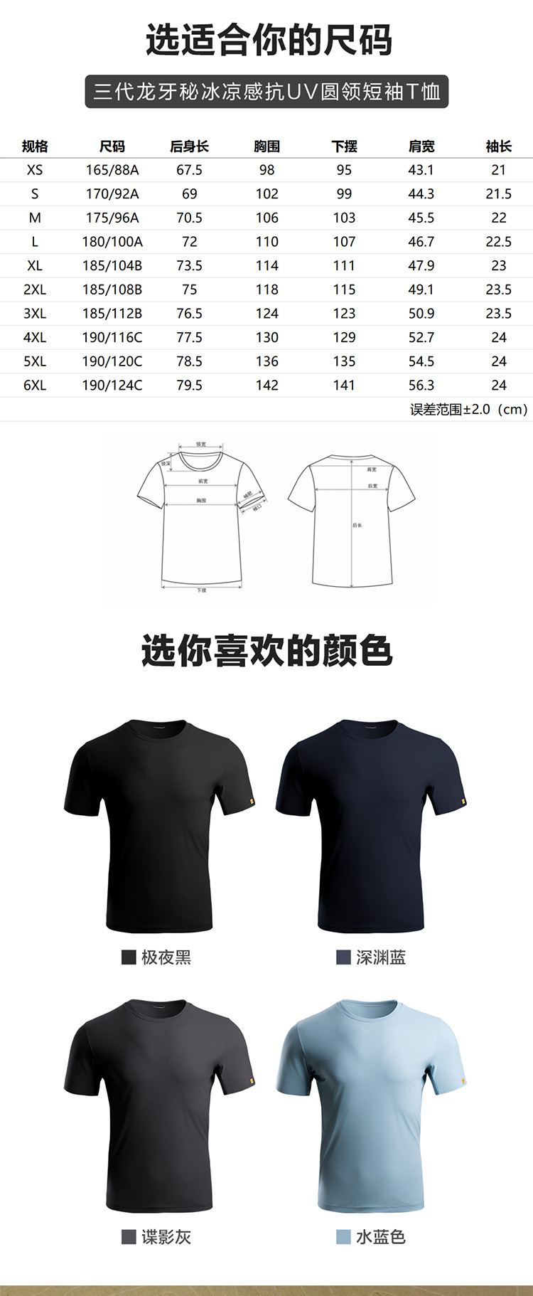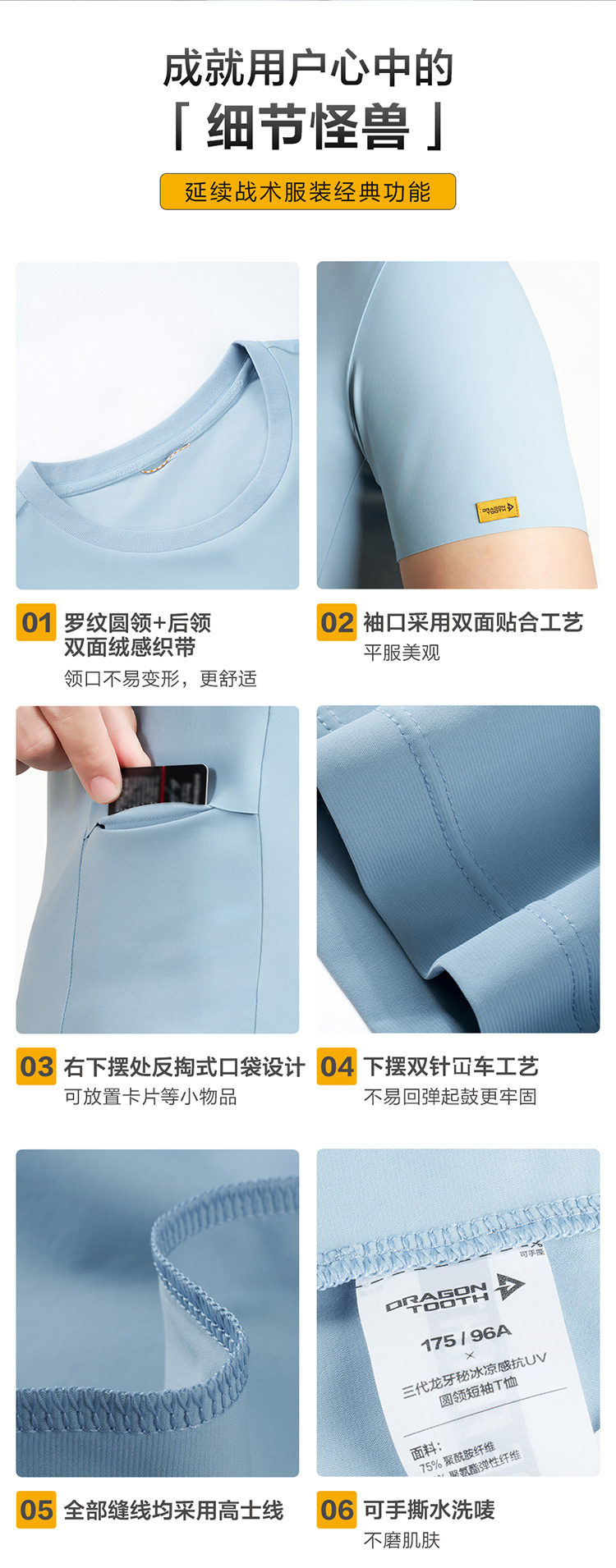 三代龙牙秘冰凉感抗UV圆领短袖T恤