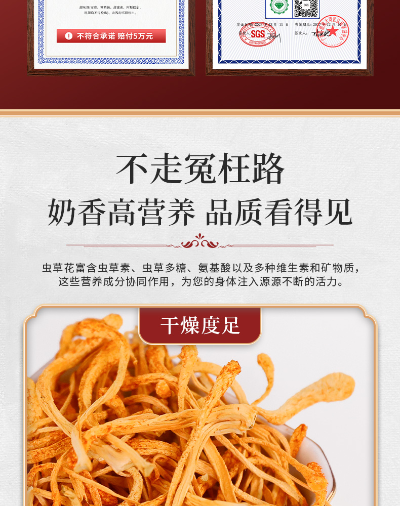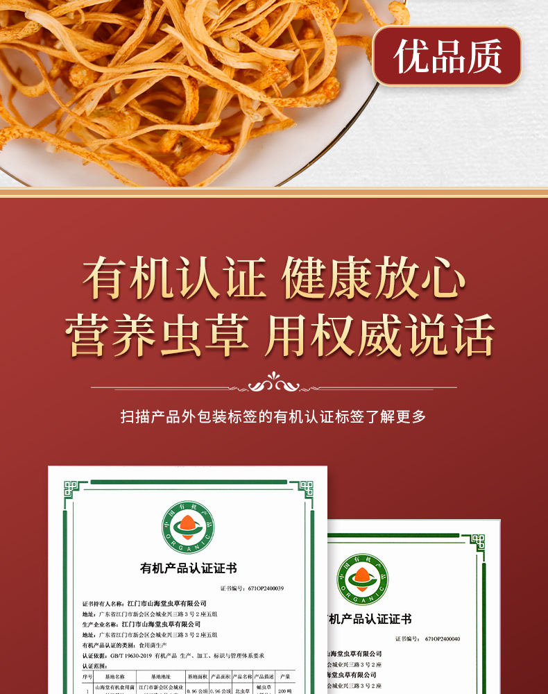 山海堂有机虫草花玲珑装|孢子粉含量检测图:1克≈3倍营养密度【4.4-4.6不发货,7号正常发货】