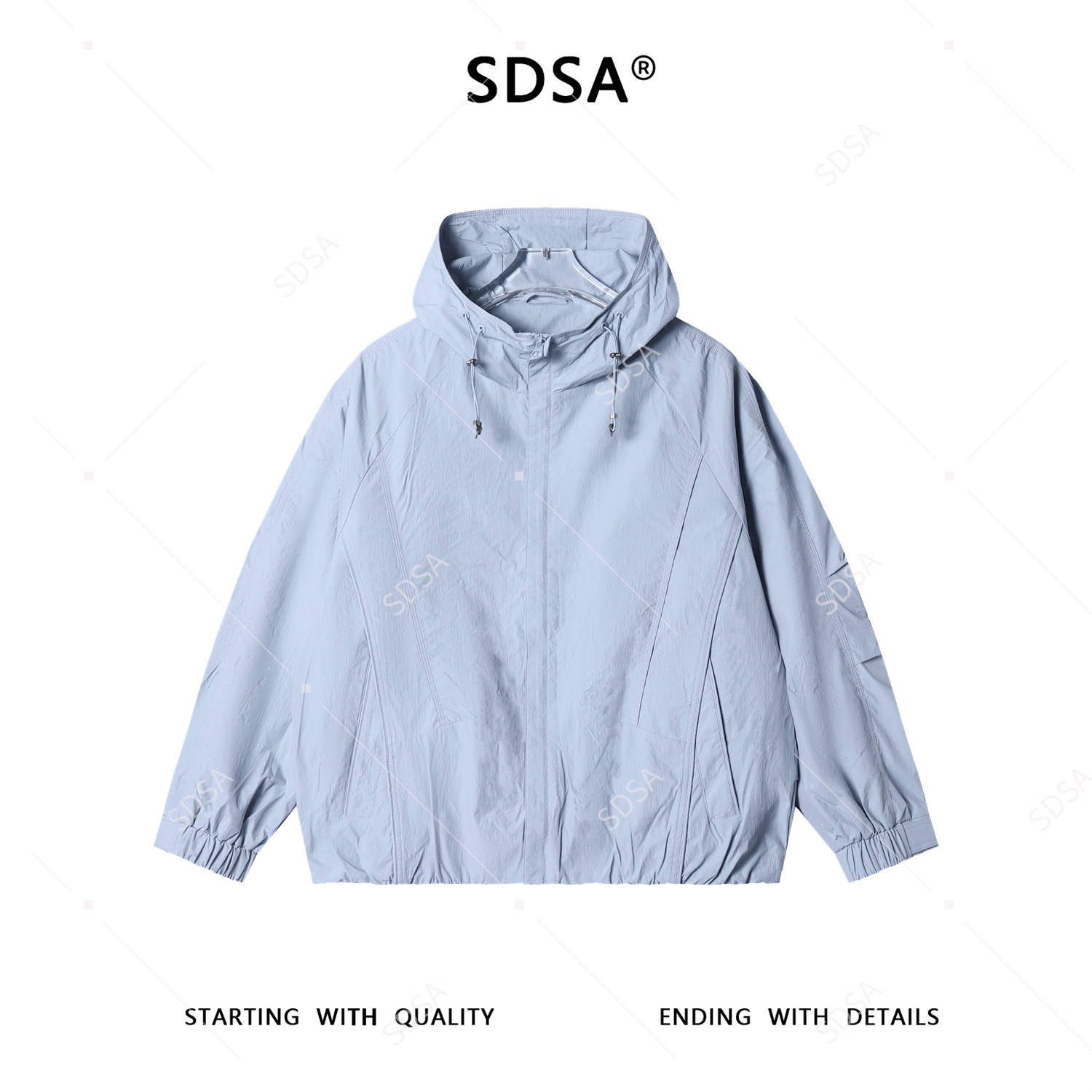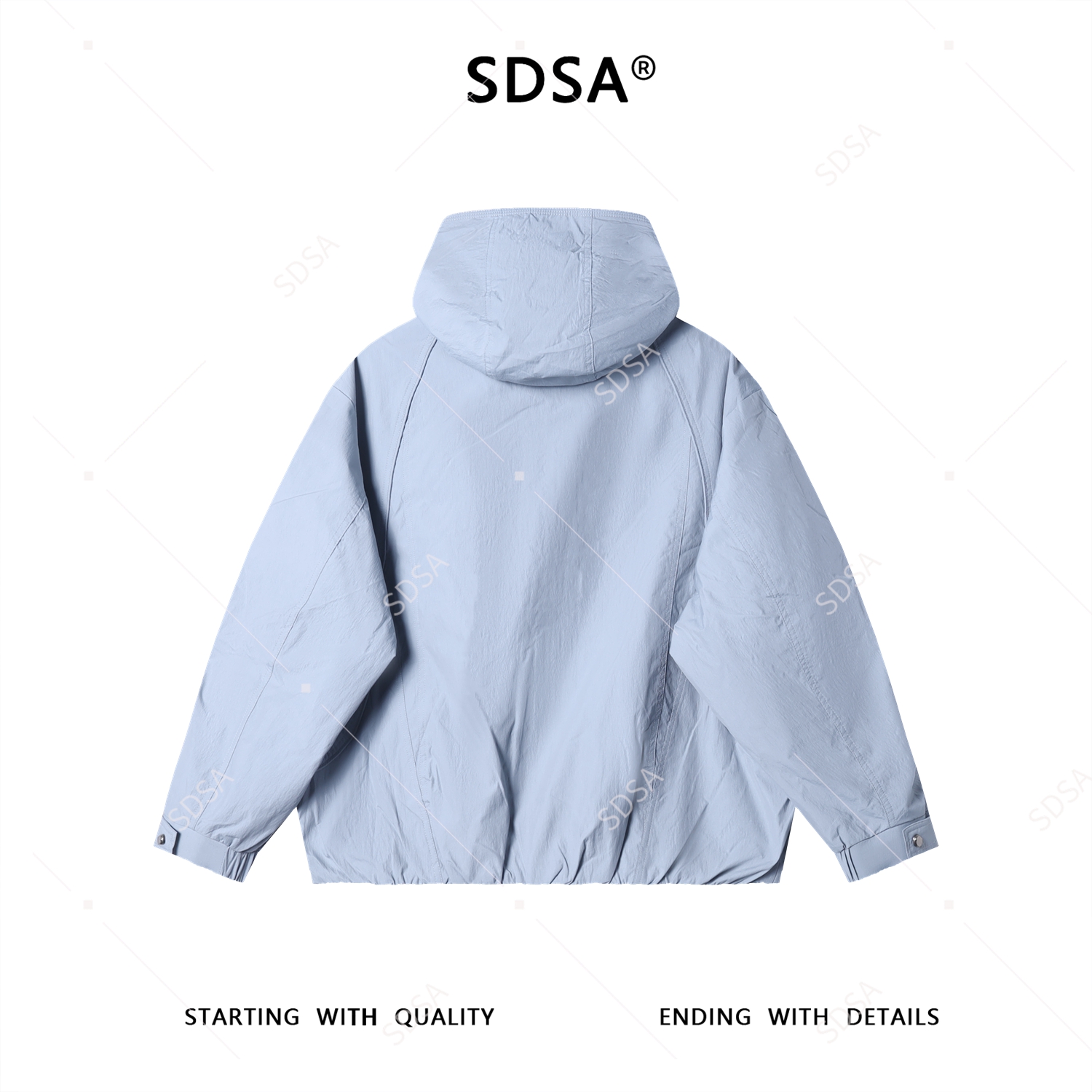 SDSA男士秋冬新款痞帅男装潮牌褶皱纯色拉链立领连帽夹克外套百搭