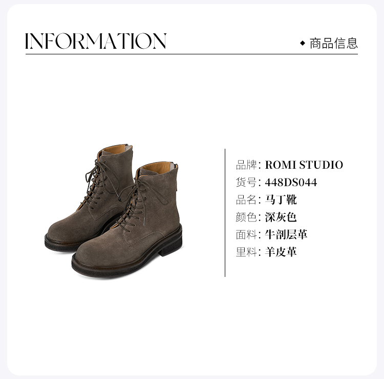 ROMI STUDIO“率性自我” 绒面牛皮拼羊皮厚底复古马丁靴 448DS044