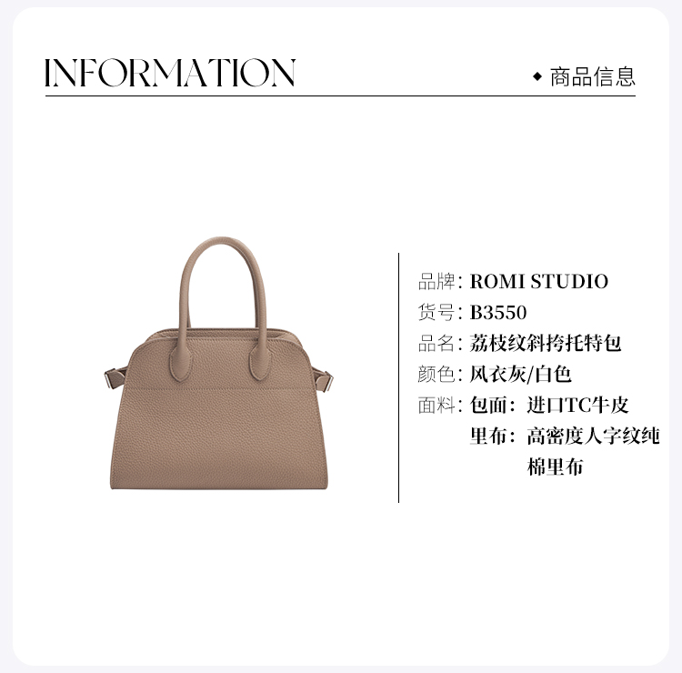 ROMI STUDIO“简约随性”气质百搭肌理感荔枝纹手提斜挎托特包B3550