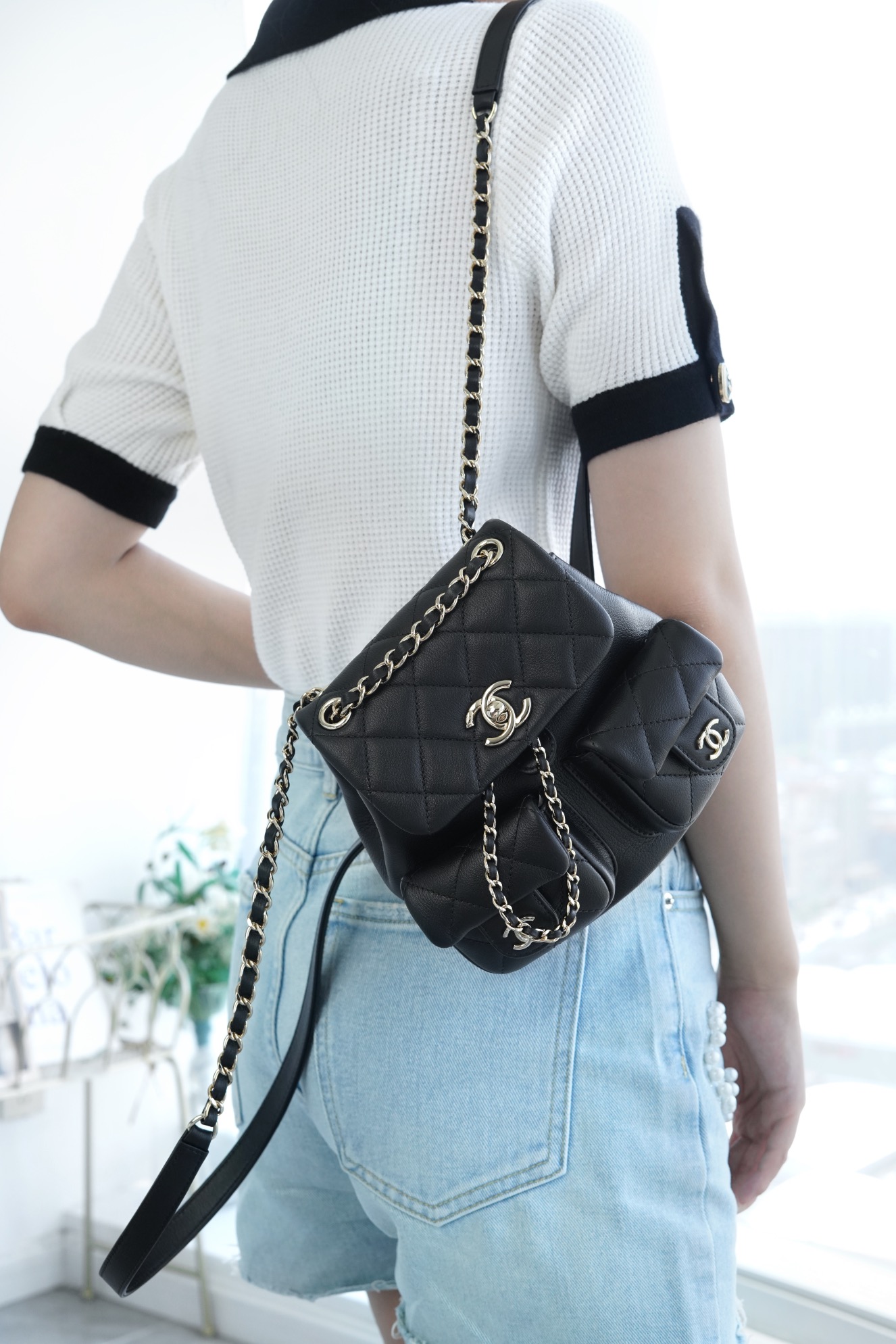 𝗖𝗛𝗔𝗡𝗘𝗟 23A新款 Duma双肩 光面牛皮 大号黑色 本季黑马 《方框》皮革厂,一级原产牛皮,相比之前的鱼子酱牛皮、这次的光面牛皮更加适合夏天,斯斯文文,非常喜欢!实用度还是颜值都让人无法拒绝呀~容量很ok,日常出行放的全都能放得下! 尺寸:20.5*20*11.5cm