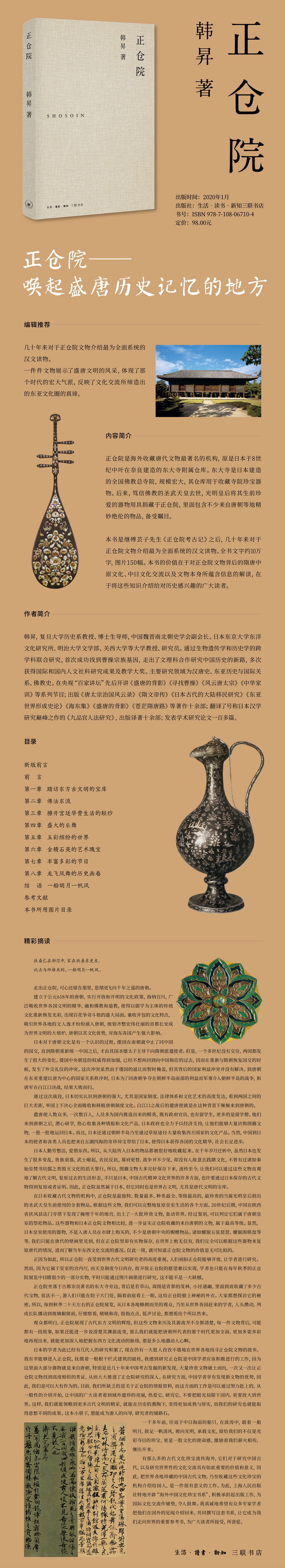 正仓院是海外收藏唐代文物著名的机构,原是日本于8世纪中叶在奈良建造的东大寺附属仓库。东大寺是日本建造的全国佛教总寺院,规模宏大,其仓库用于收藏寺院珍宝器物。后来,笃信佛教的圣武天皇去世,光明皇后将其生前珍爱的器物用具捐藏于正仓院,里面包含不少来自唐朝等地精妙绝伦的物品,备受瞩目。 《正仓院》是继傅芸子先生《正仓院考古记》之后,几十年来对于正仓院文物介绍为全面系统的汉文读物。全书文字约5万字,图片150幅。该书的价值在于对正仓院文物背后的隋唐中原文化、中日文化交流以及文物本身所蕴含信息的解读,在于将这些知识介绍给对历史感兴趣的广大读者。