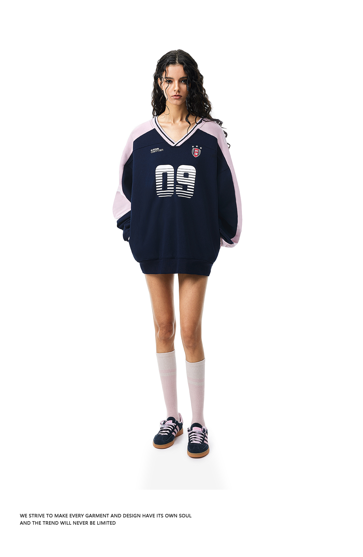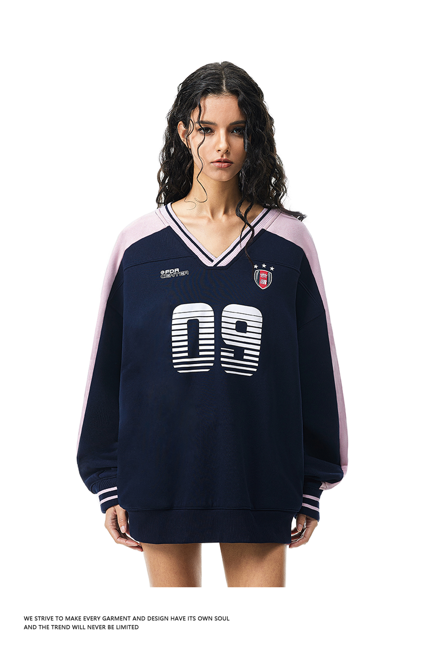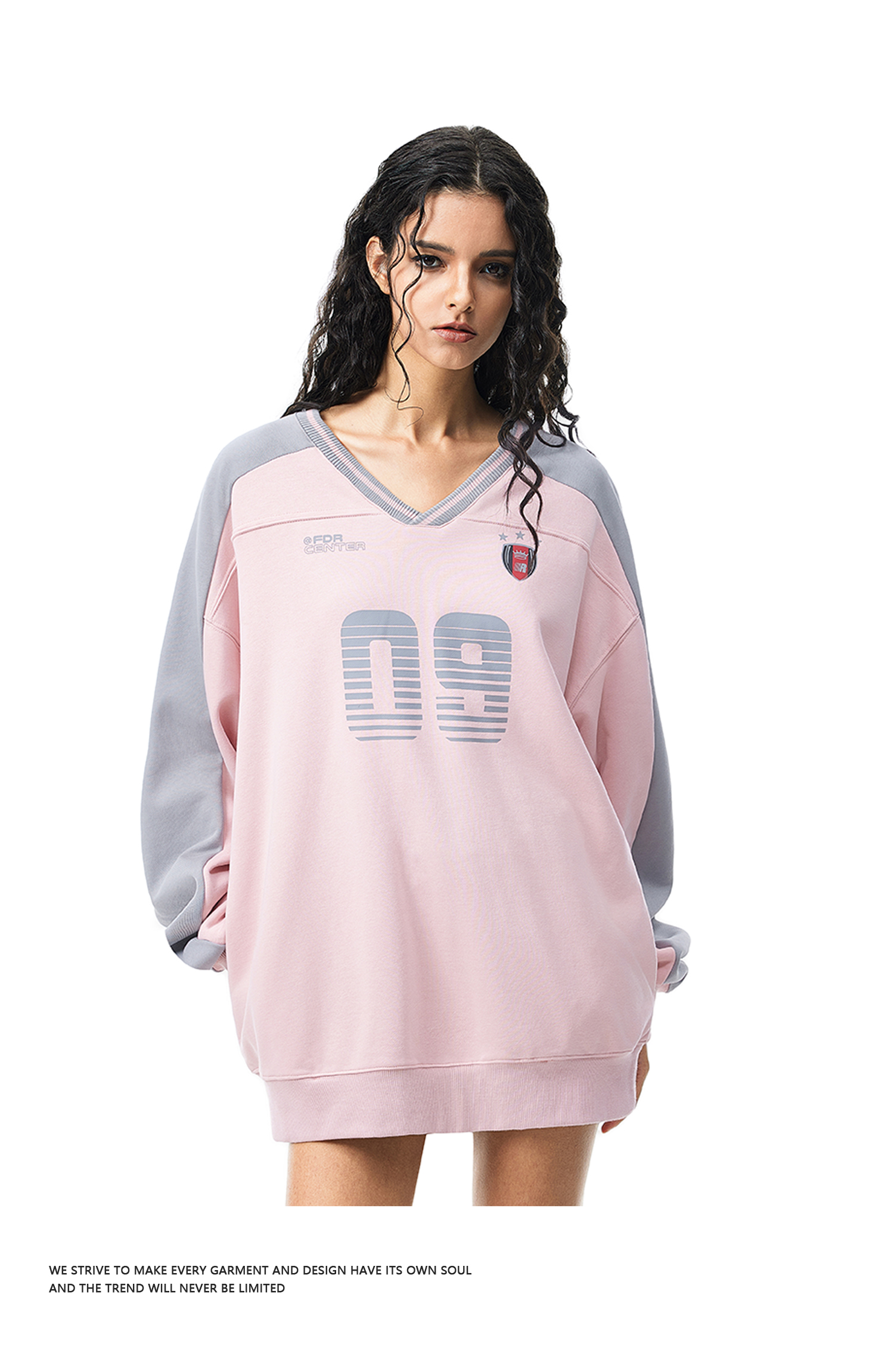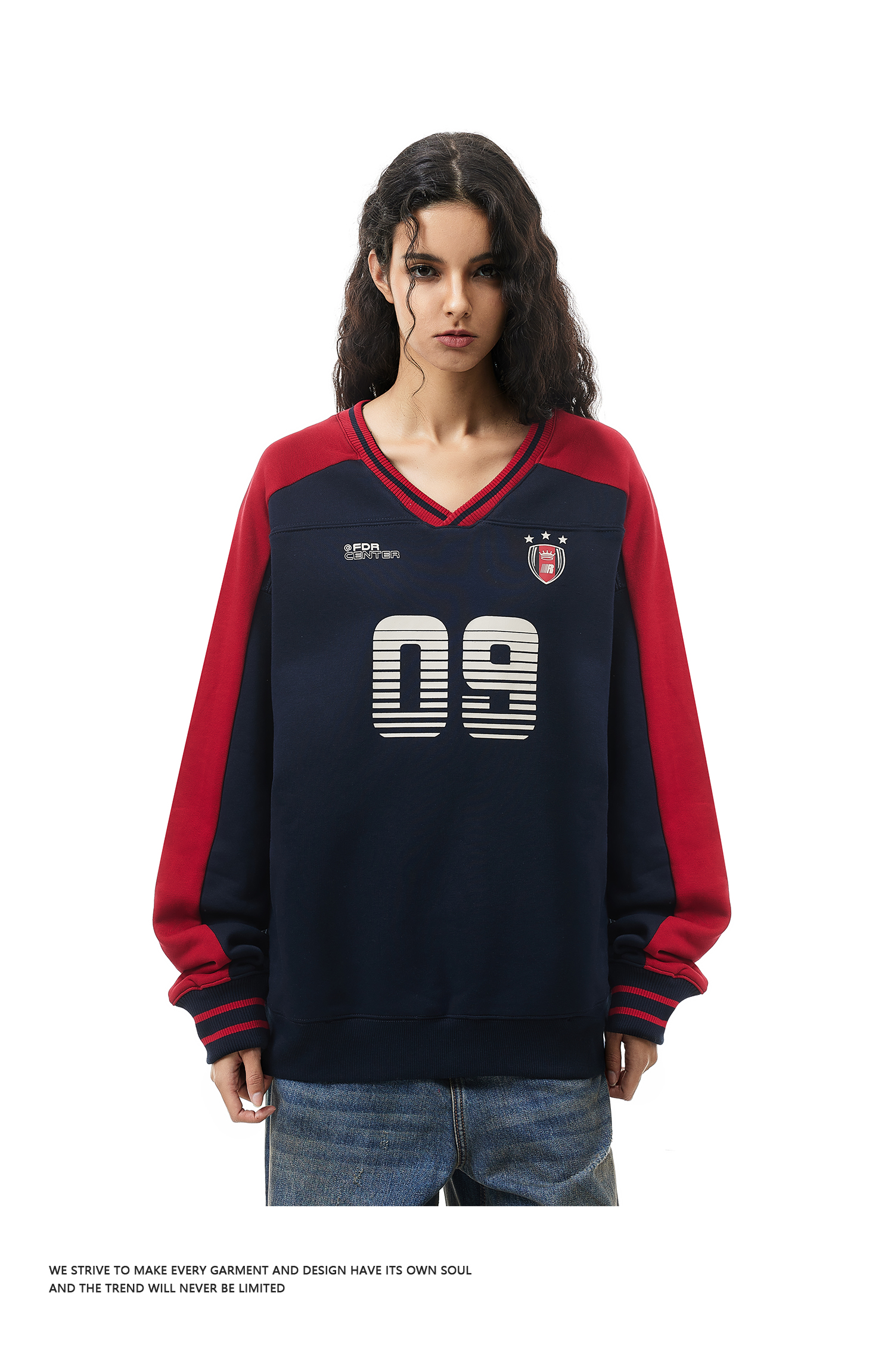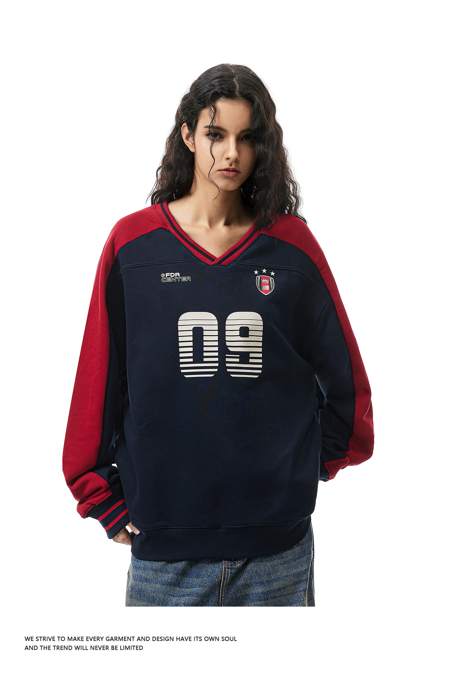 FDR官方店 09印花V领撞色美式卫衣男女春季重磅情侣运动上衣球衣