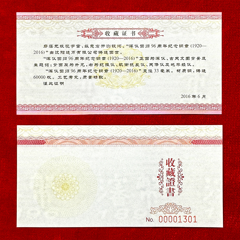 【沈阳造币】“龙”纪念章 浑仪回归96周年纪念章