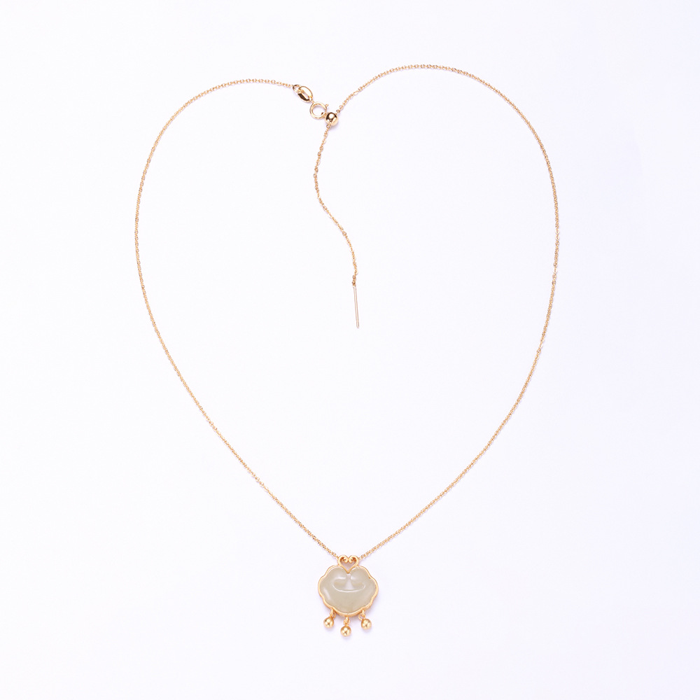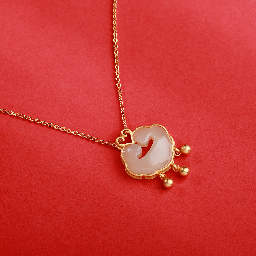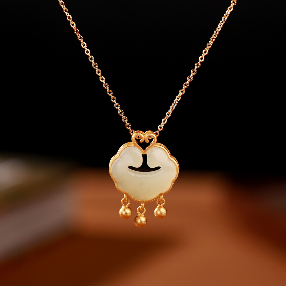 S925银和田玉如意祥云平安锁项链复古国风长命锁劲链