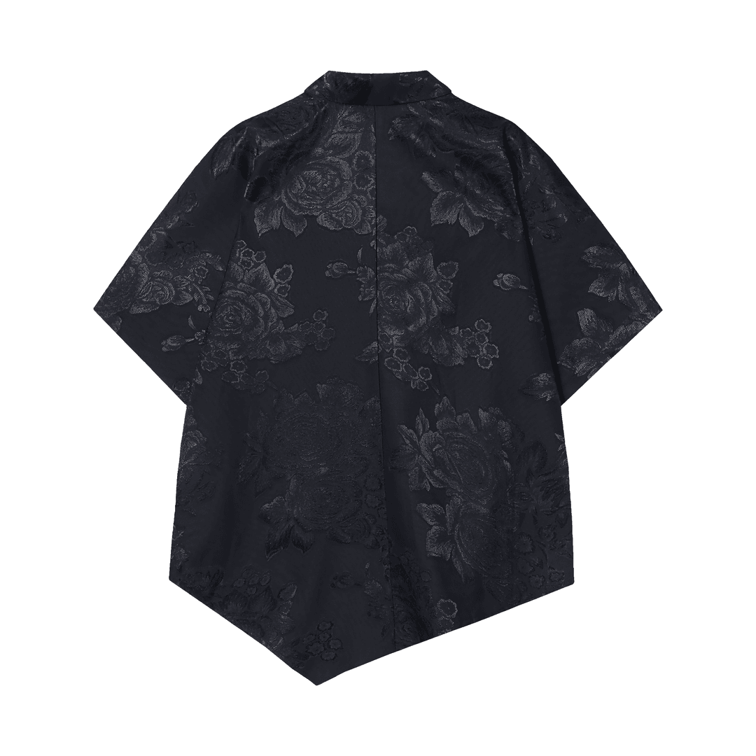CS52夏季国风新款牡丹提花男士国潮中式衬衫复古宽松印花