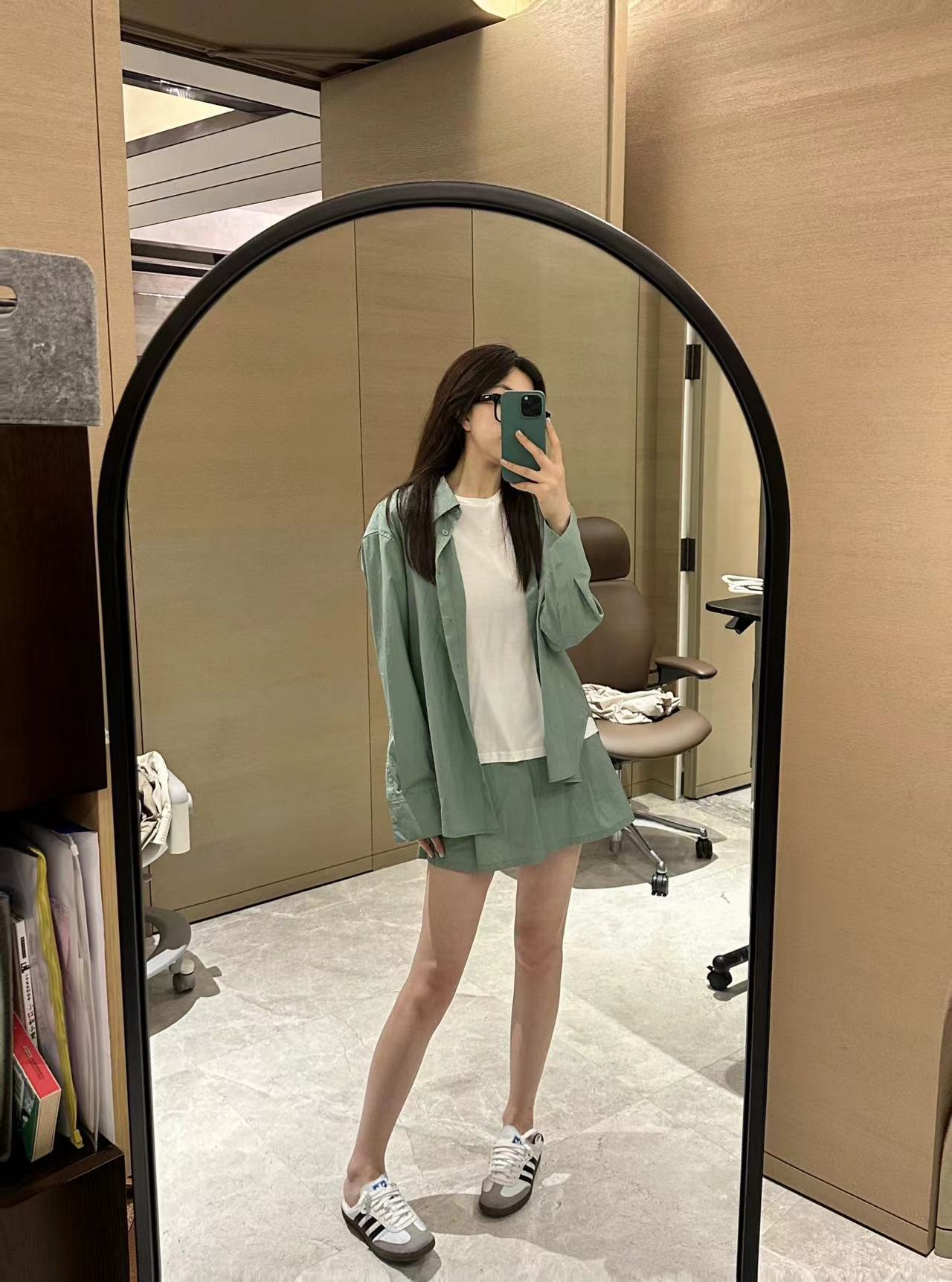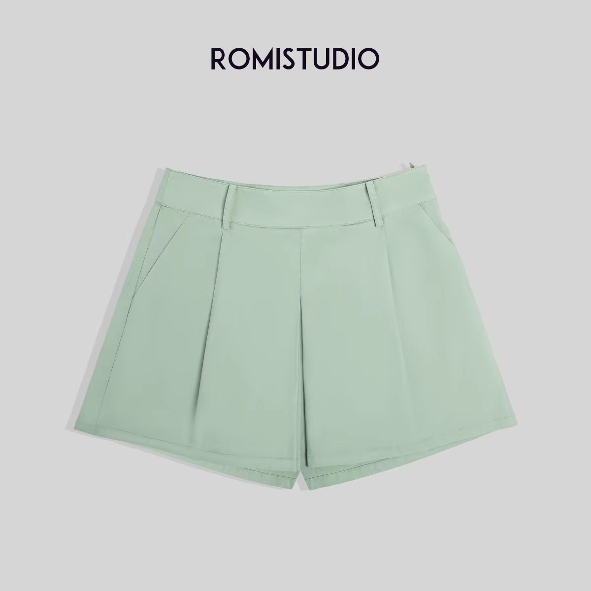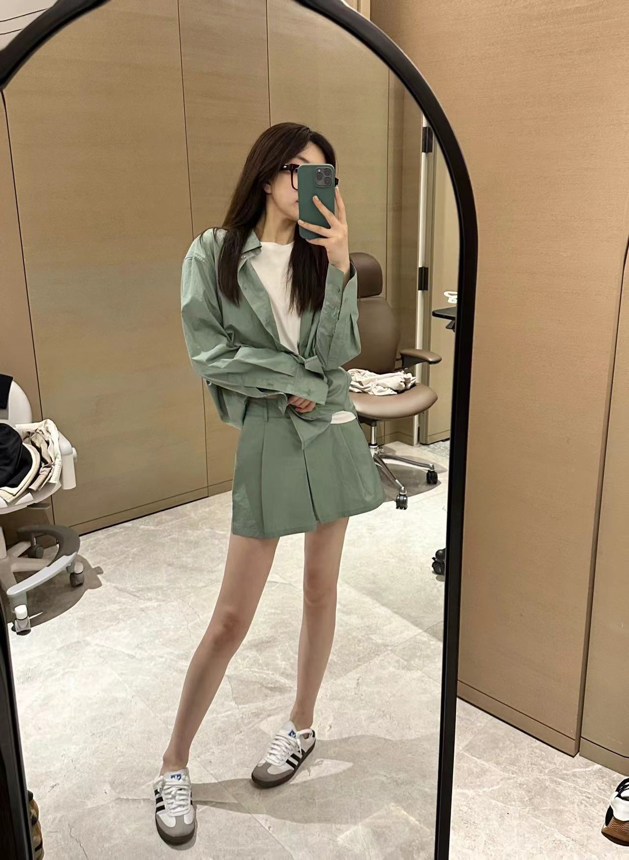 ROMI STUDIO宽松百搭雾绿色质感满满廓版衬衣短裤套装T3044/K3073