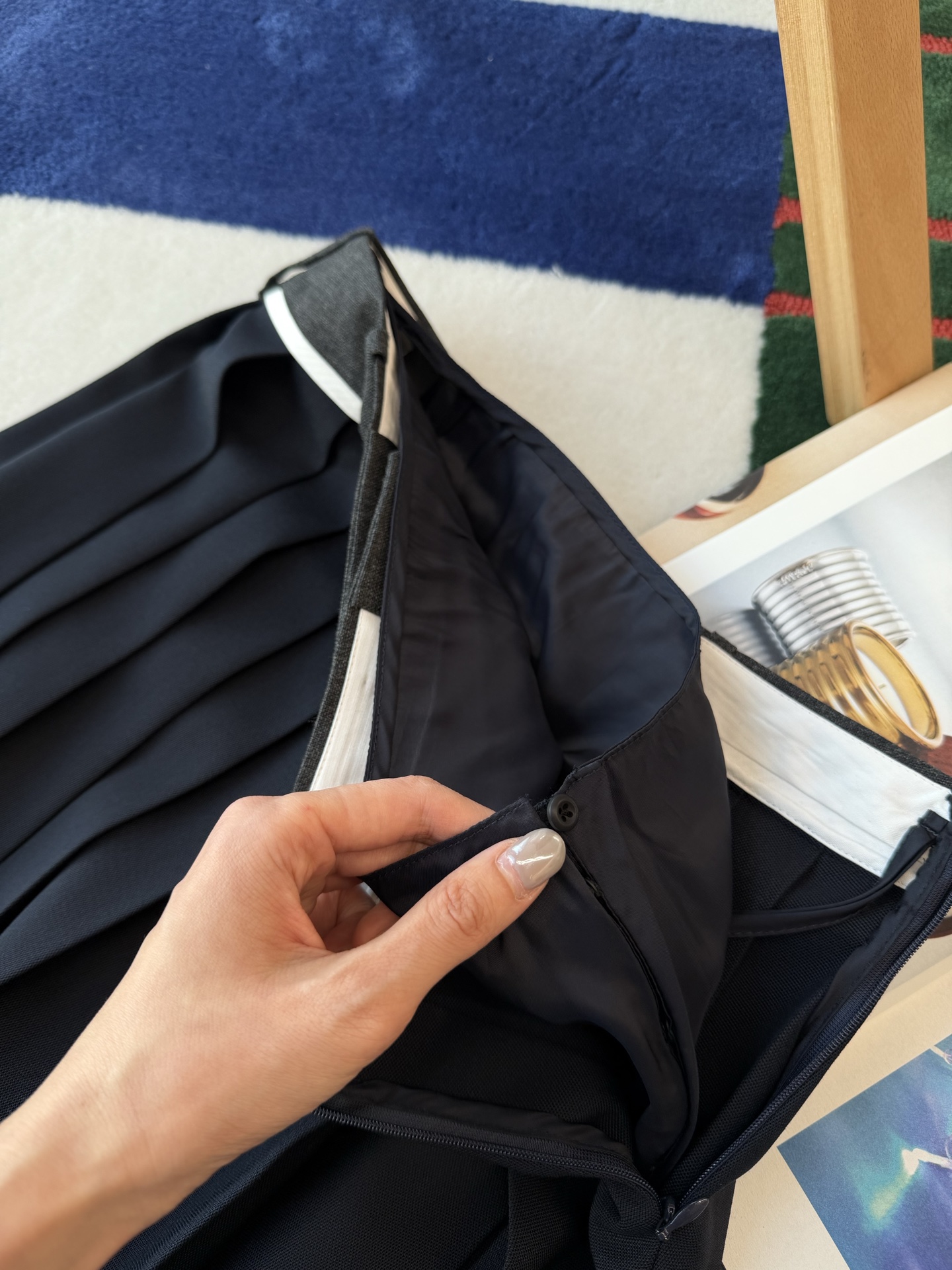 用料超足,定制羊毛面料垂坠感绝佳,腰部点缀精致LOGO徽标🔗春夏氛围感直接拉满,轻薄透气与时髦度双双在线〰️高腰显瘦设计巧妙修饰腰线,小个子也能轻松驾驭,显高不压个子👍🏻自带时髦女知识分子气质,不费力拿捏松弛知性美🉑️每一处细节精准还原,谁穿谁是气质本人😜姐妹们,这绝对是闭眼入的衣橱神款😉