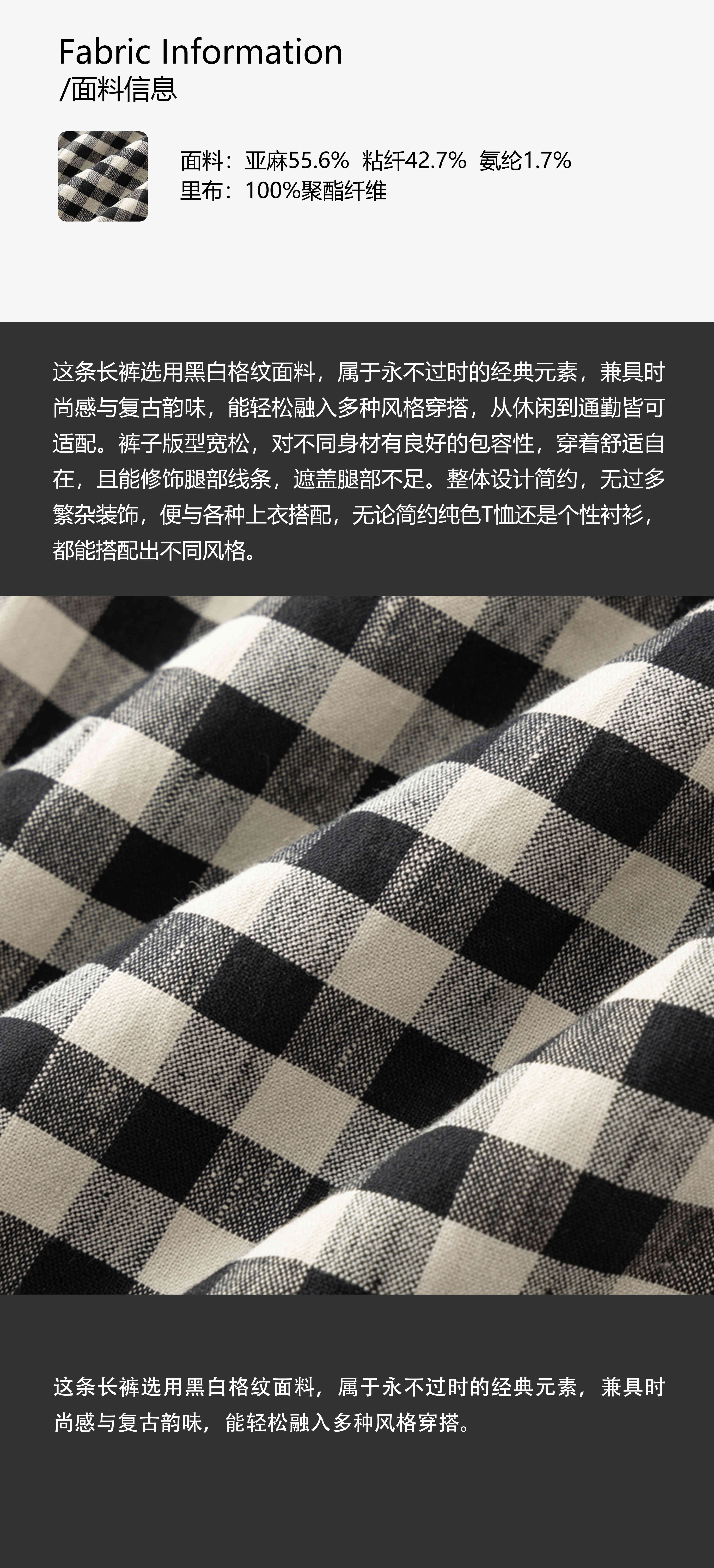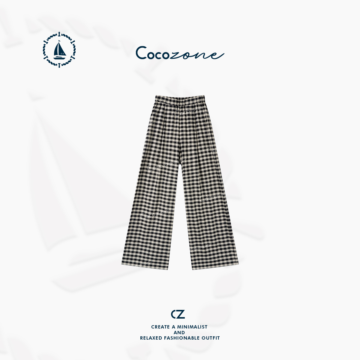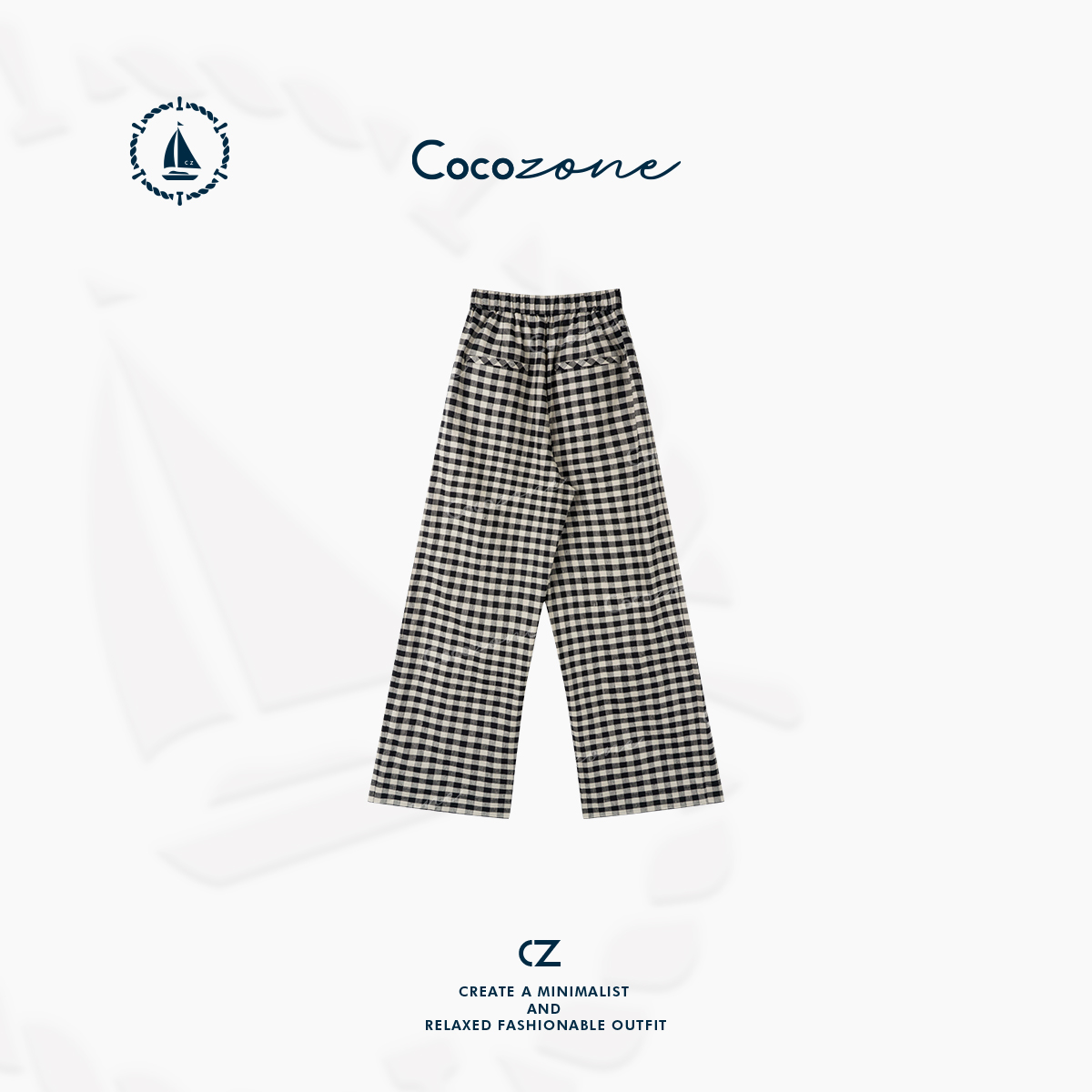 COCO ZONE 刘一一 度假亚麻“轻松周末” 格子休闲裤CD1A0397