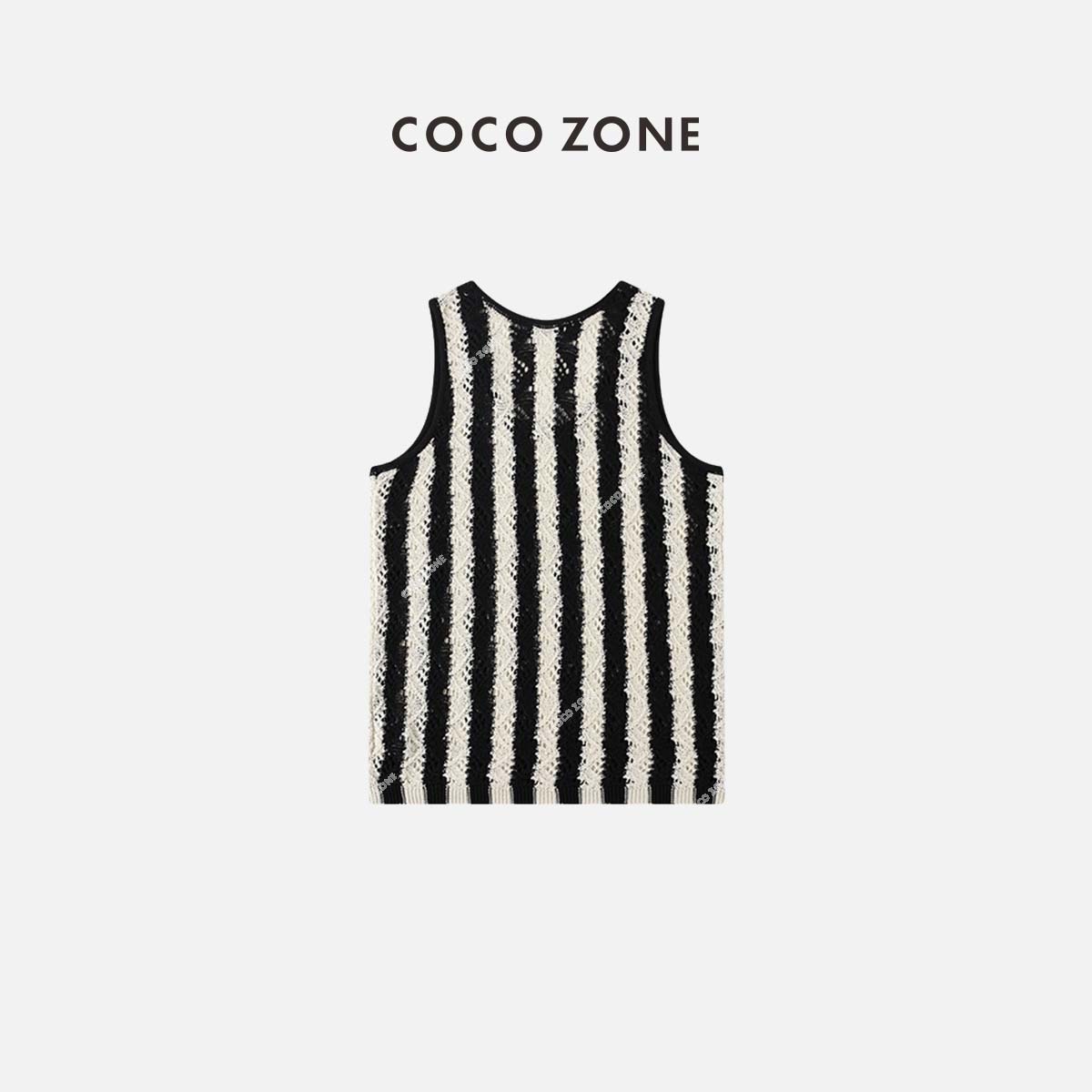 COCO ZONE 夏季U领宽条纹镂空针织背心 23C18665