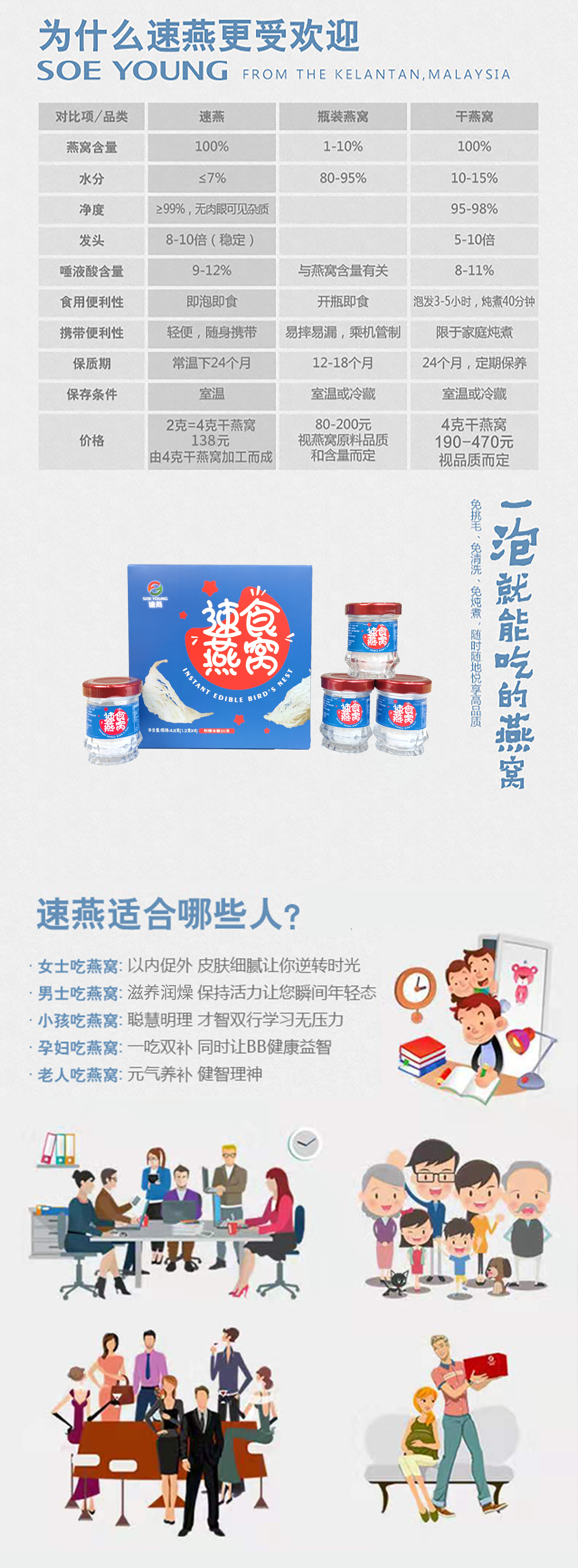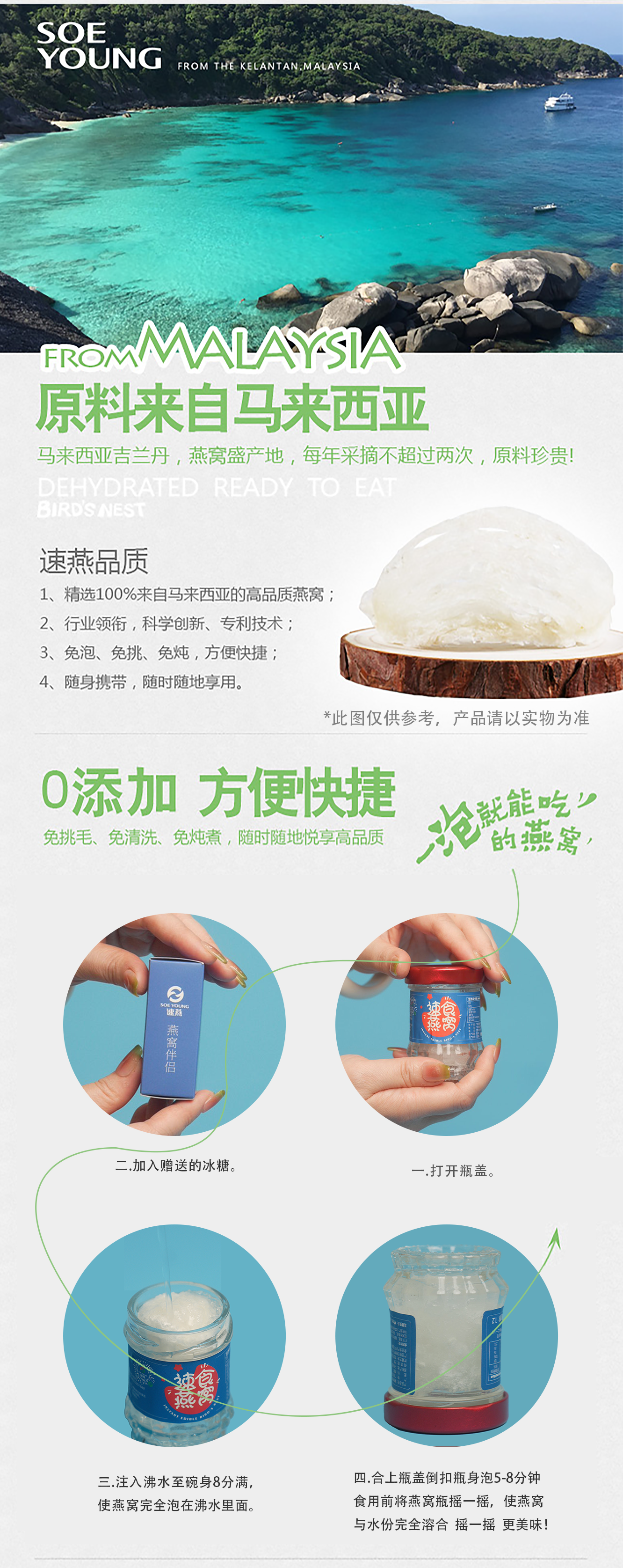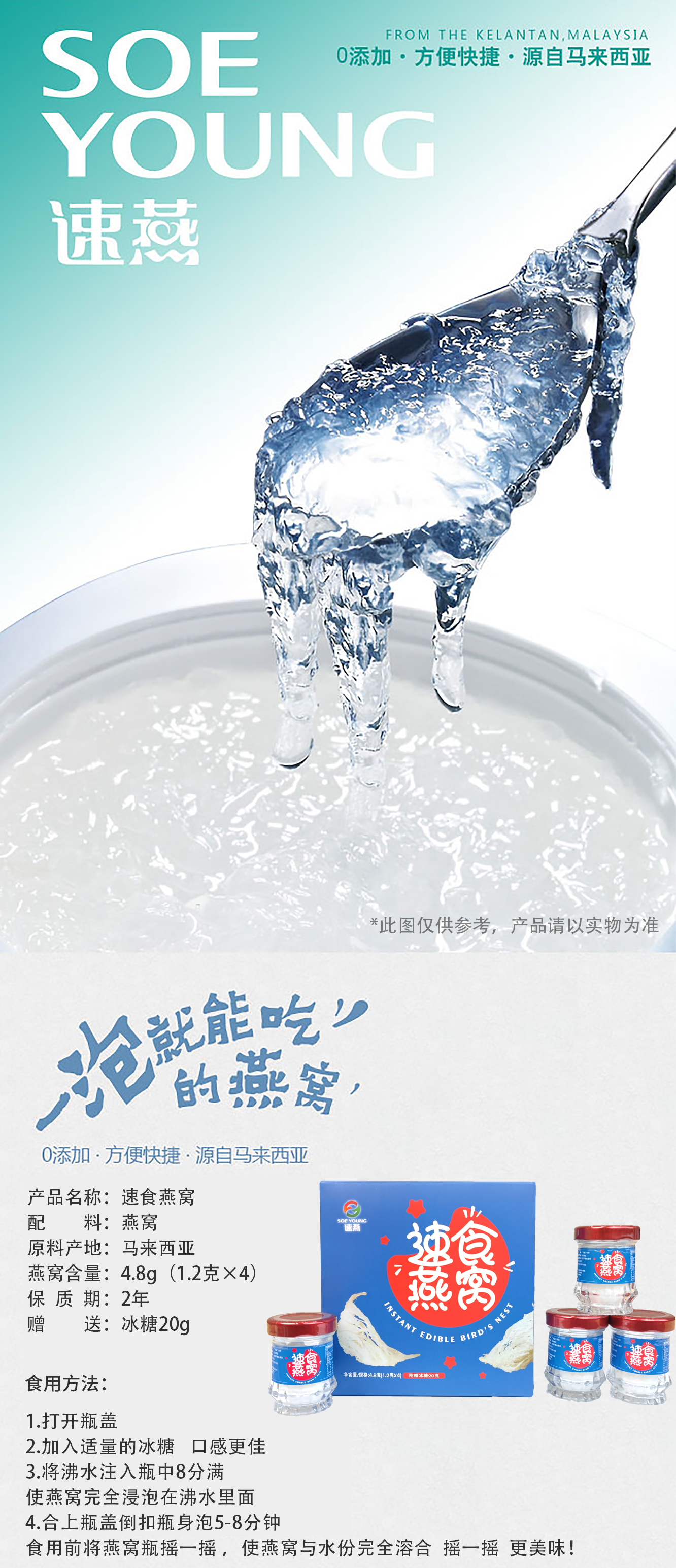 速燕一泡就能吃的燕窝 蓝色1.2克/4瓶简装 0添加 安全营养 方便快捷 源自马来西亚