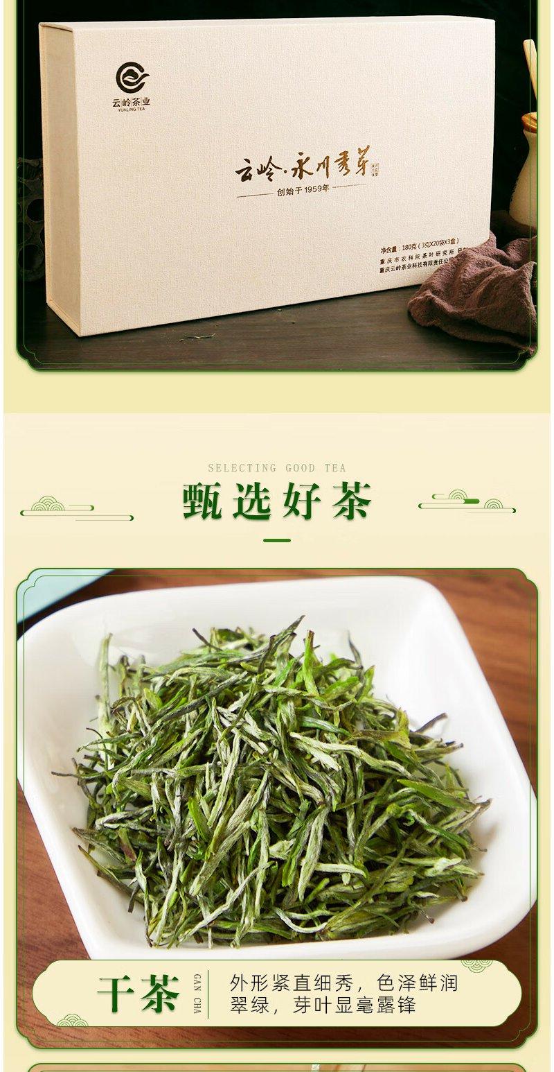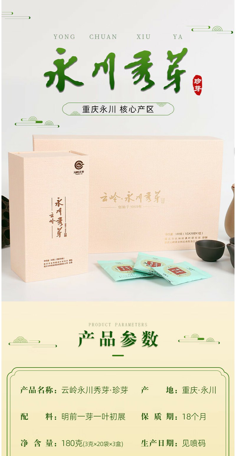 云岭茶业永川秀芽2024年新茶茶叶绿茶(珍芽)礼盒装明前头采春茶送礼 60g*1盒